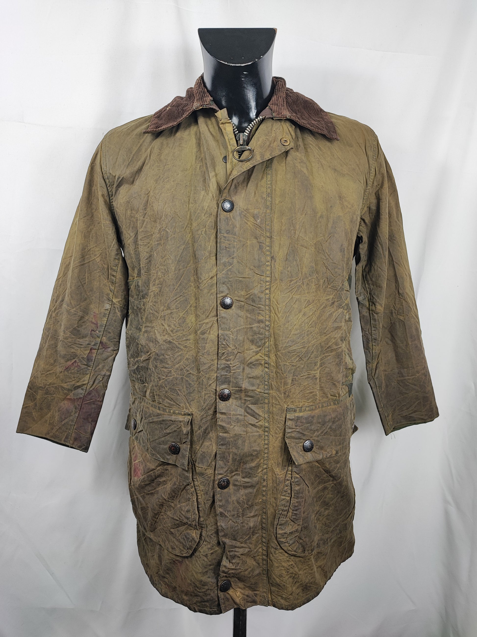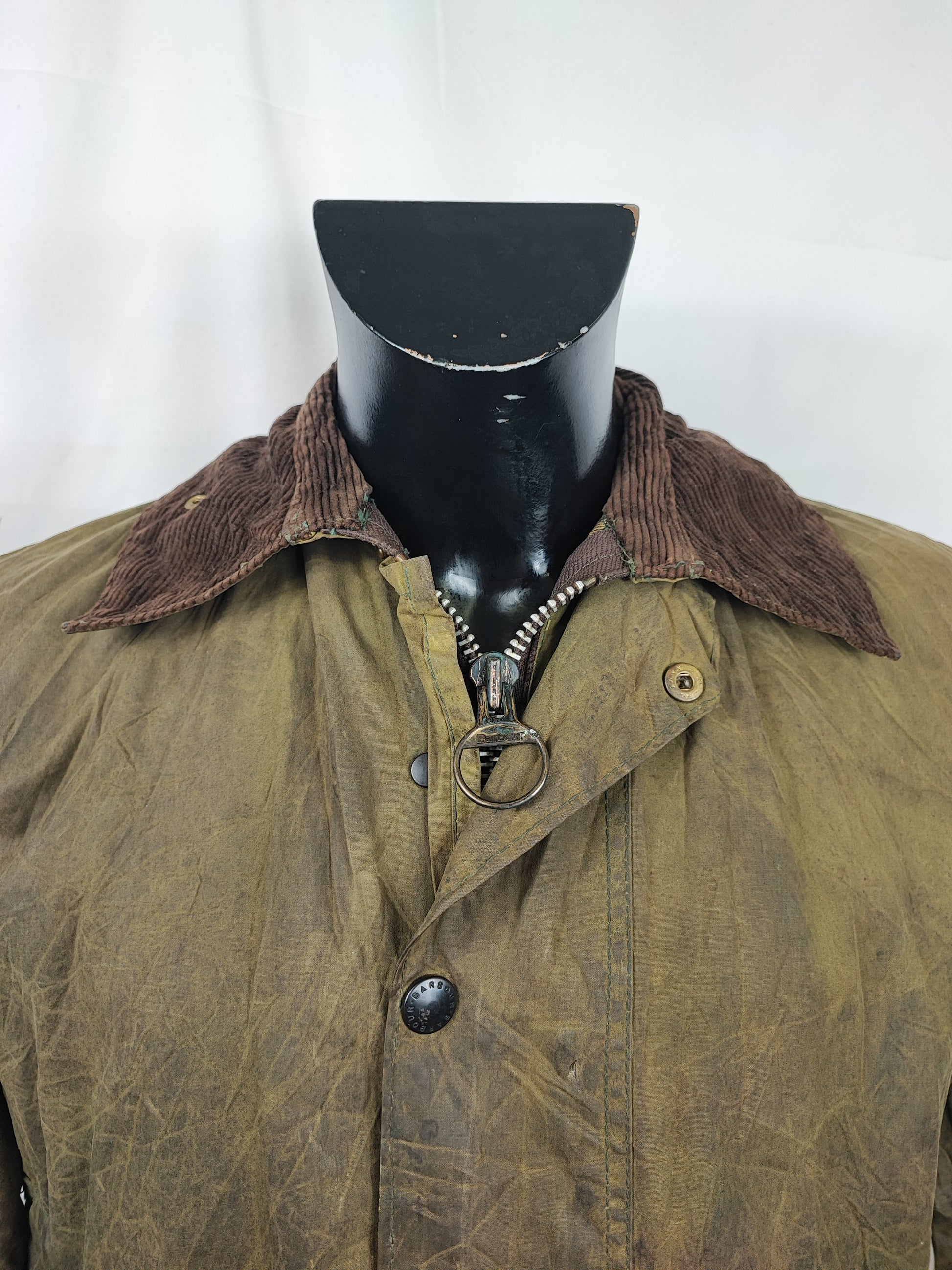 Giacca Barbour modello Border di colore verde vintage Taglia c34/86 cm corrisponde ad una taglia 44 italiana circa ( LEGGERE BENE LE MISURE QUI SOTTO)