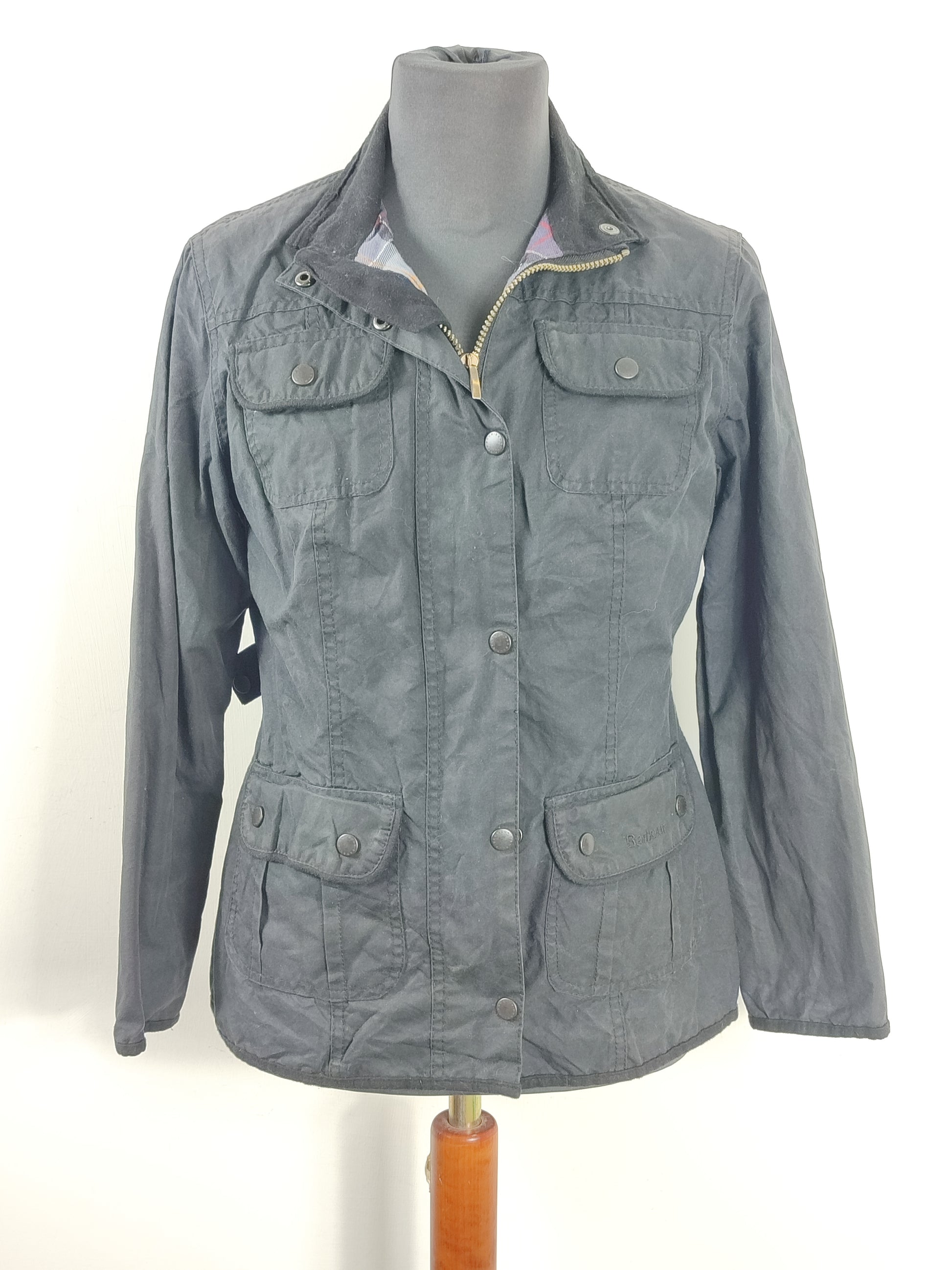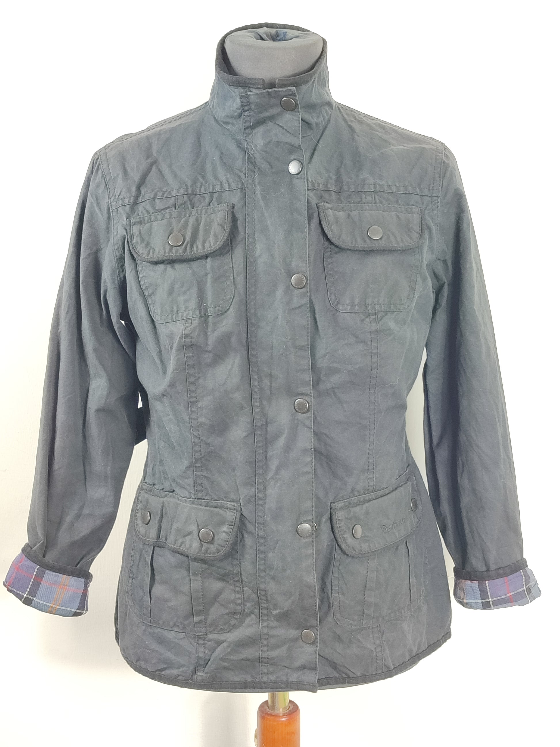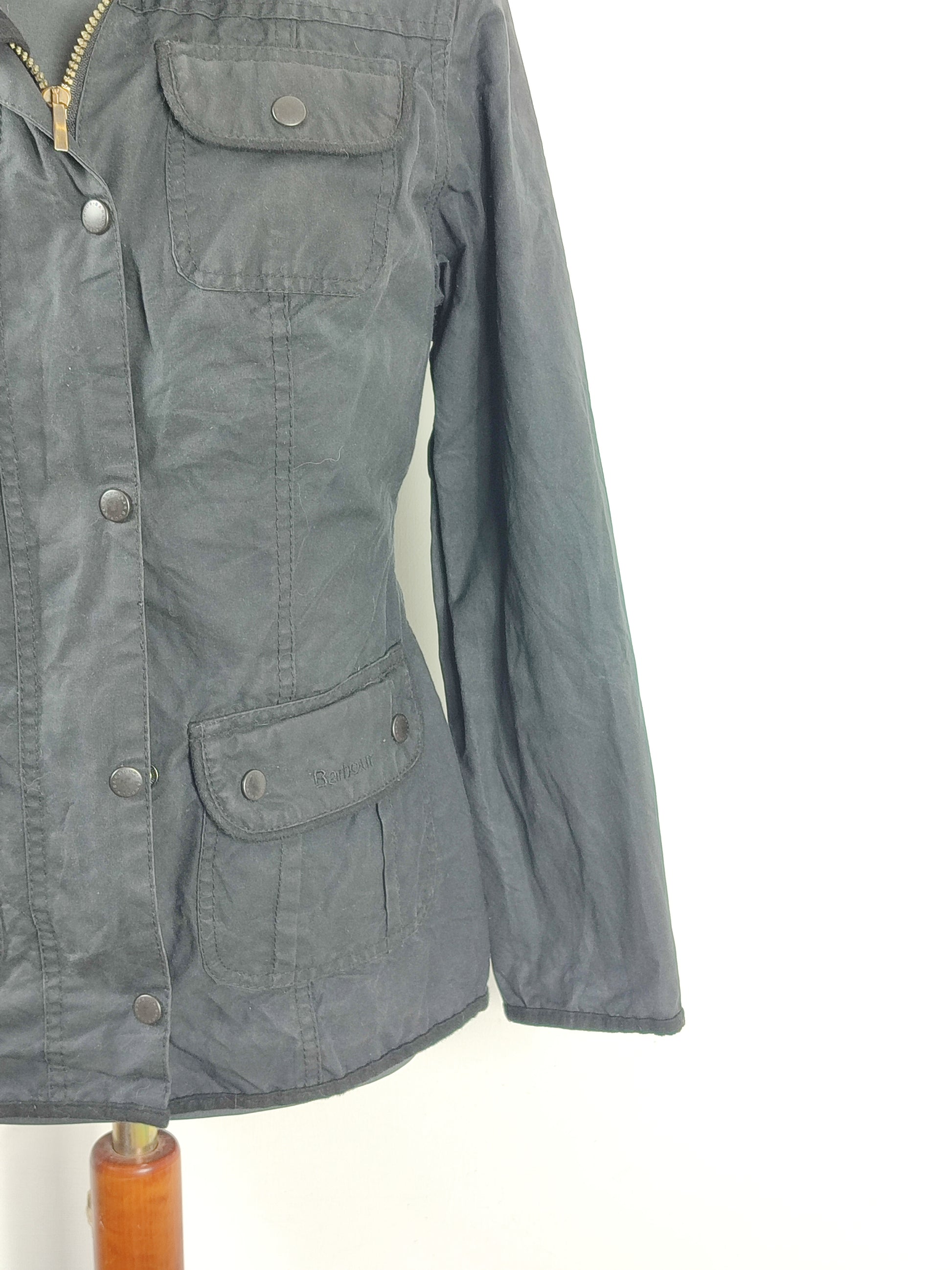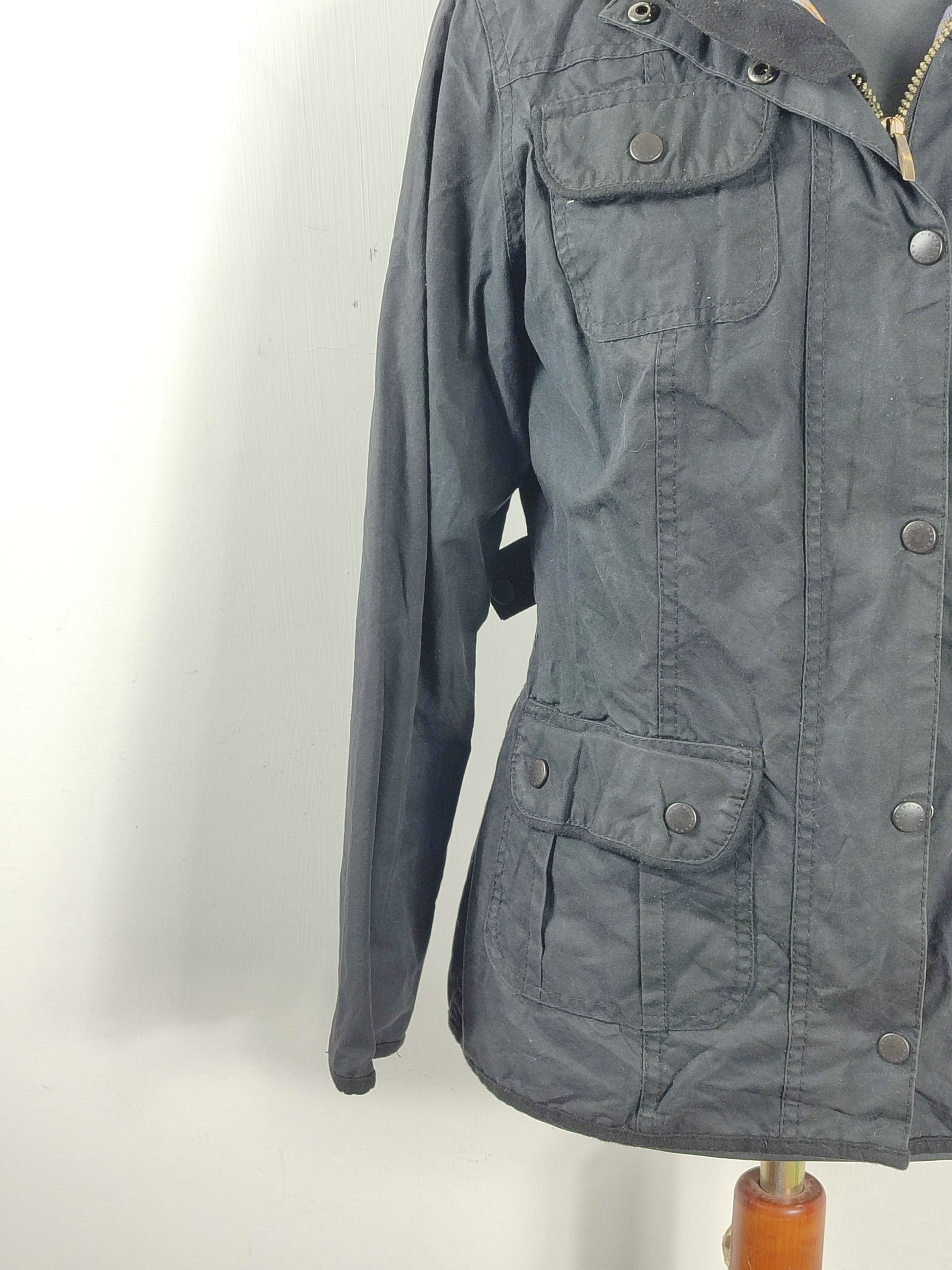 Barbour da donna cerato Nero Small Uk10 - Lady Black Wax Utility Jacket size Uk10 Small