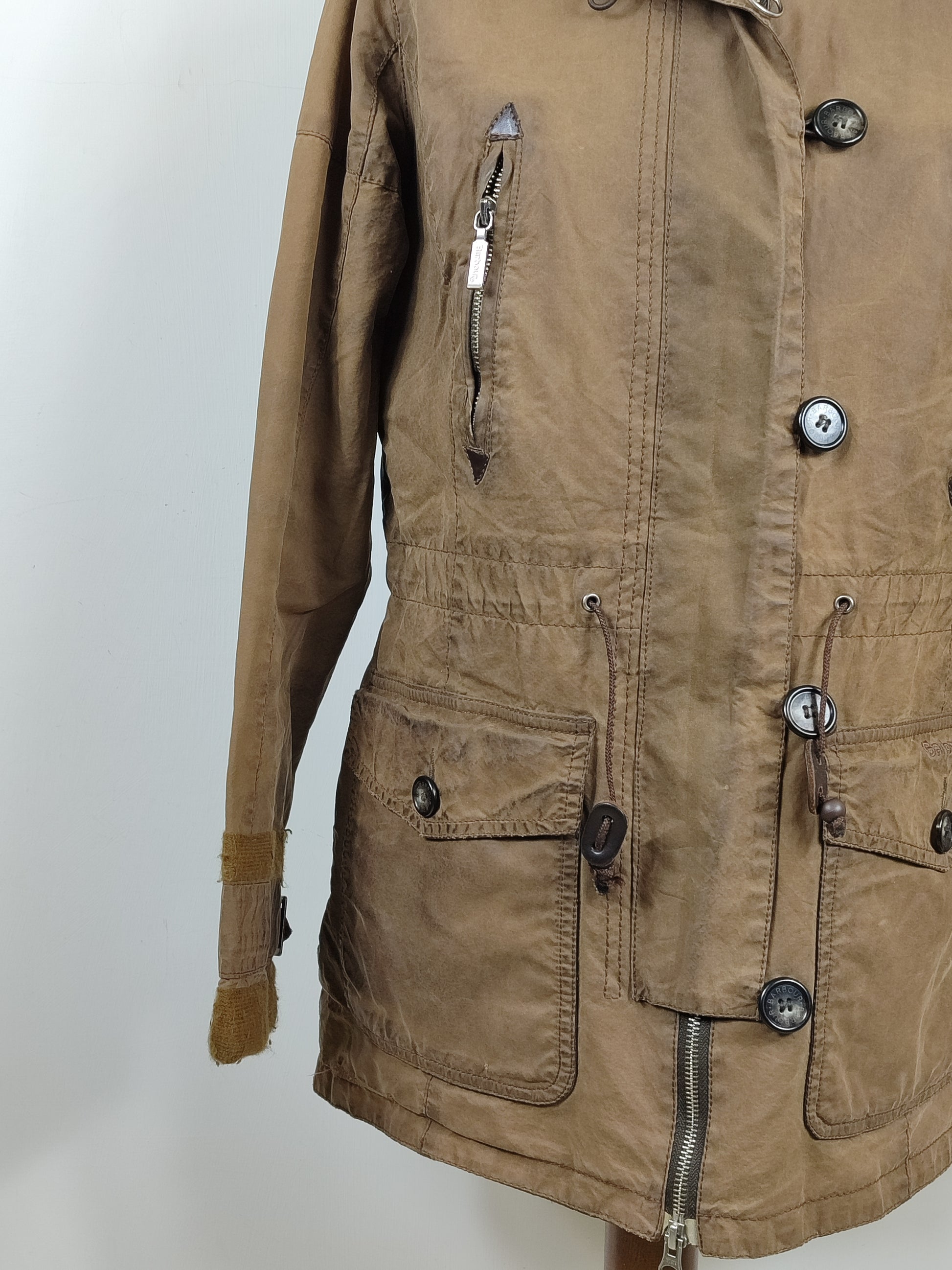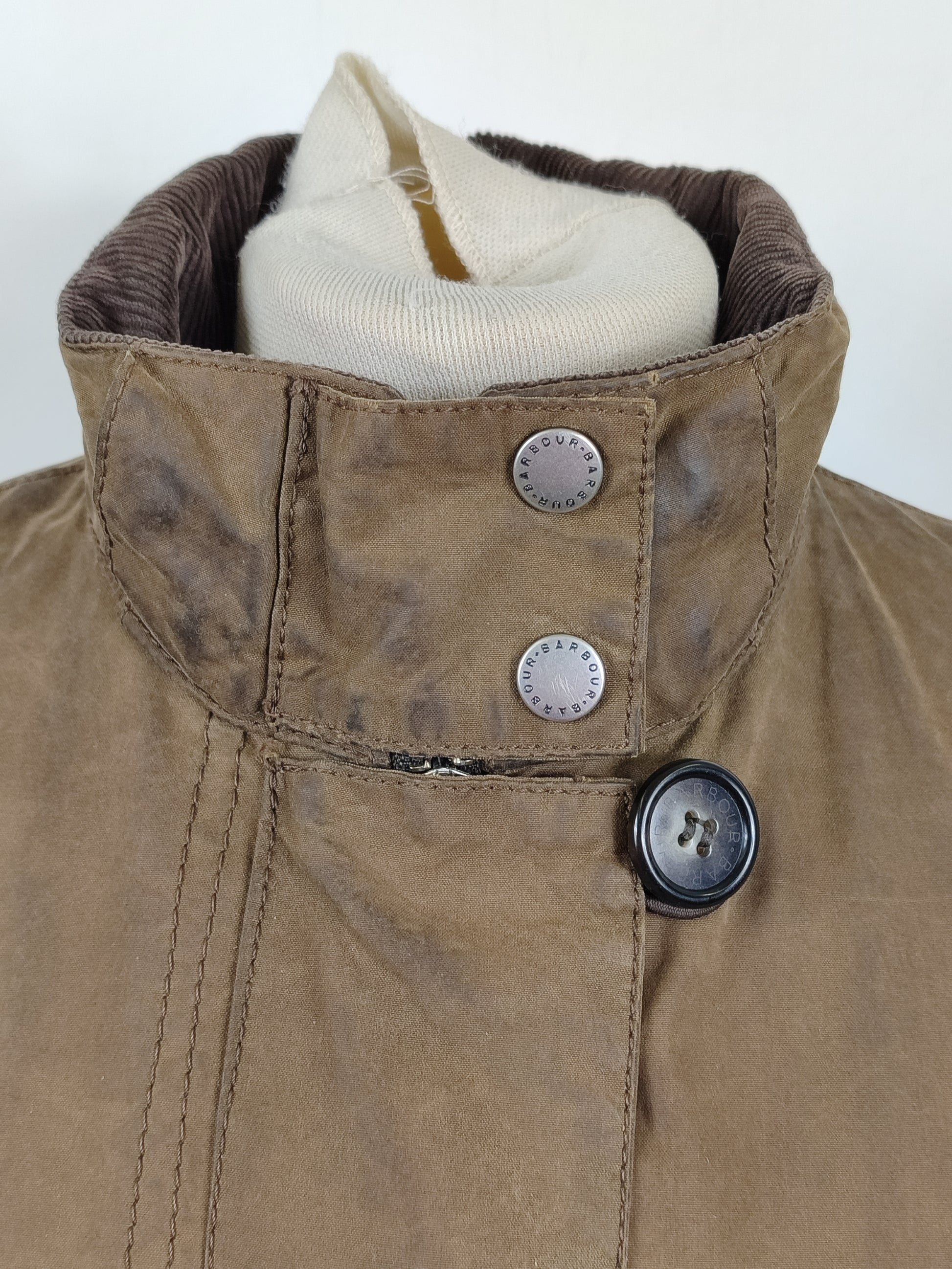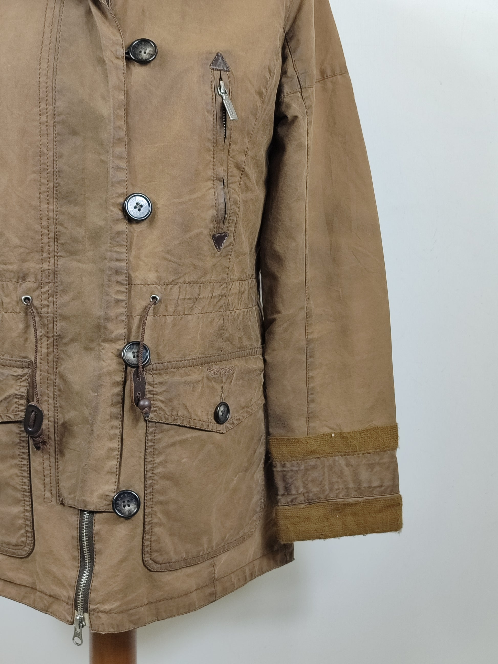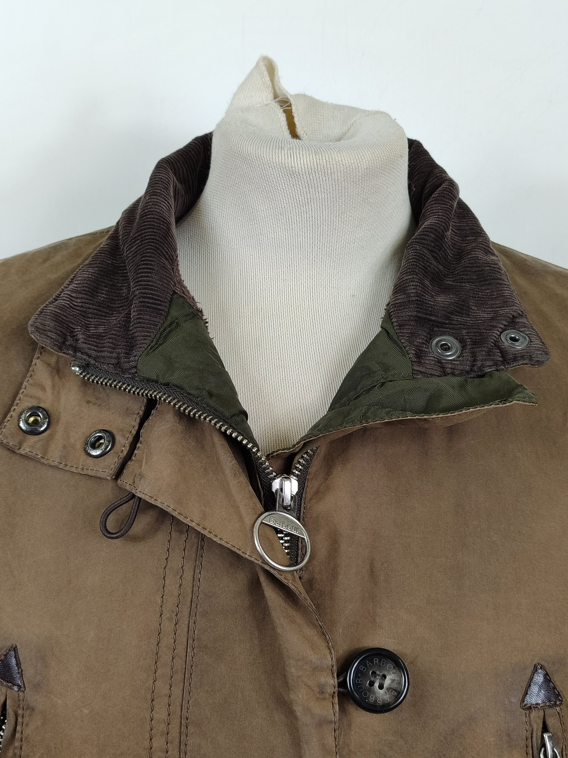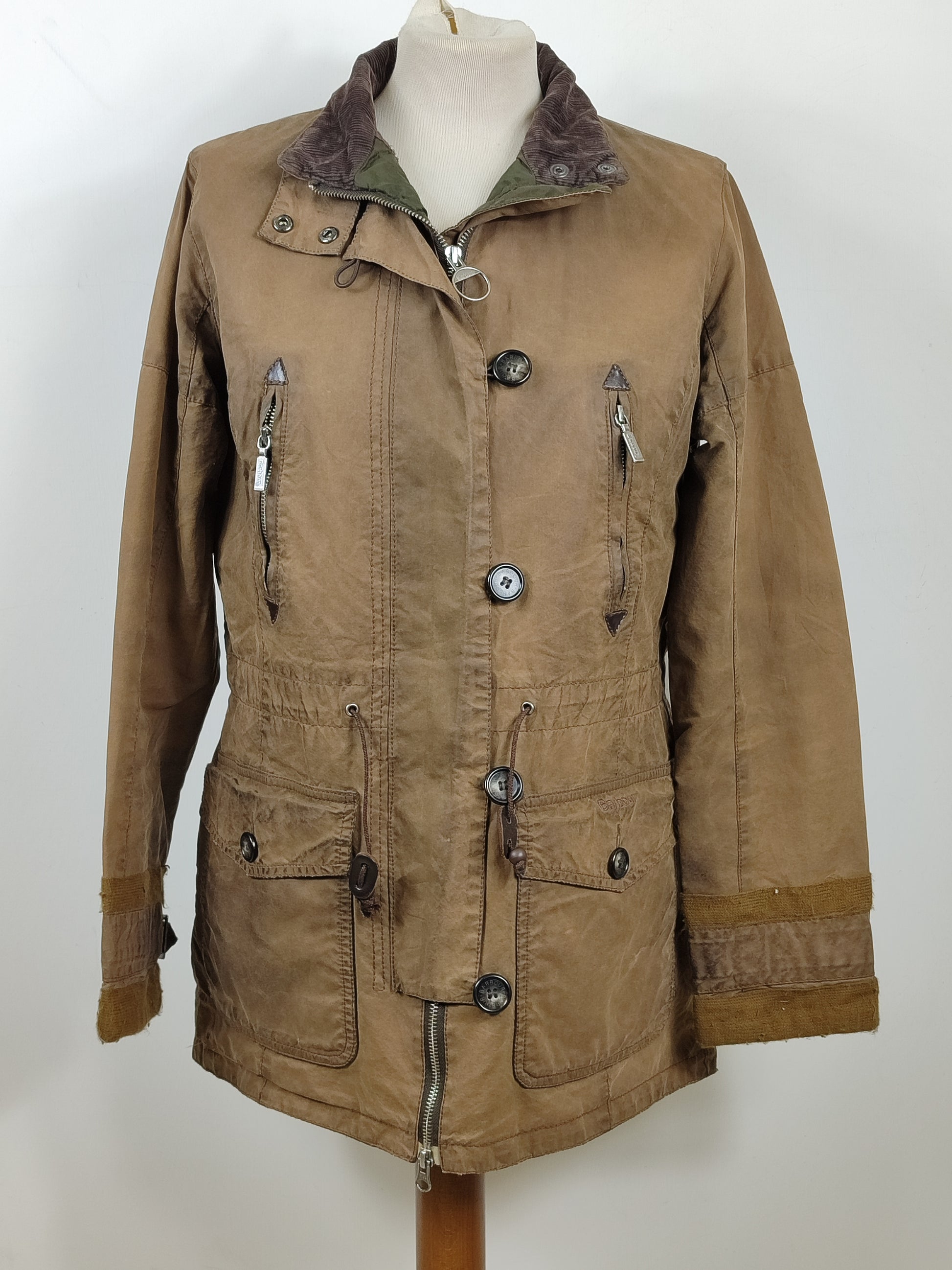 Giacca da donna in cotone cerato di colore verde oliva come da foto , imbottita internamente .