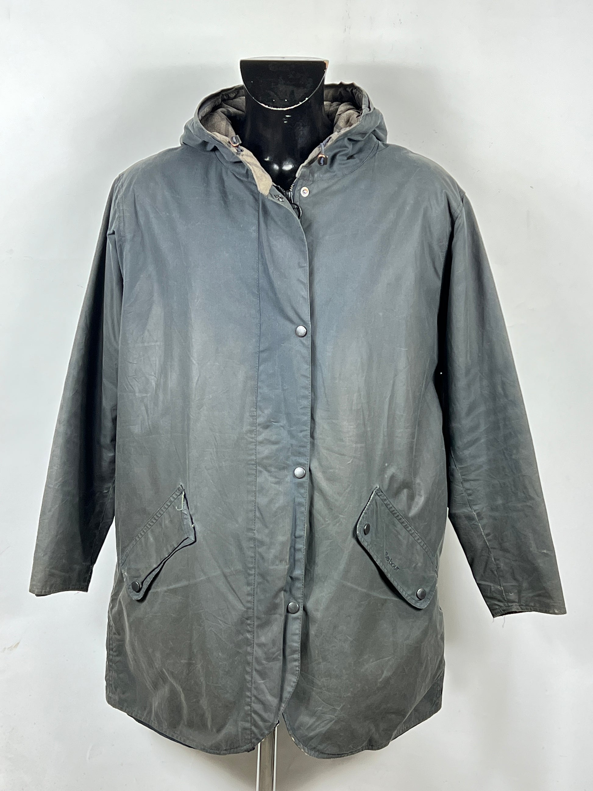 Barbour Giacca blu con cappuccio UNISEX Tg. 48/50 Lady Navy Wax Jacket with hood size uk20