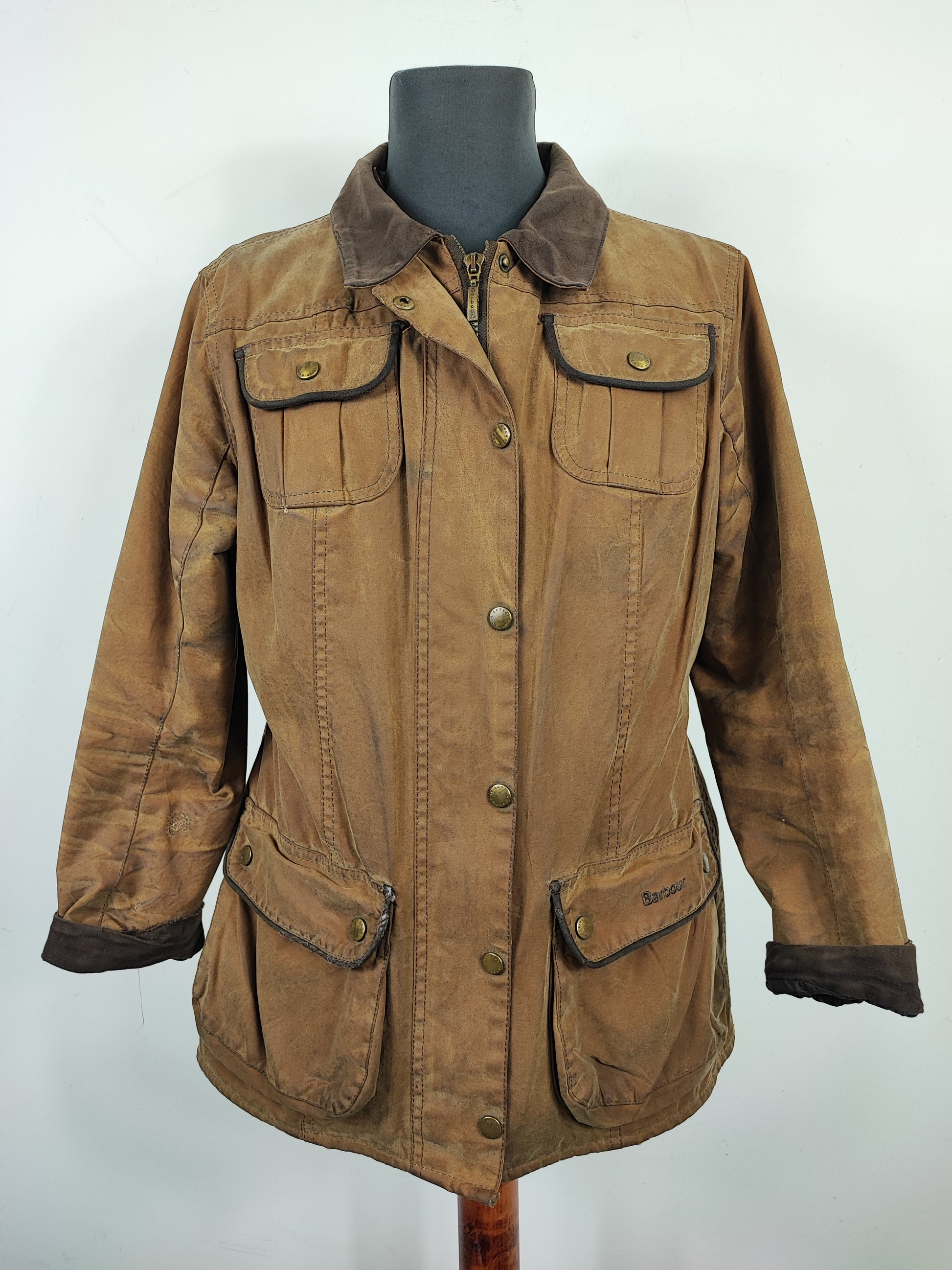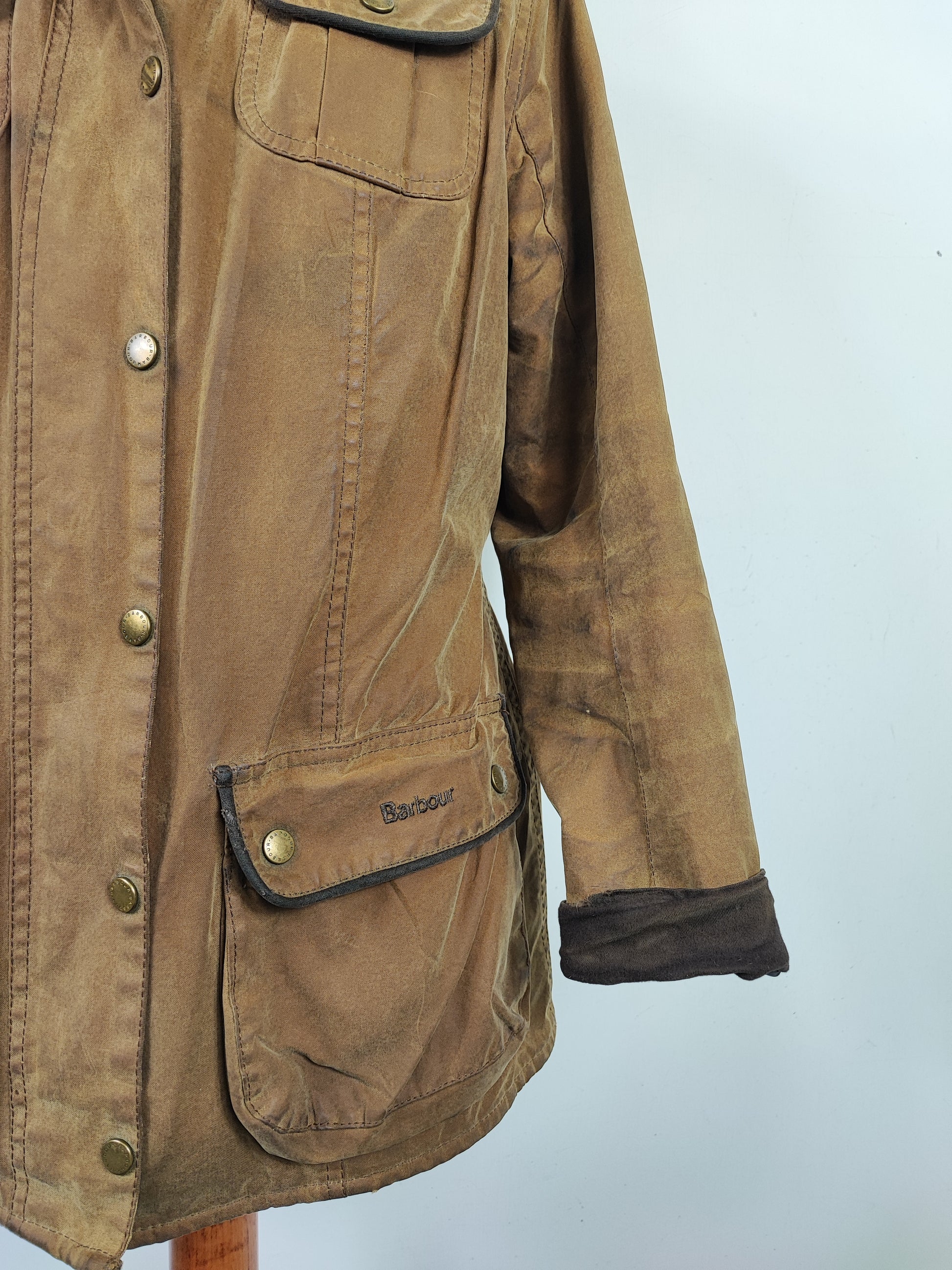 Barbour Giacca corta beige Fur Trim Utility Tg. 44 Lady Beige Utility wax Jacket uk14