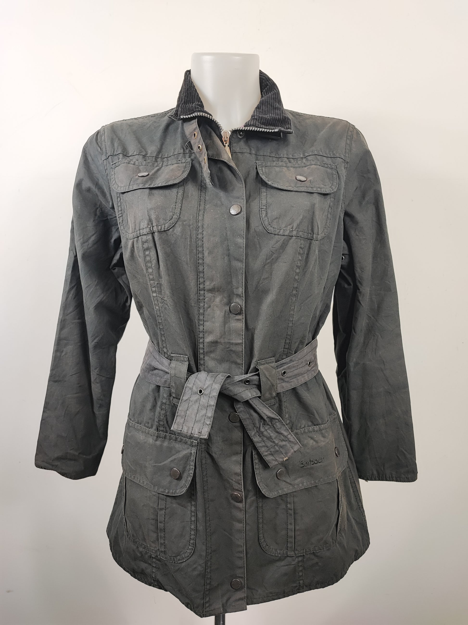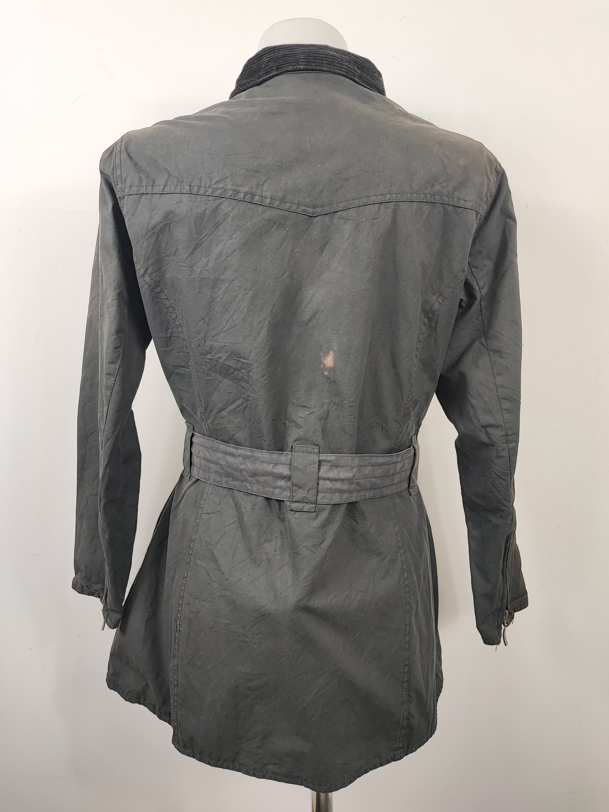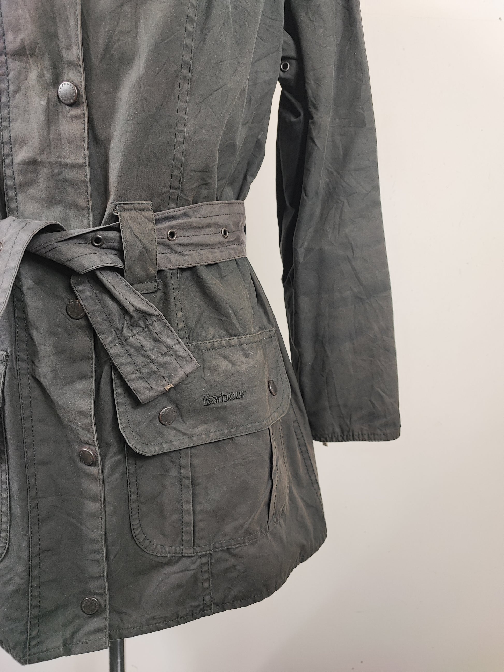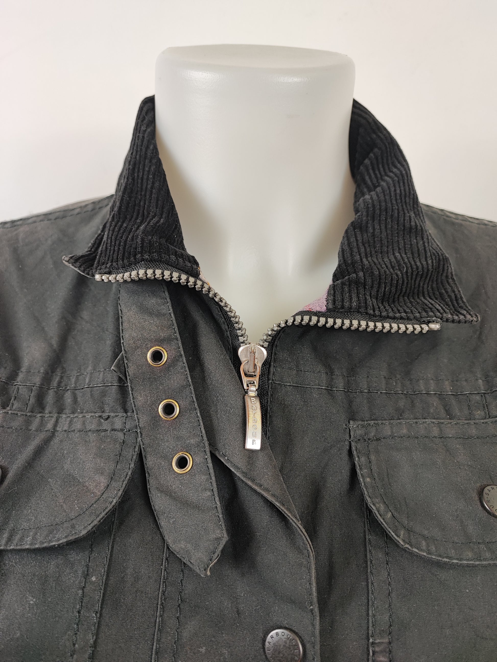 Barbour Giacca nera donna Utility Medium 42 Lady black Utility Mac wax Jacket size uk12