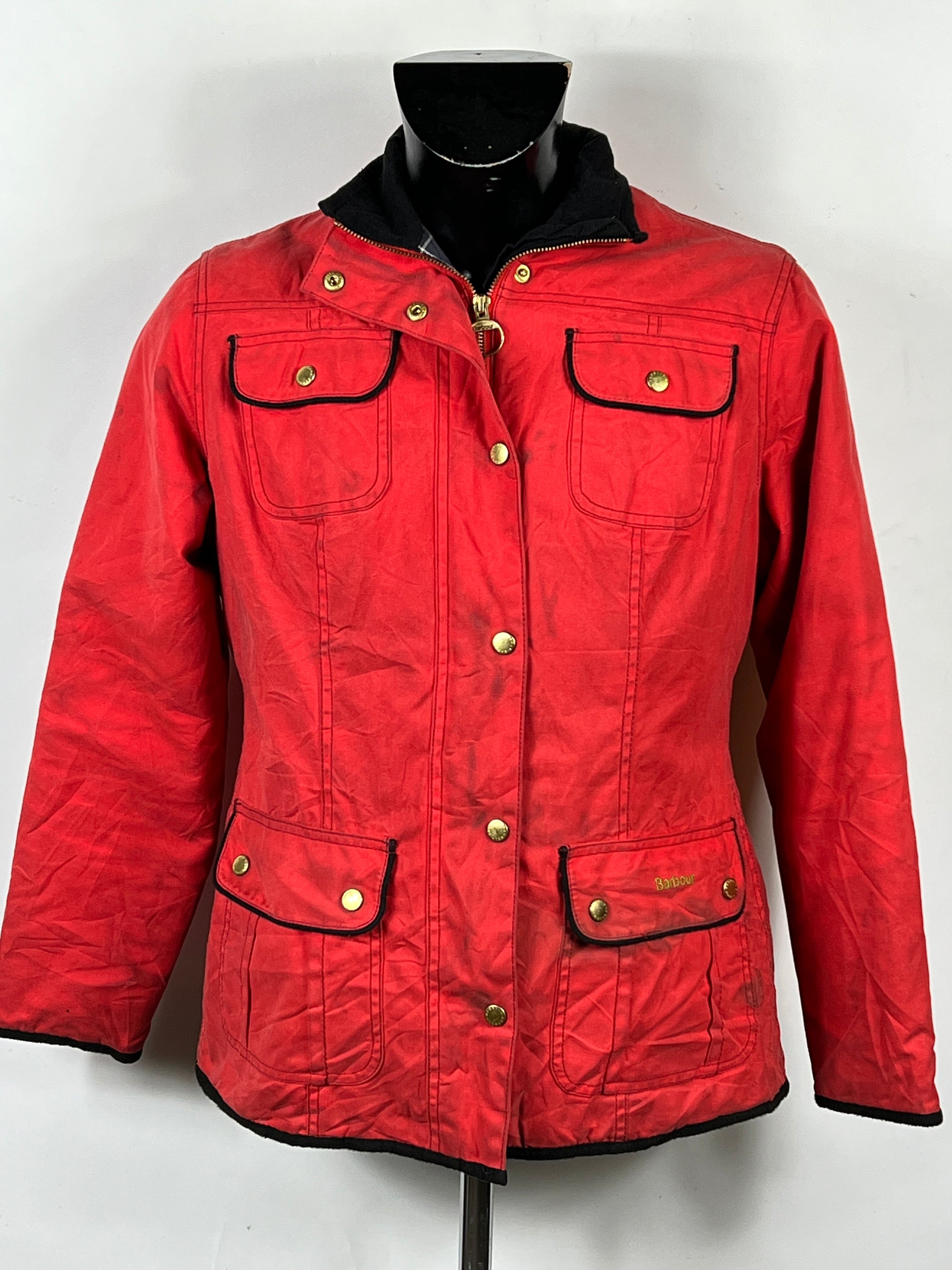 Barbour Giacca corta rossa donna Tg. 42 SMU Red Wax Utility Jacket Size UK14