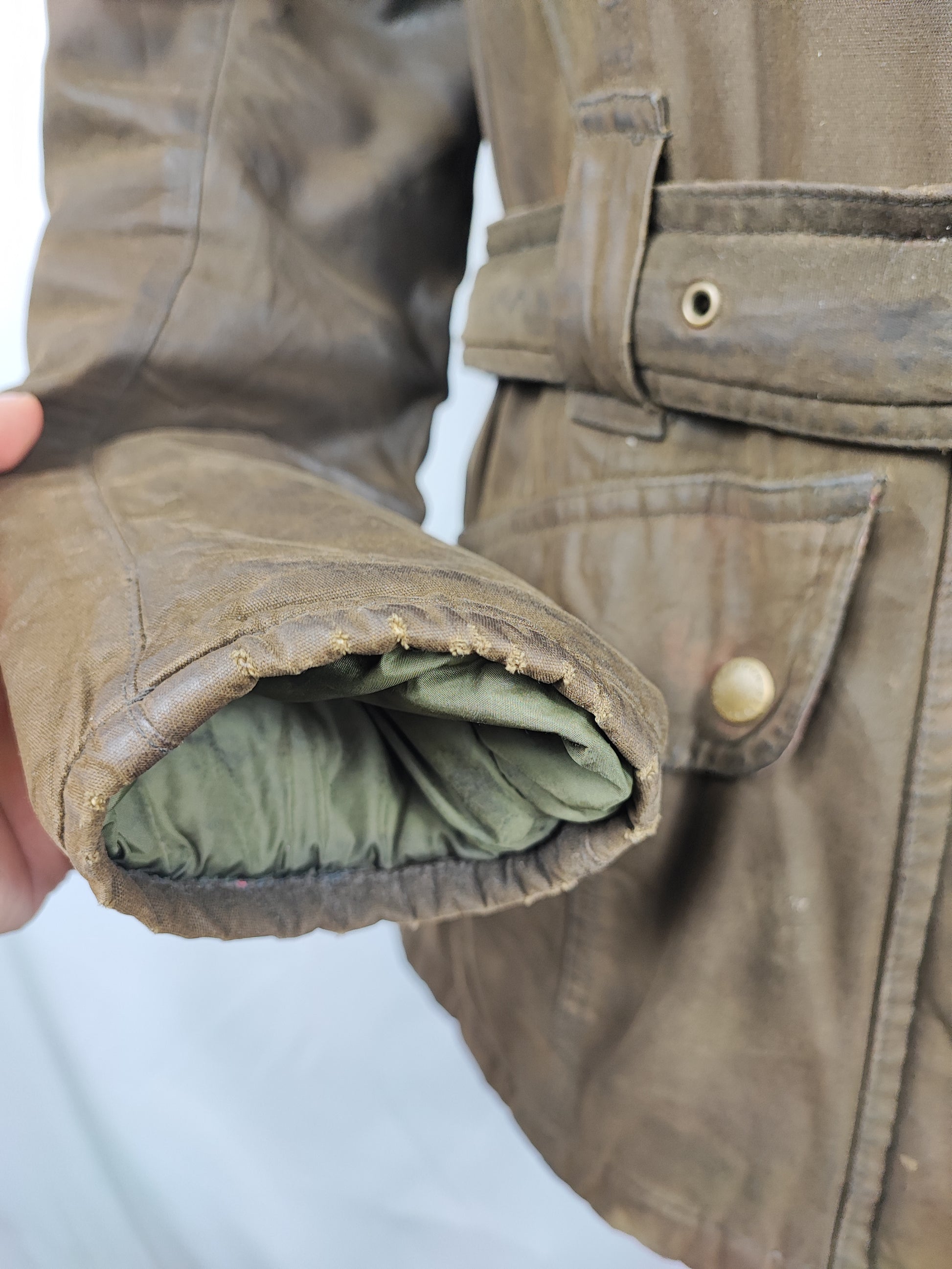 Buone condizioni come da foto. Segno vicino al bottone. Completa di cappuccio rimovibile. Completa di cintura . Usura bordo manica. Il capo è di SECONDA MANO.