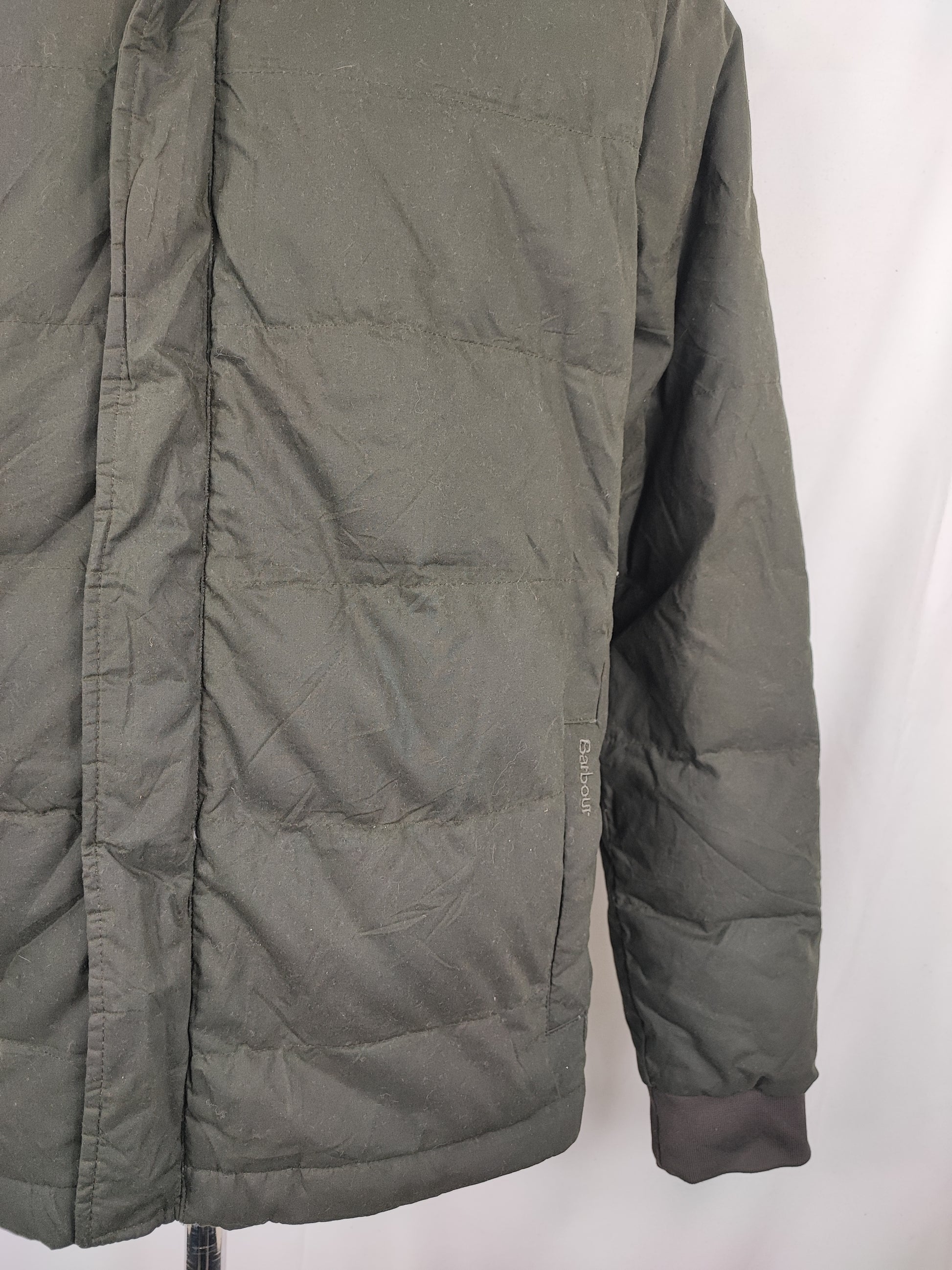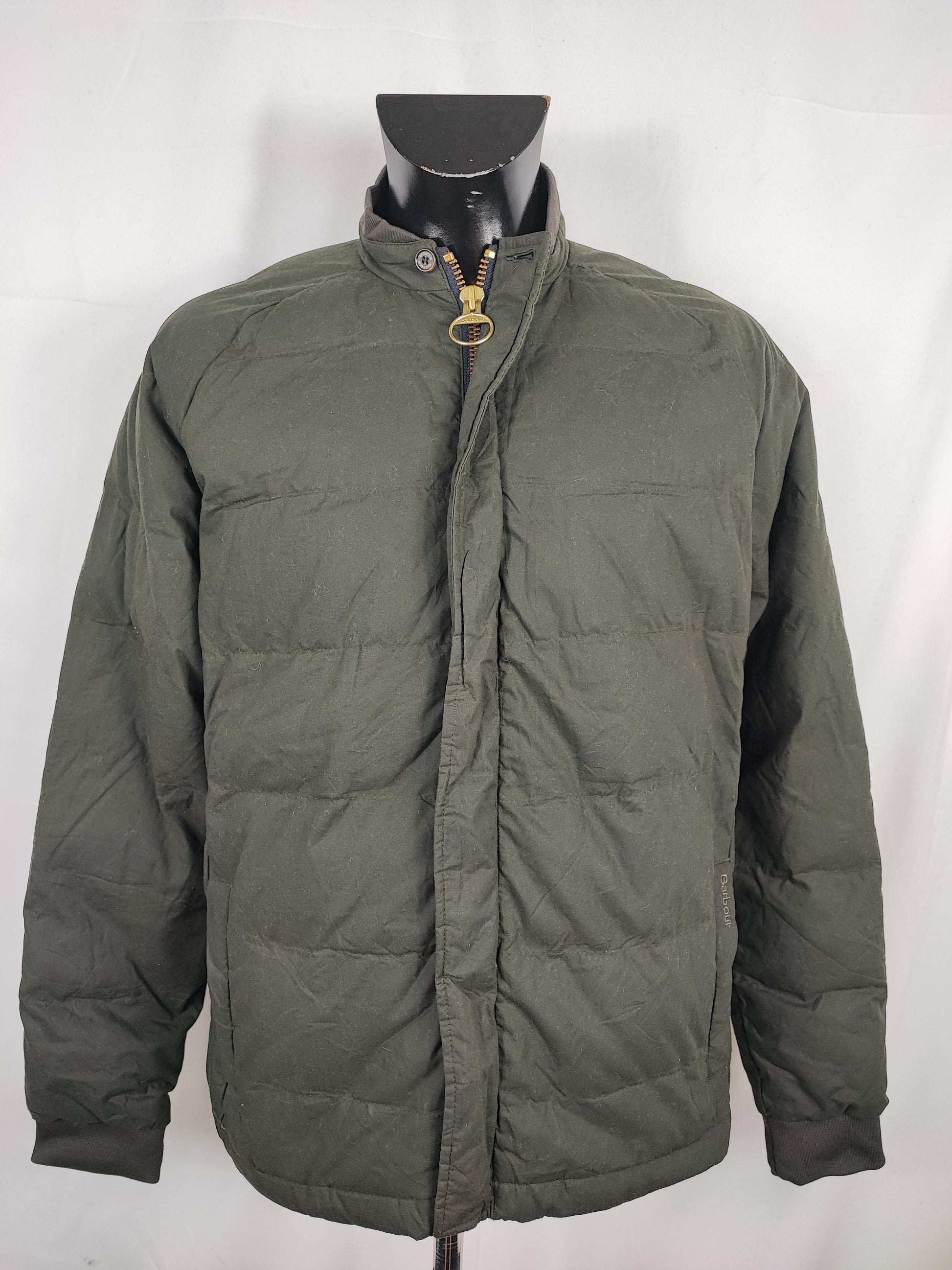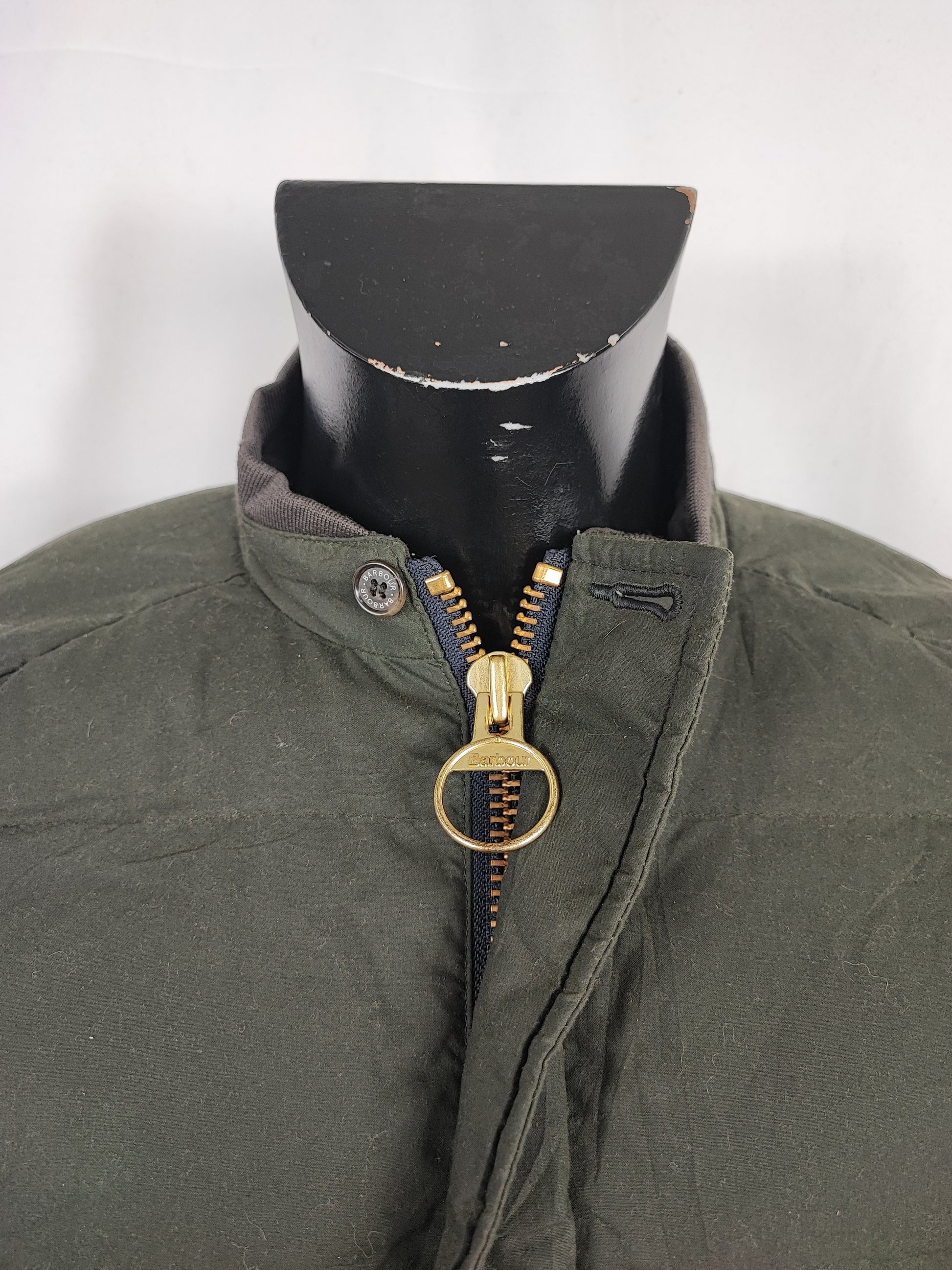 Giacca Barbour da uomo di colore verde oliva in cotone cerato . Invernale, imbottita internamente .