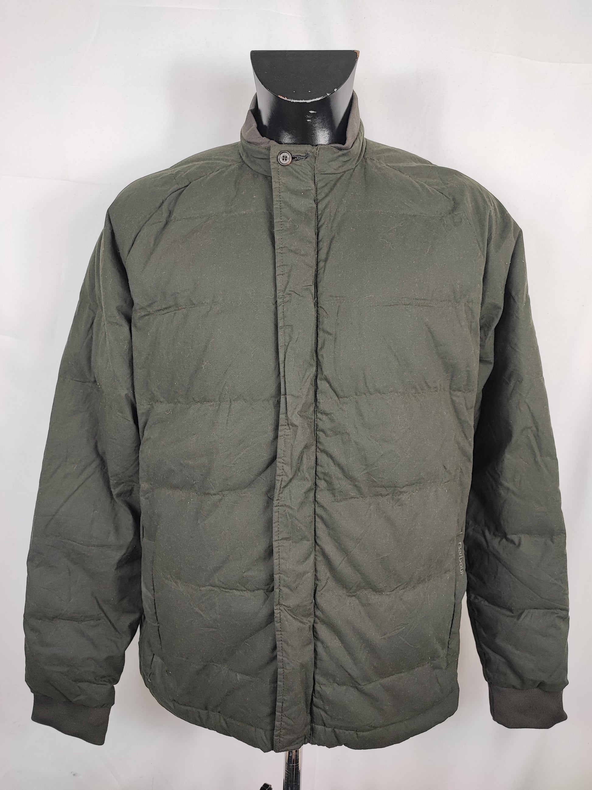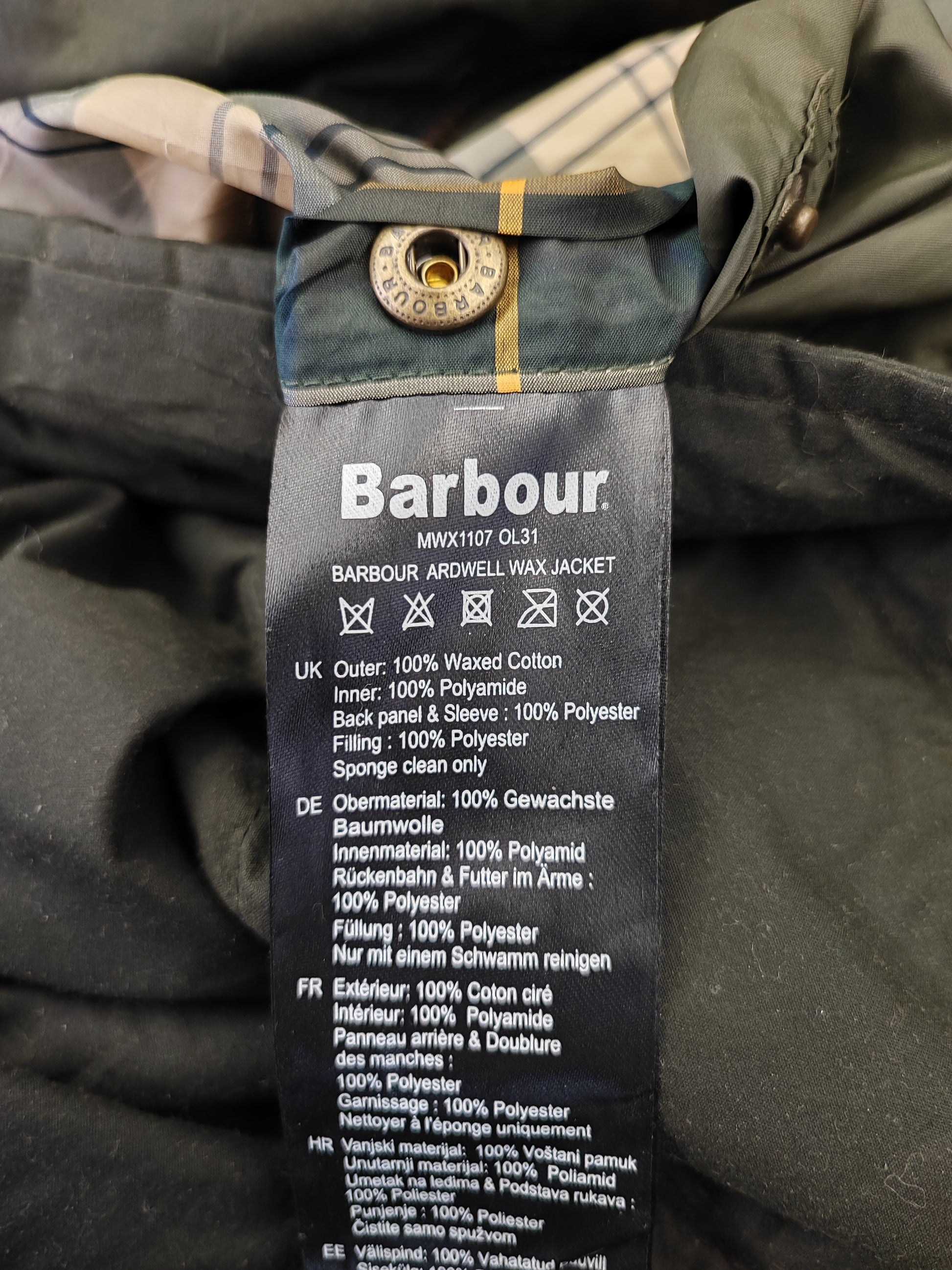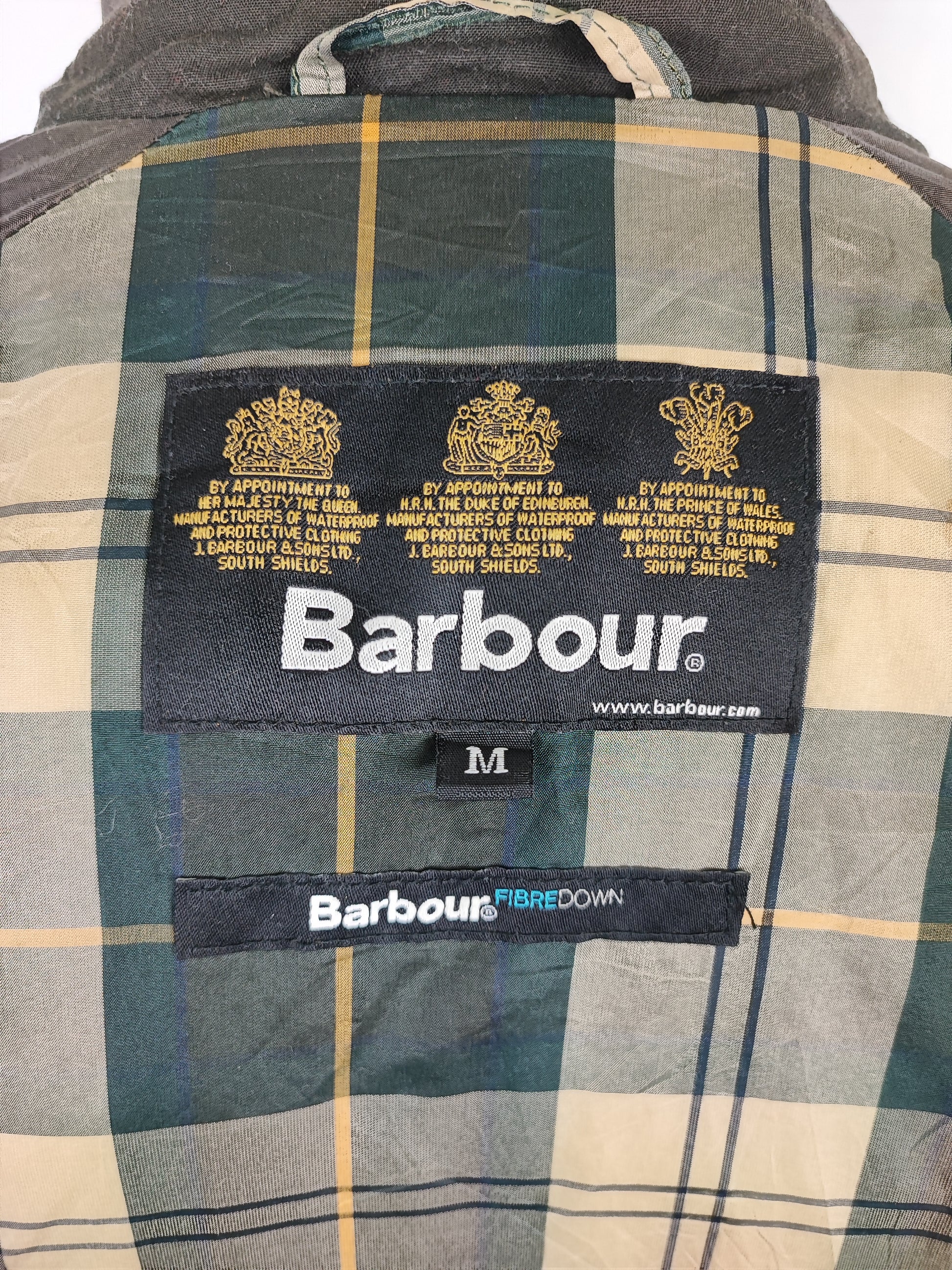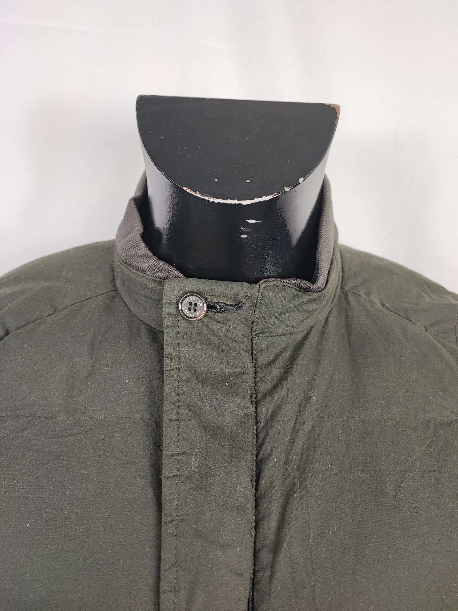 Giacca Barbour da uomo di colore verde oliva in cotone cerato . Invernale, imbottita internamente .