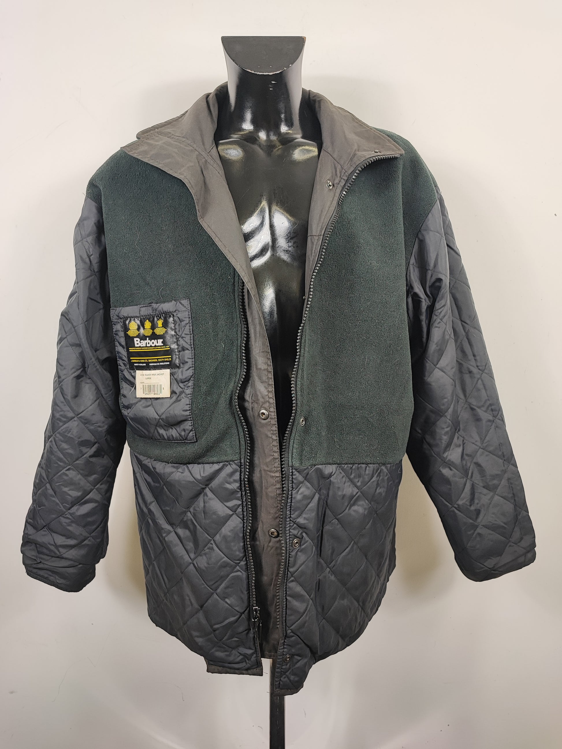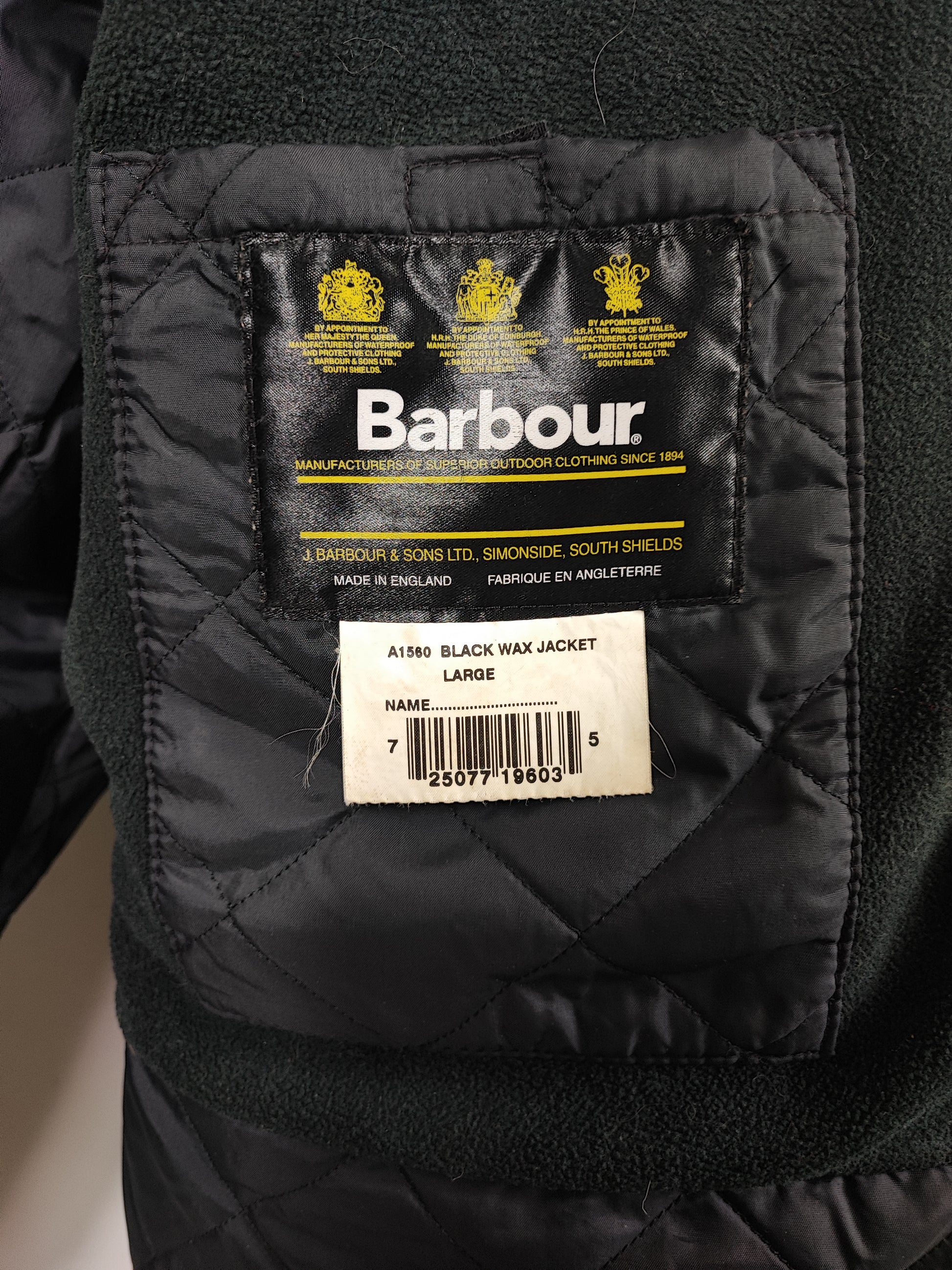Giacca da uomo Barbour nera imbottita e cerata .