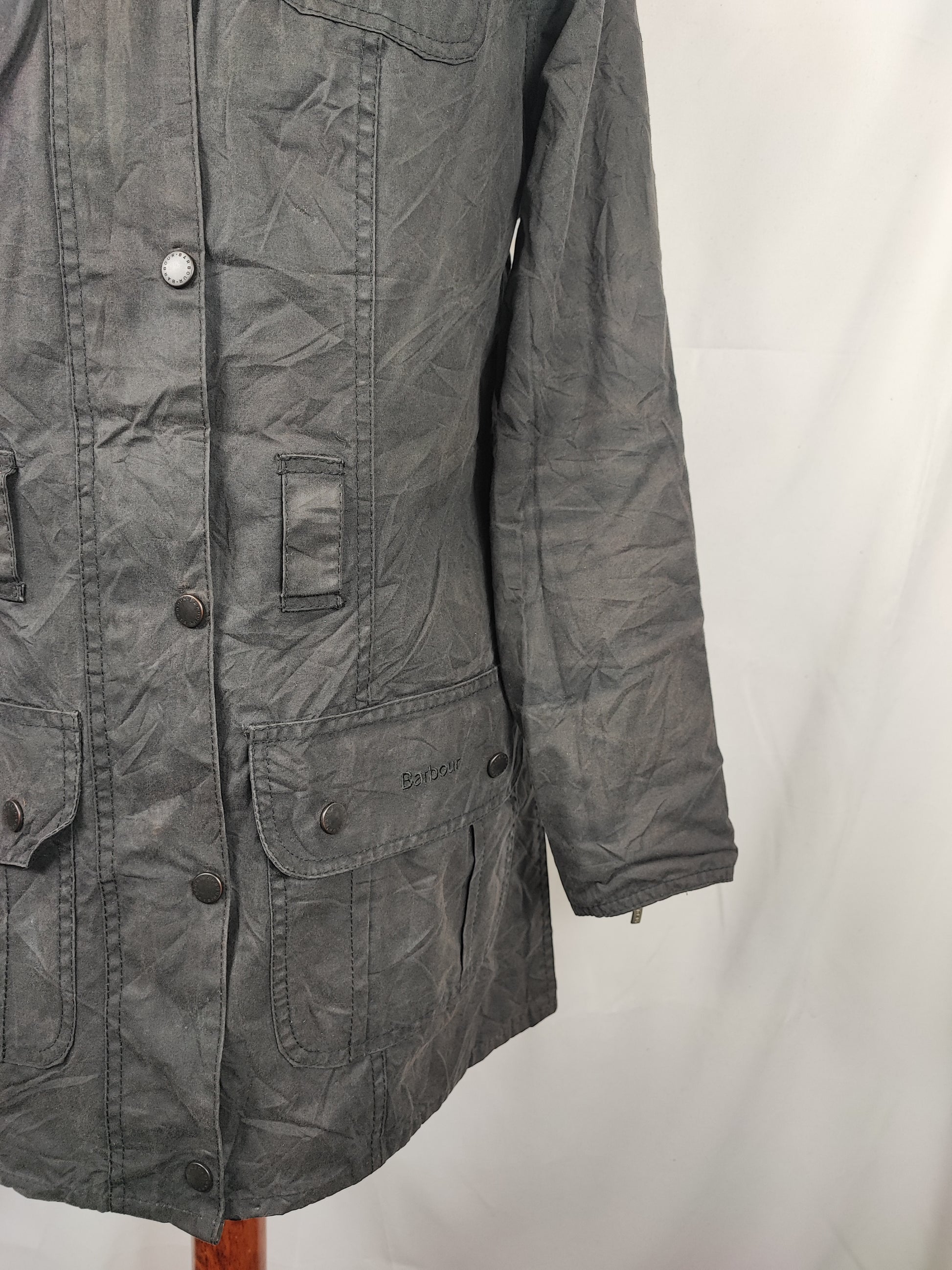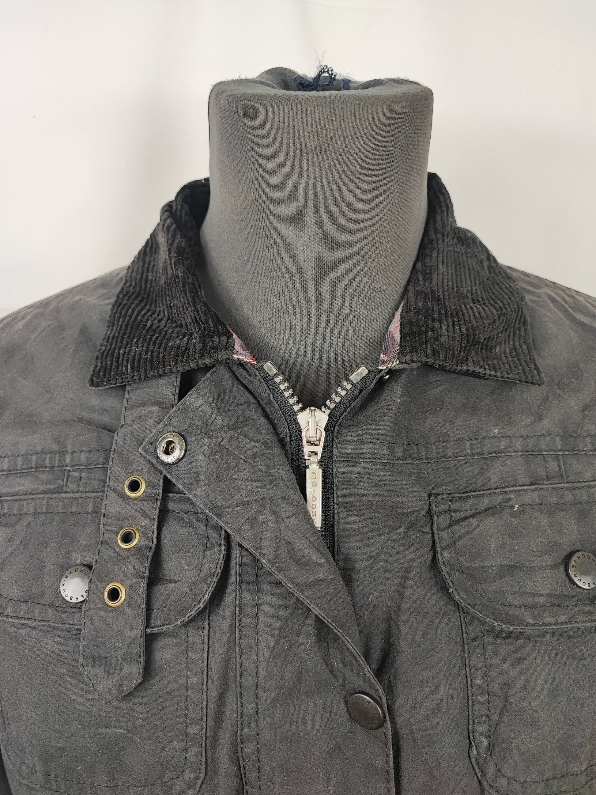 Barbour Giacca nera donna Utility Medium 42 Lady black Utility Mac wax Jacket size uk12
