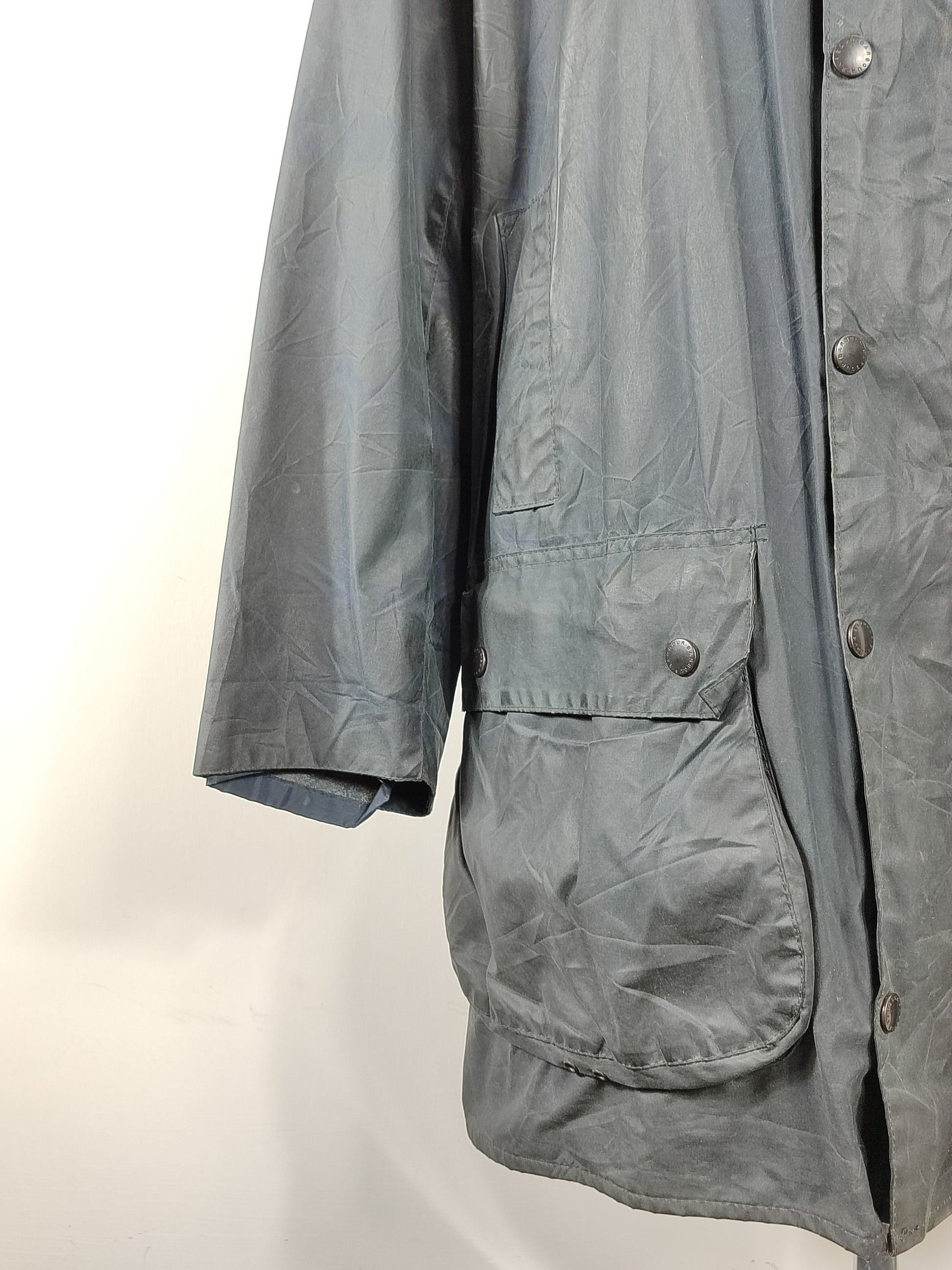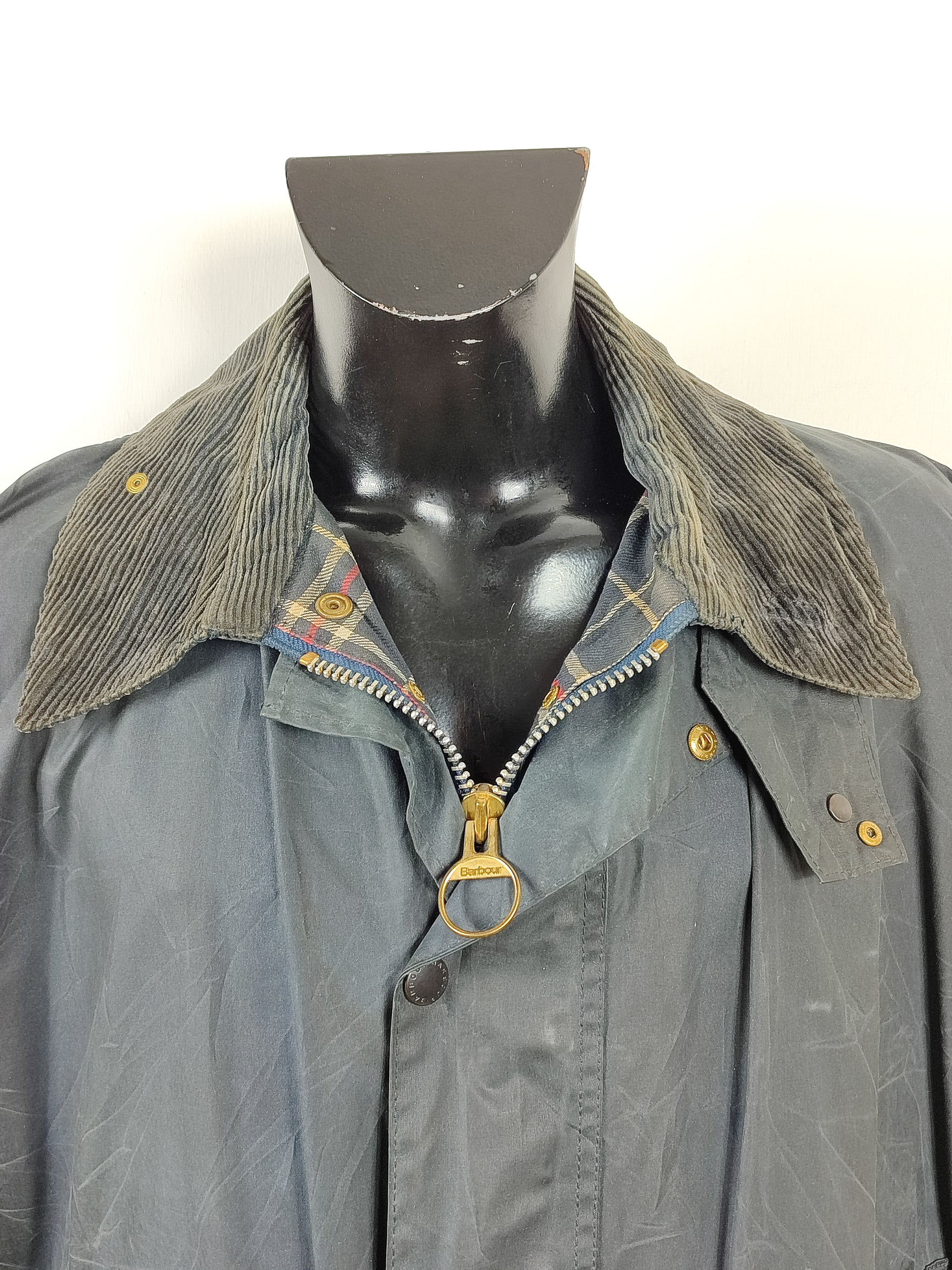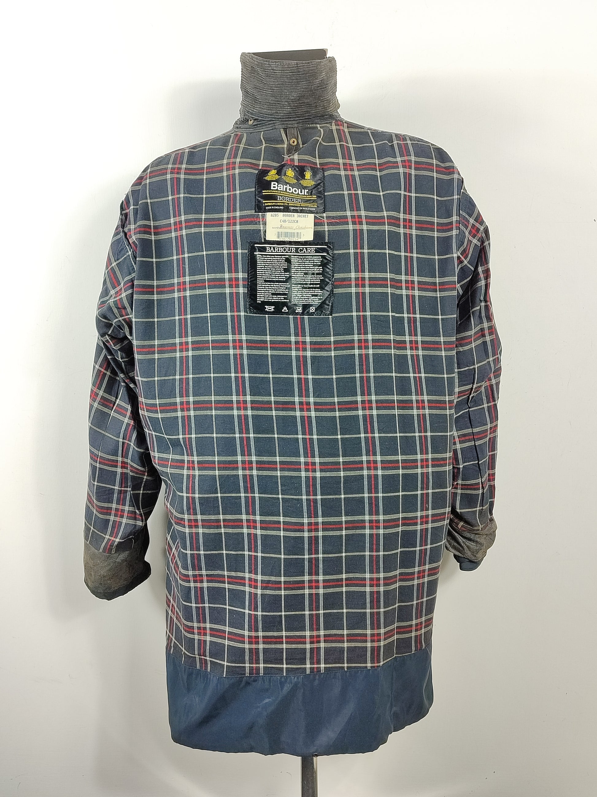 Giacca Vintage Barbour, modello Border blu vintage taglia XL comoda C48/122 CM che corrisponde ad una taglia 58 italiana circa ( vedere bene le misure qui sotto )