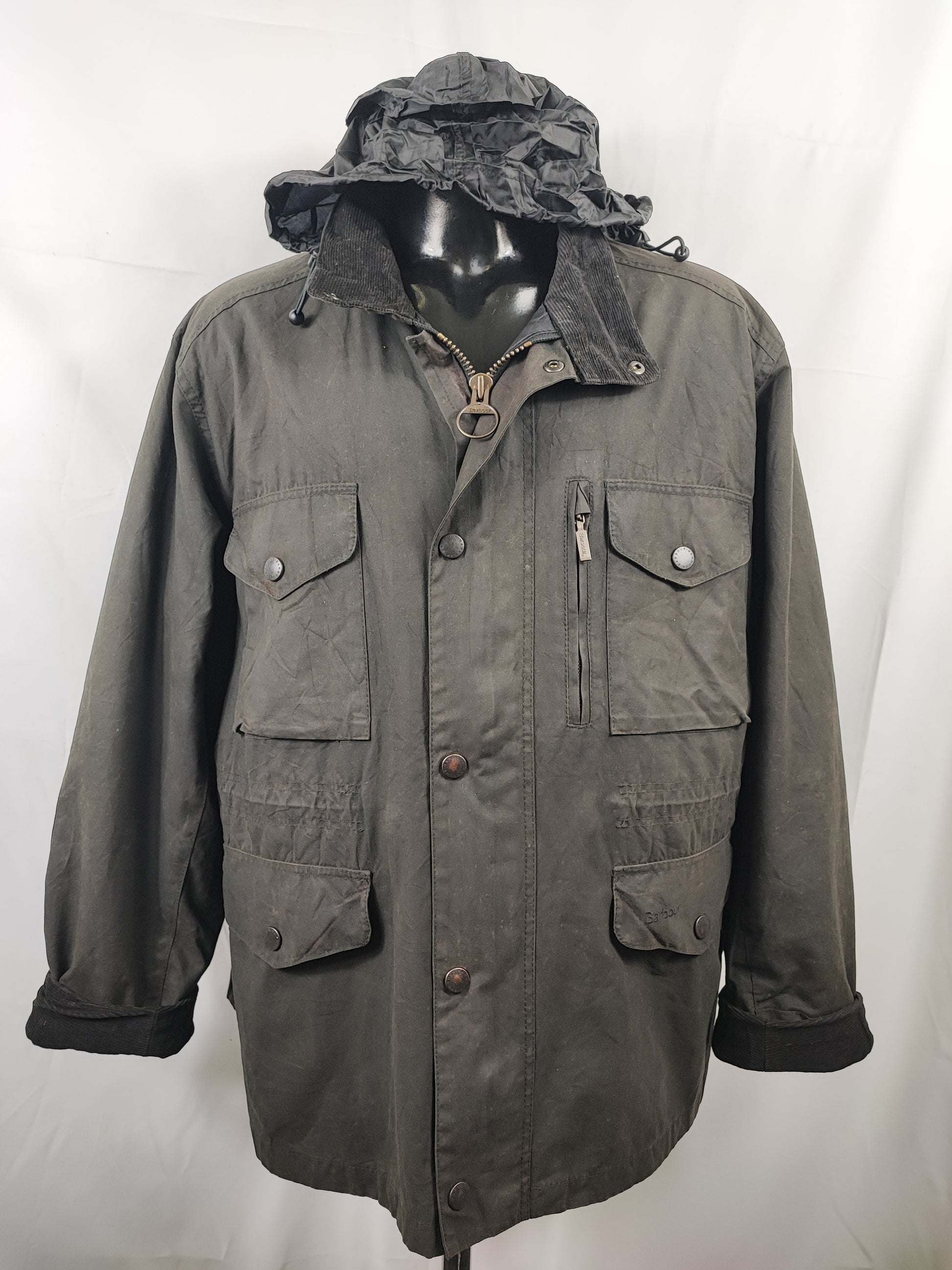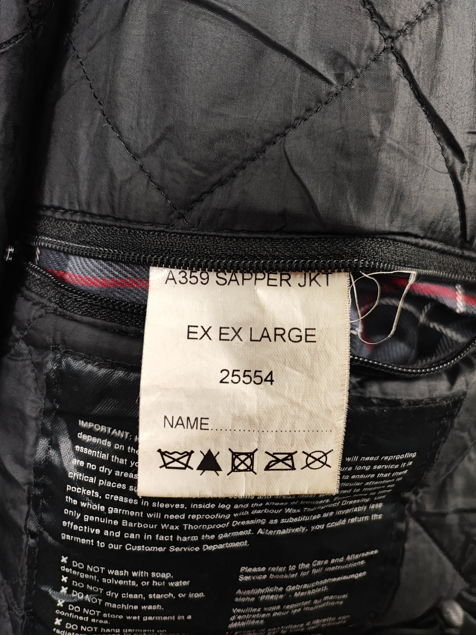 Giacca Barbour nera in cotone cerato modello Sapper Jacket taglia XXLarge ( LEGGERE BENE LE MISURE QUI SOTTO).