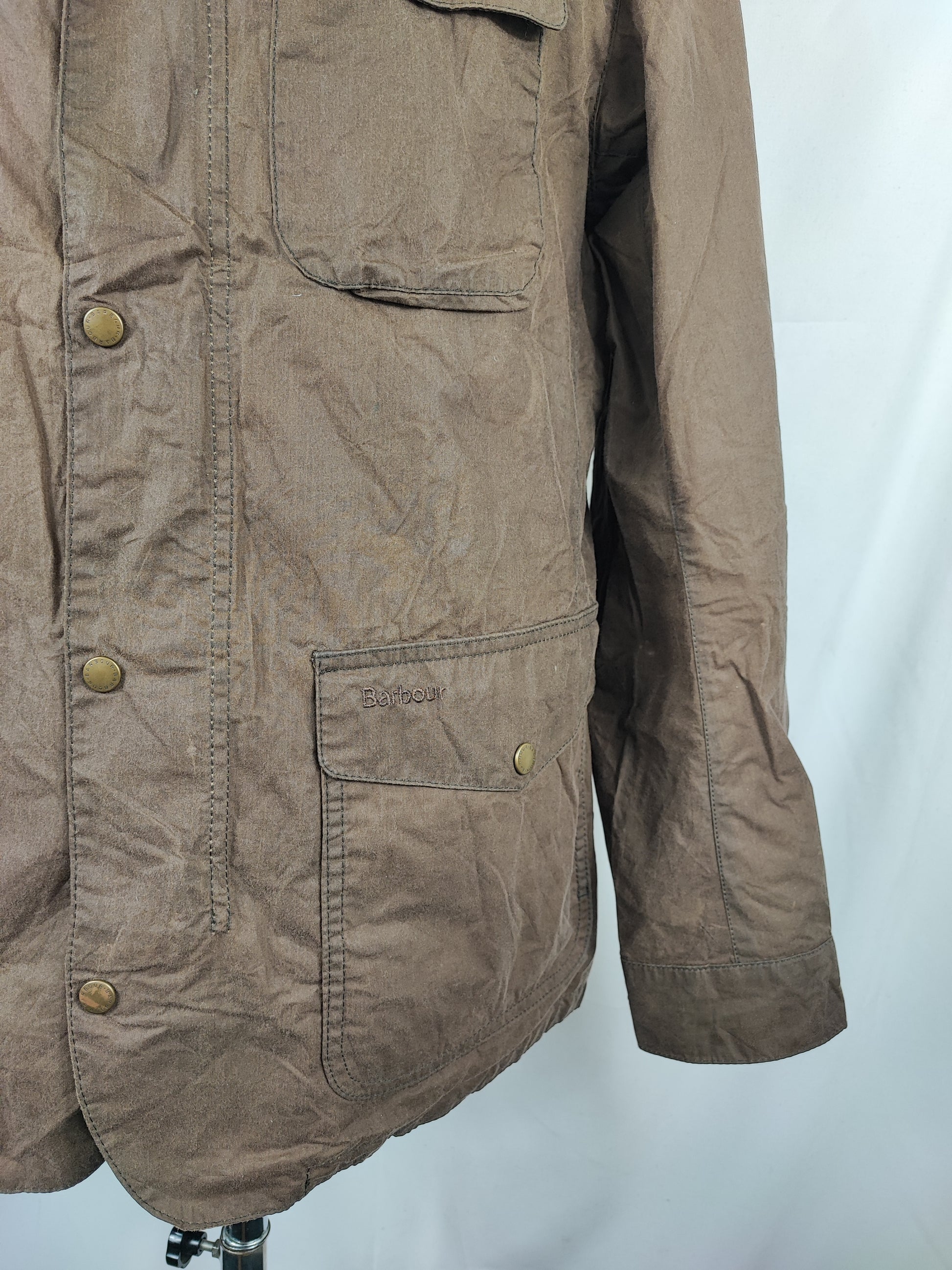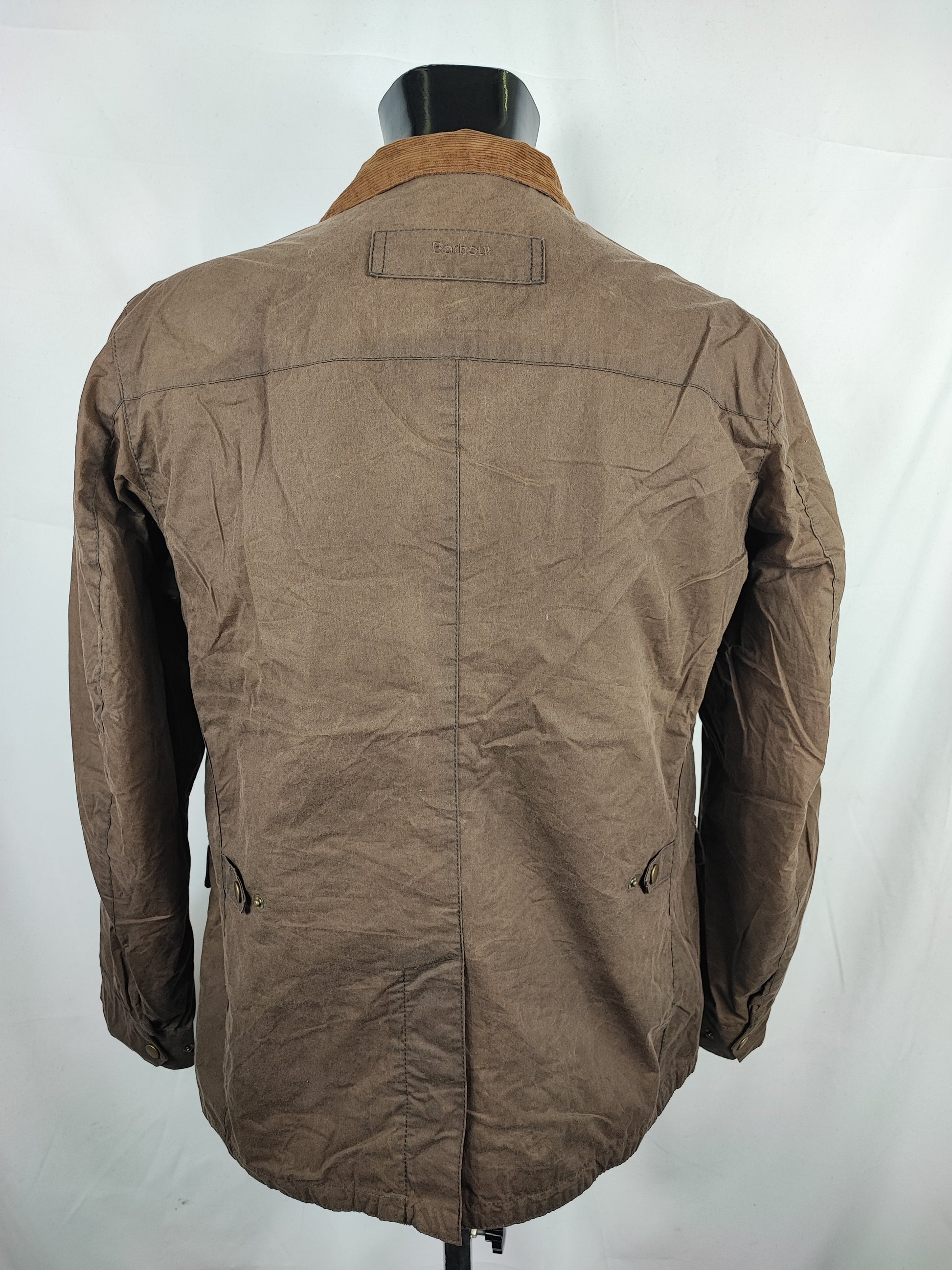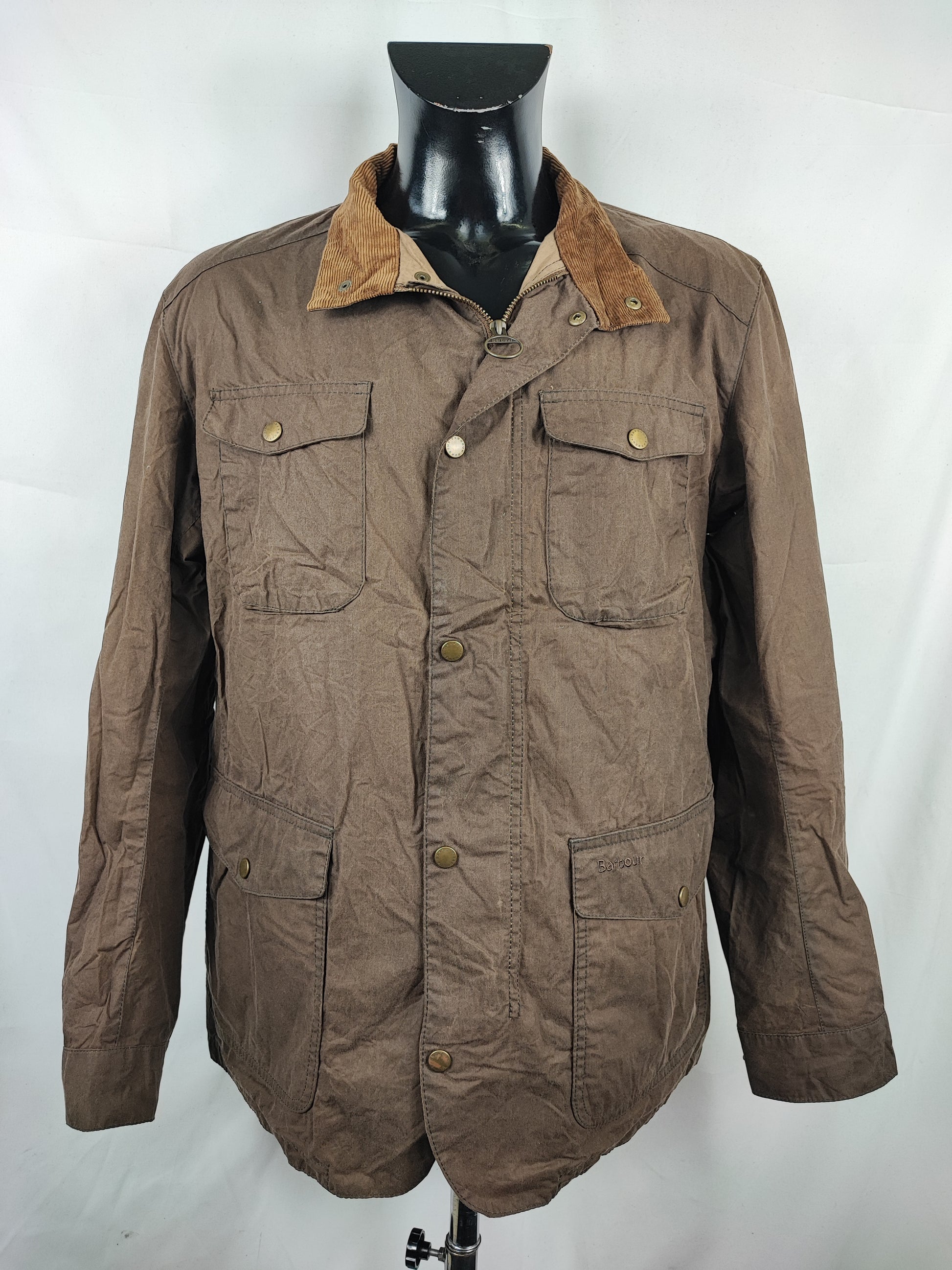 Giacca Barbour beige scuro in cotone cerato GRAMMATURA DI COTONE più leggera rispetto ai classici . Perfetta per la mezza stagione ma è cerata .