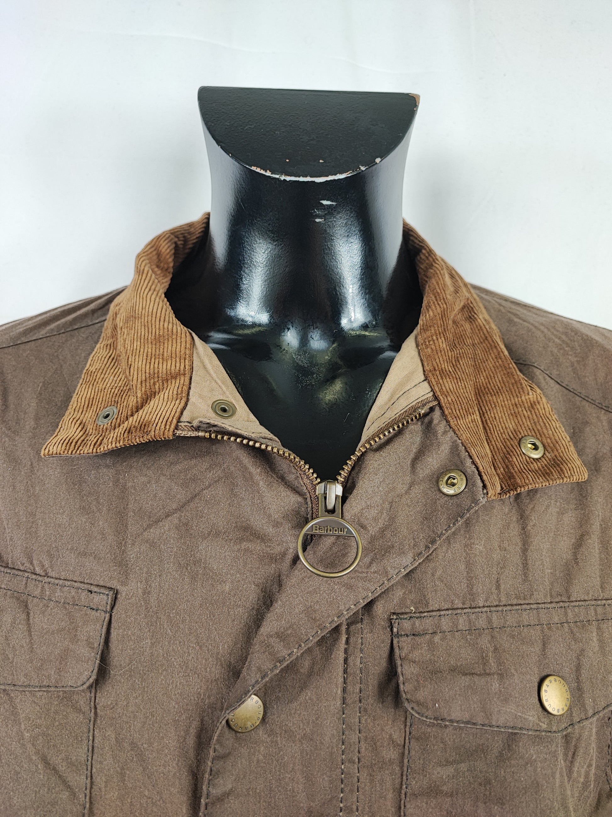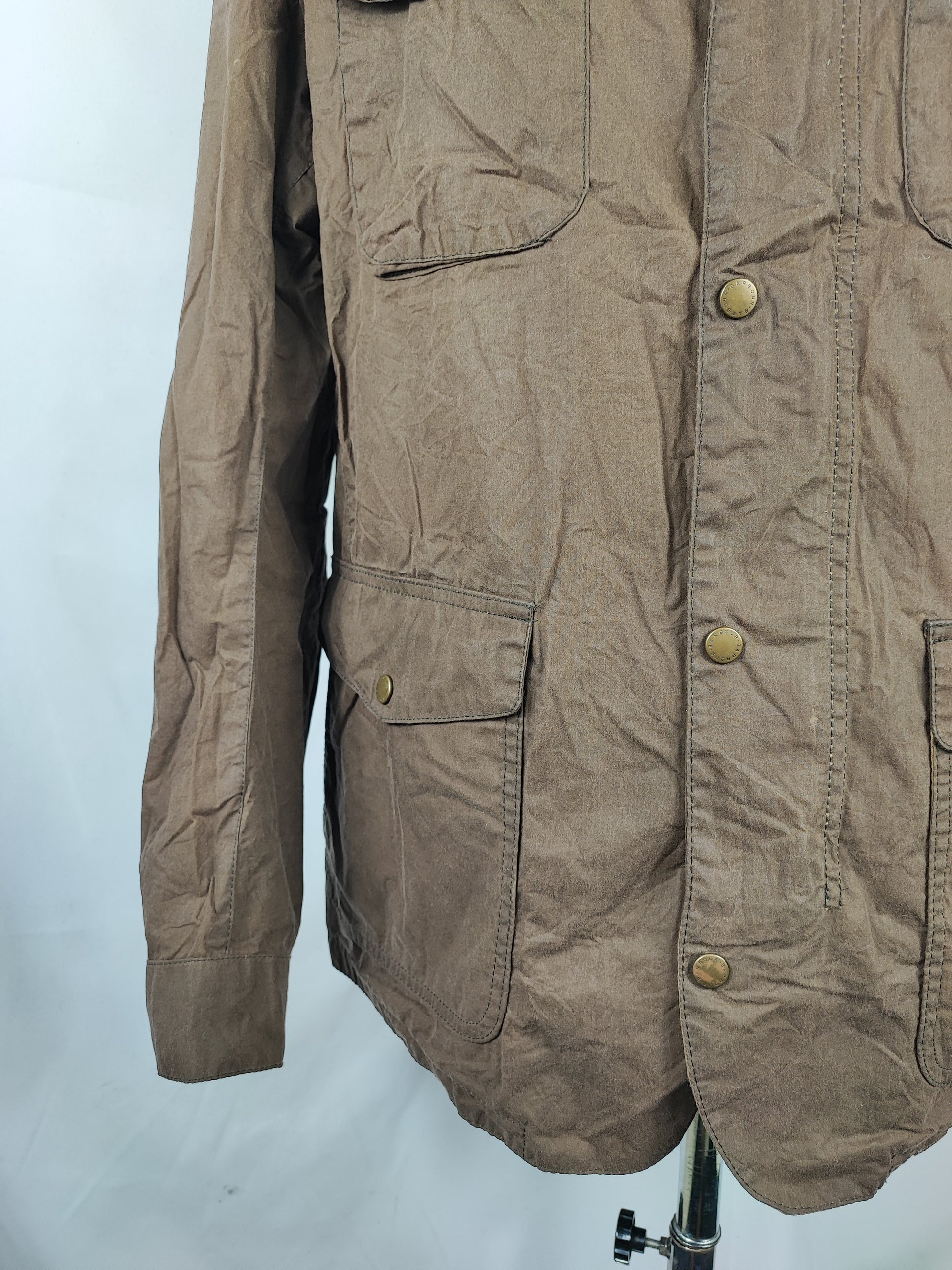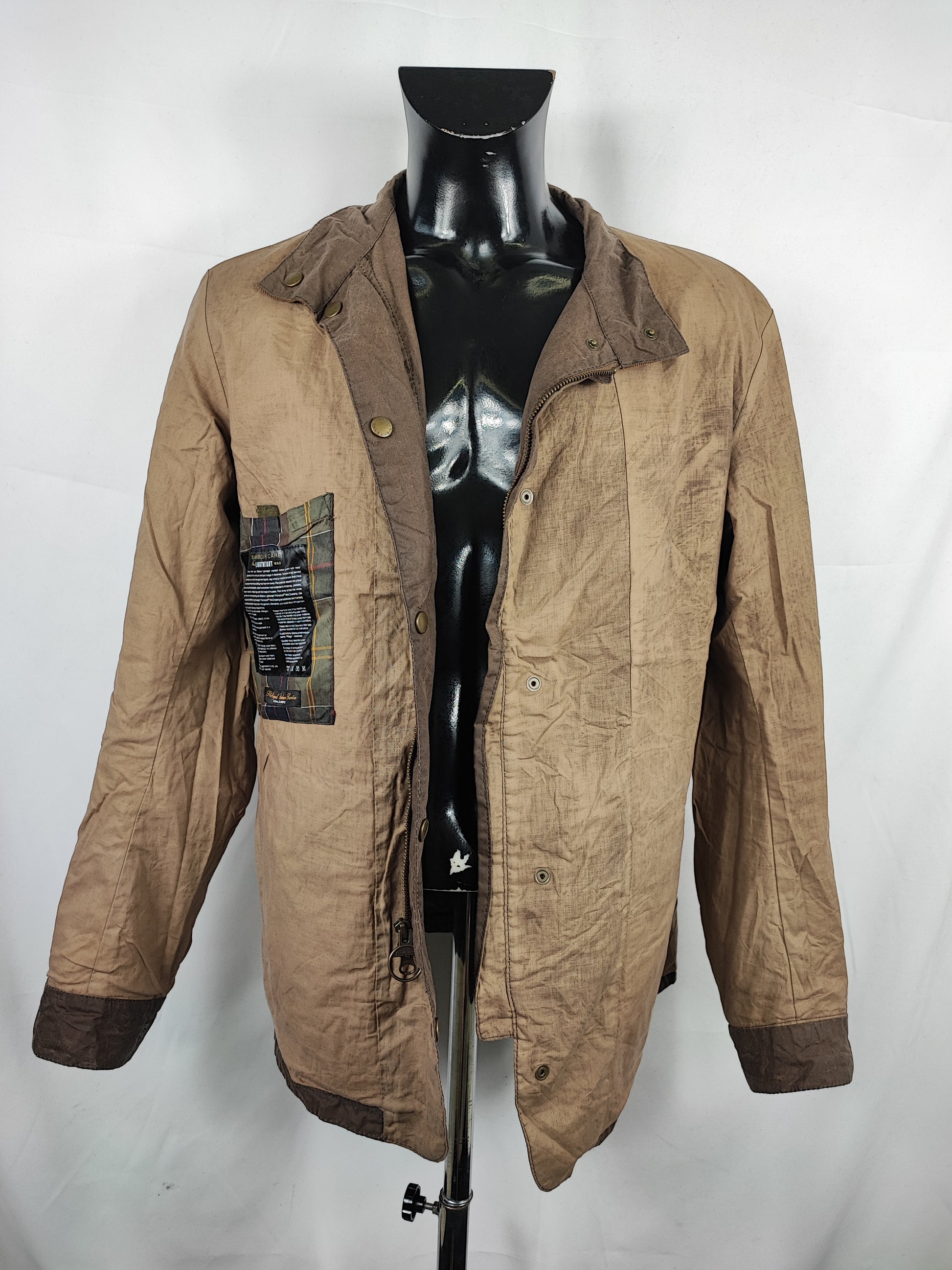 Giacca Barbour beige scuro in cotone cerato GRAMMATURA DI COTONE più leggera rispetto ai classici . Perfetta per la mezza stagione ma è cerata .