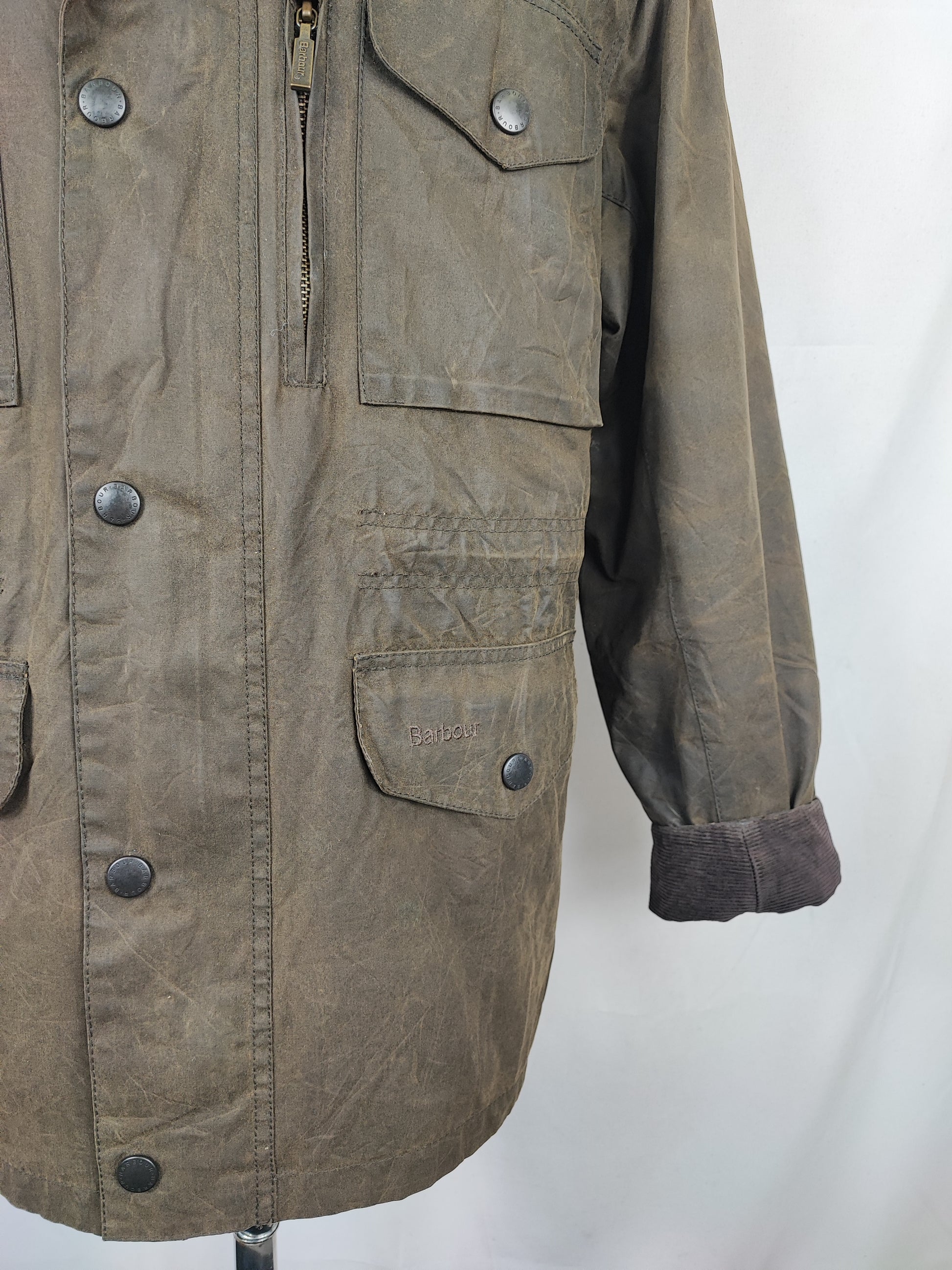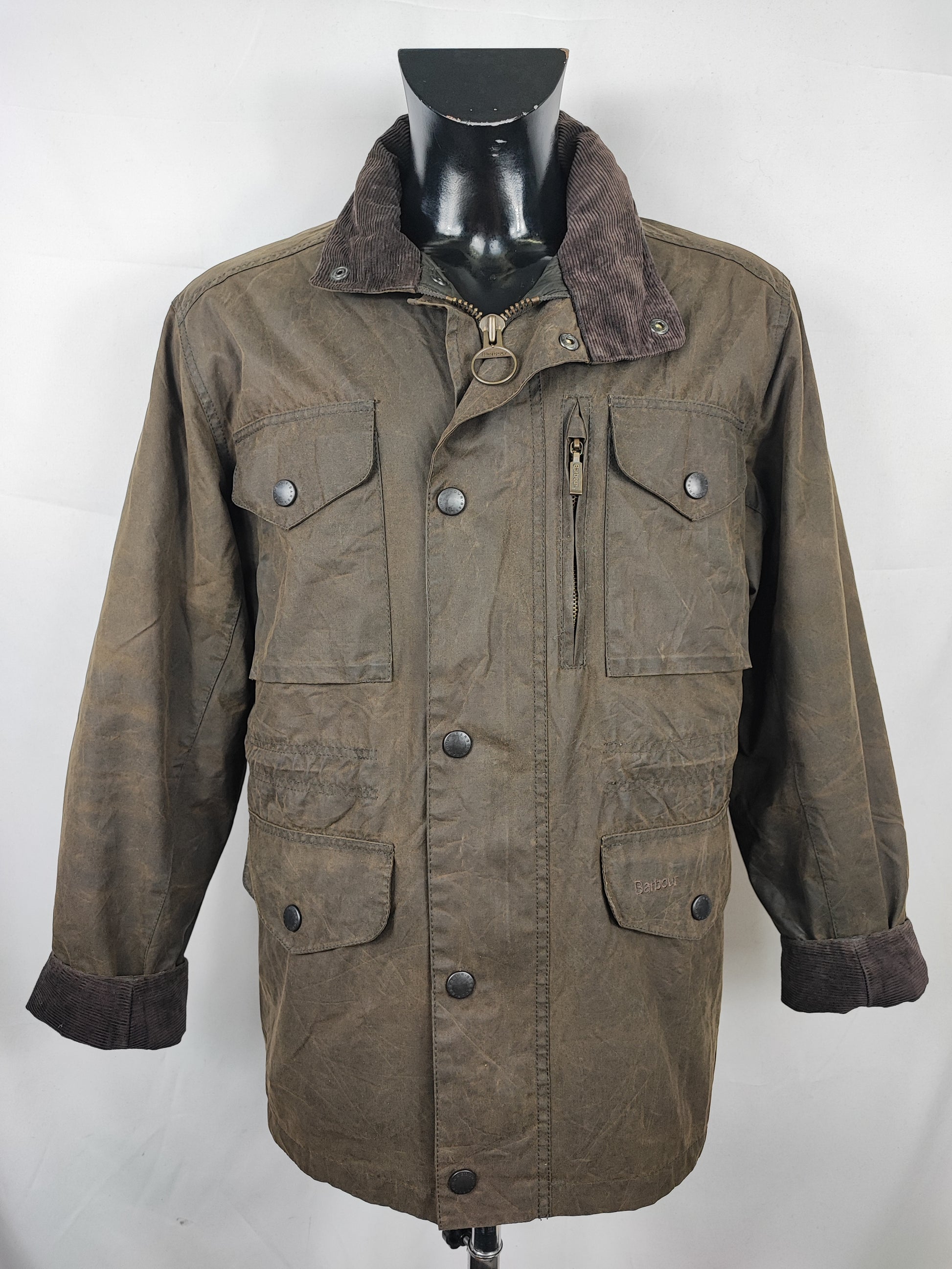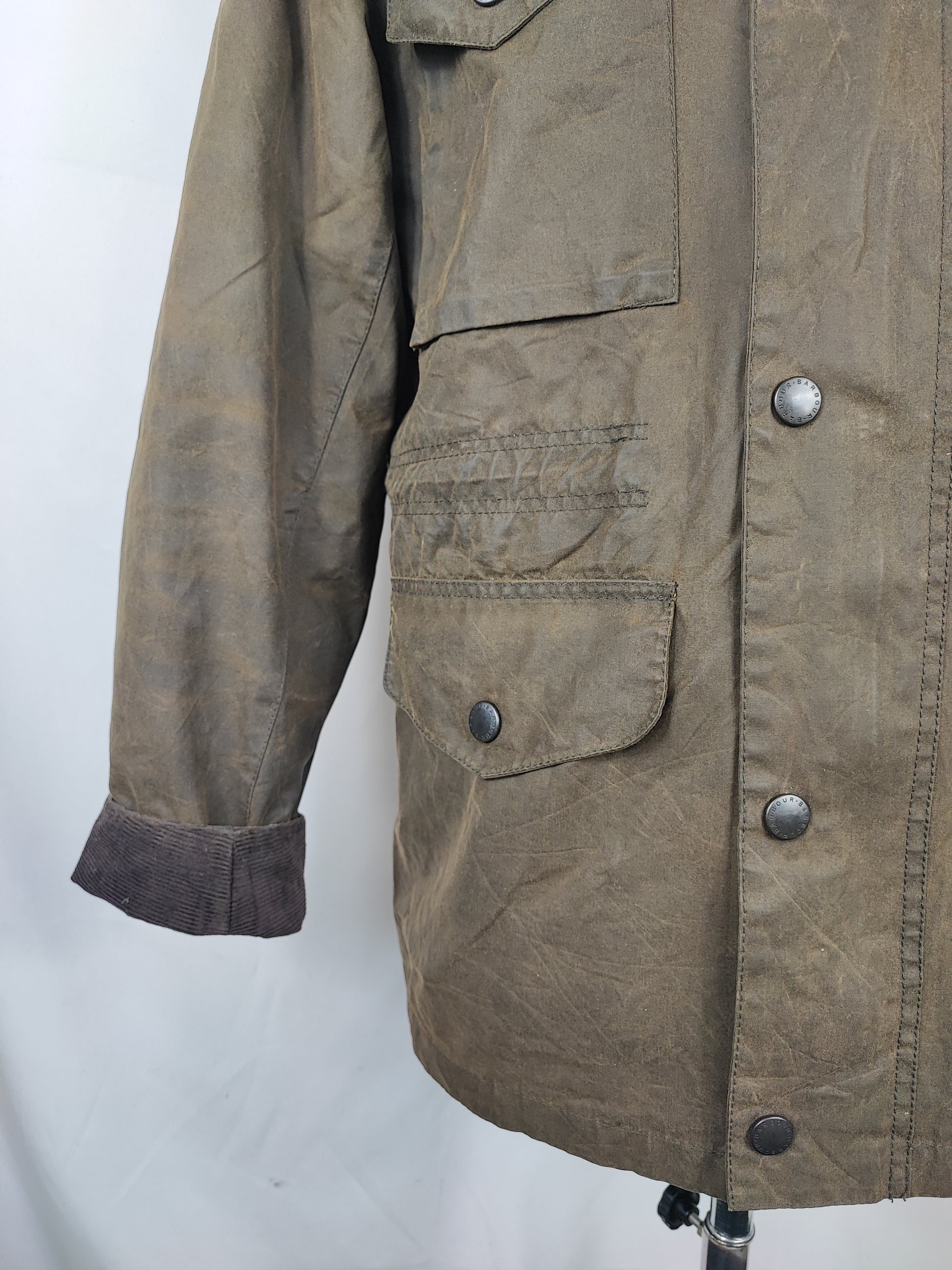 Giacca Barbour verde oliva in cotone cerato modello Sapper Jacket taglia Medium ( LEGGERE BENE LE MISURE QUI SOTTO).