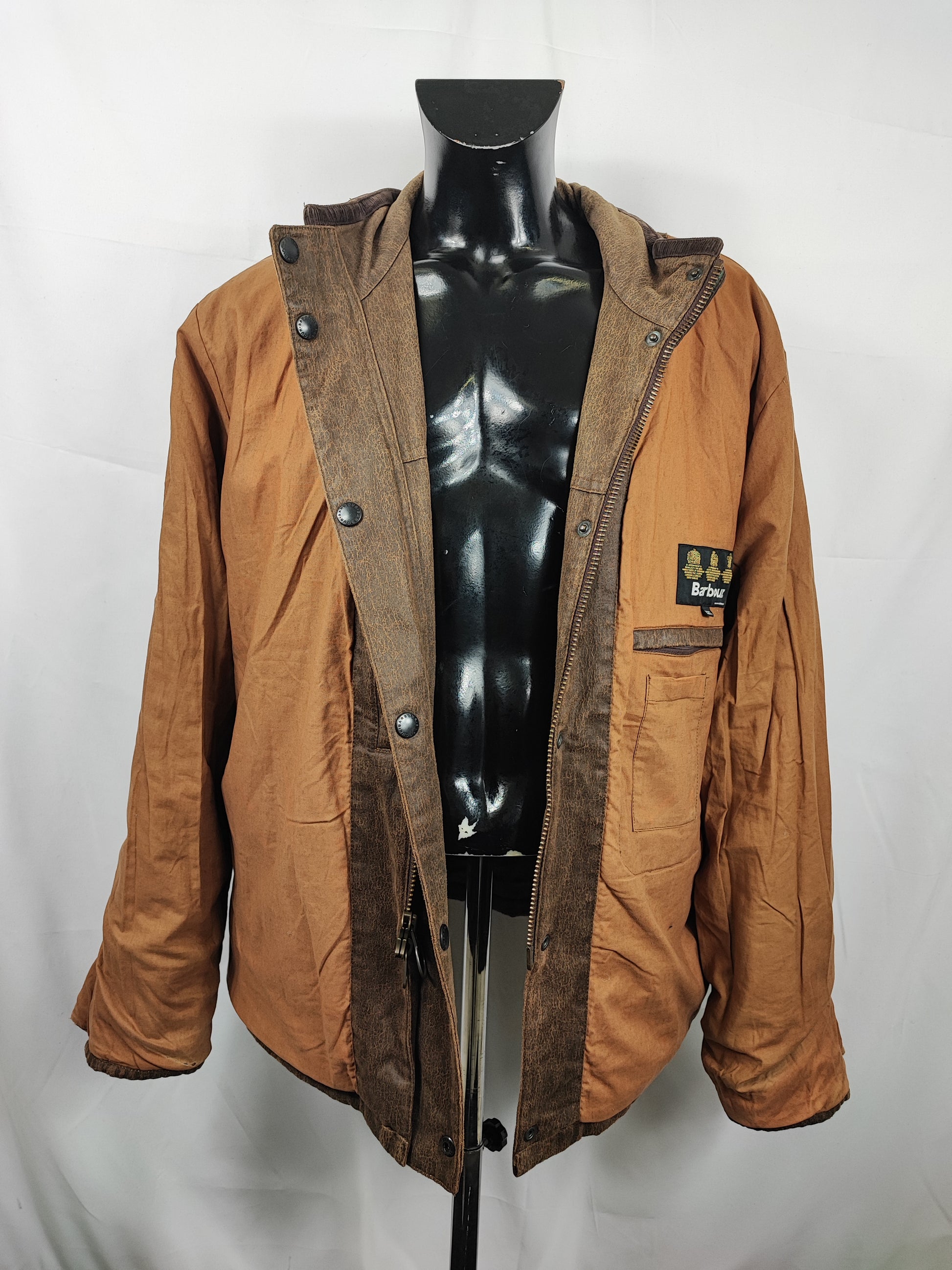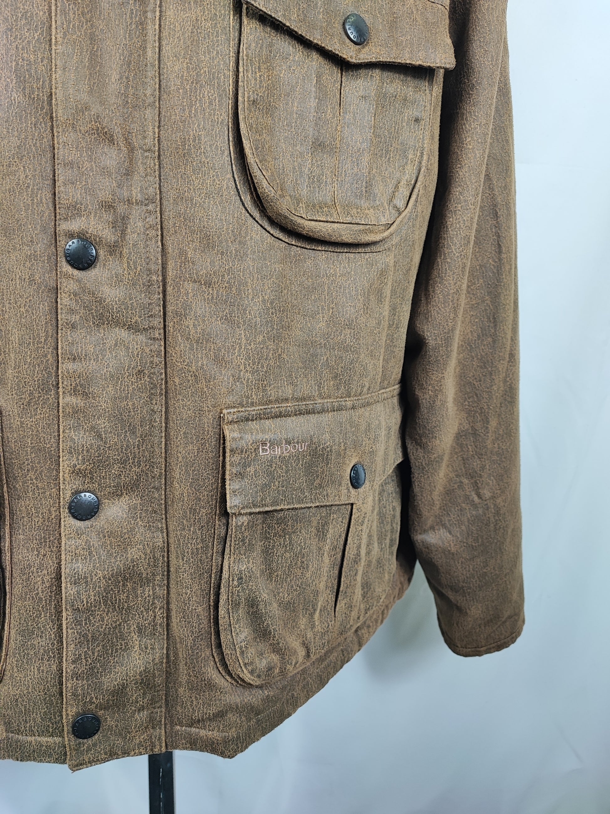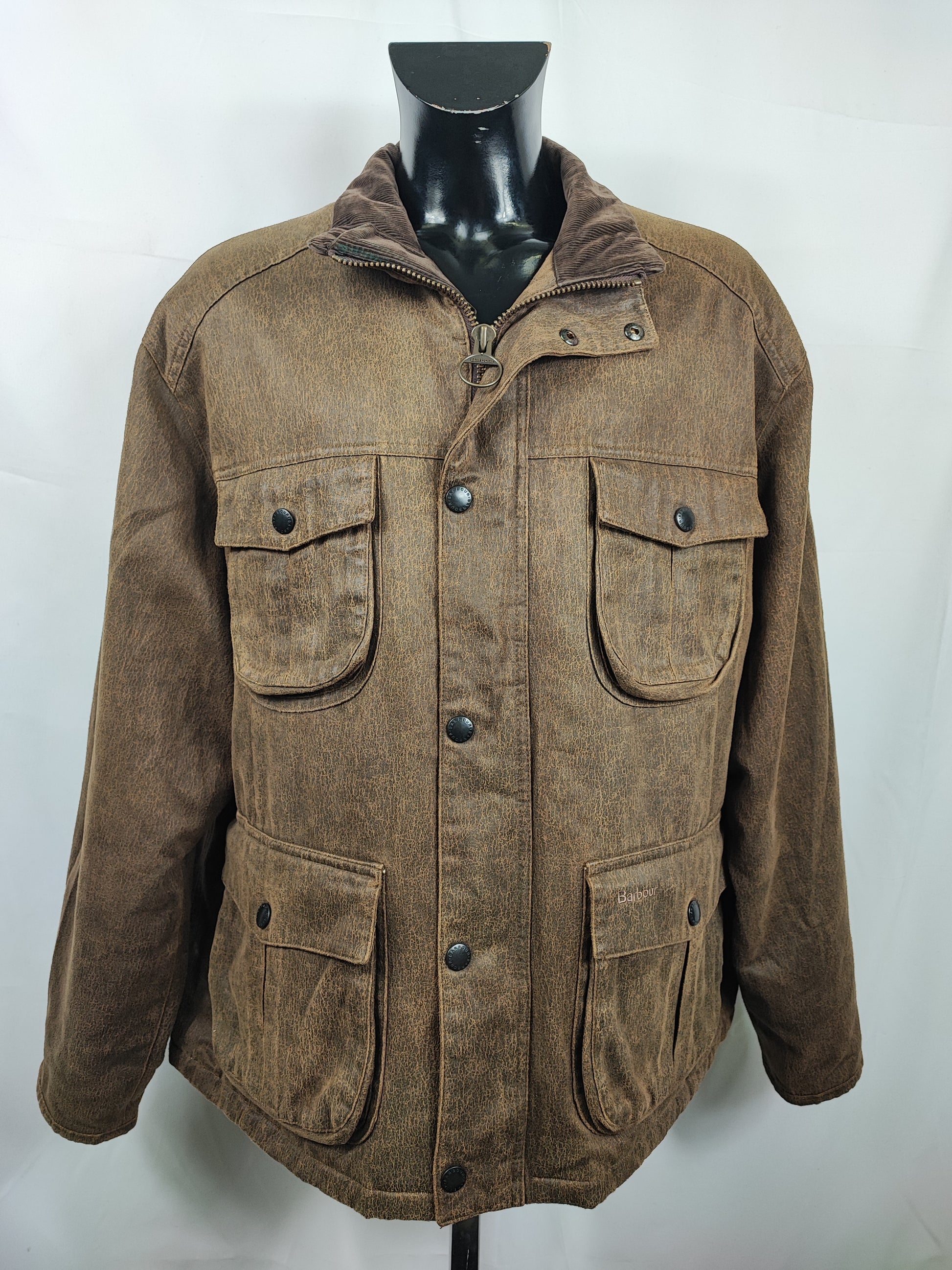 Giacca Barbour Vintage in cotone NON Cerato modello Weather Worked Utility di colore marrone come da foto con quattro tasche frontali , imbottito internamente
