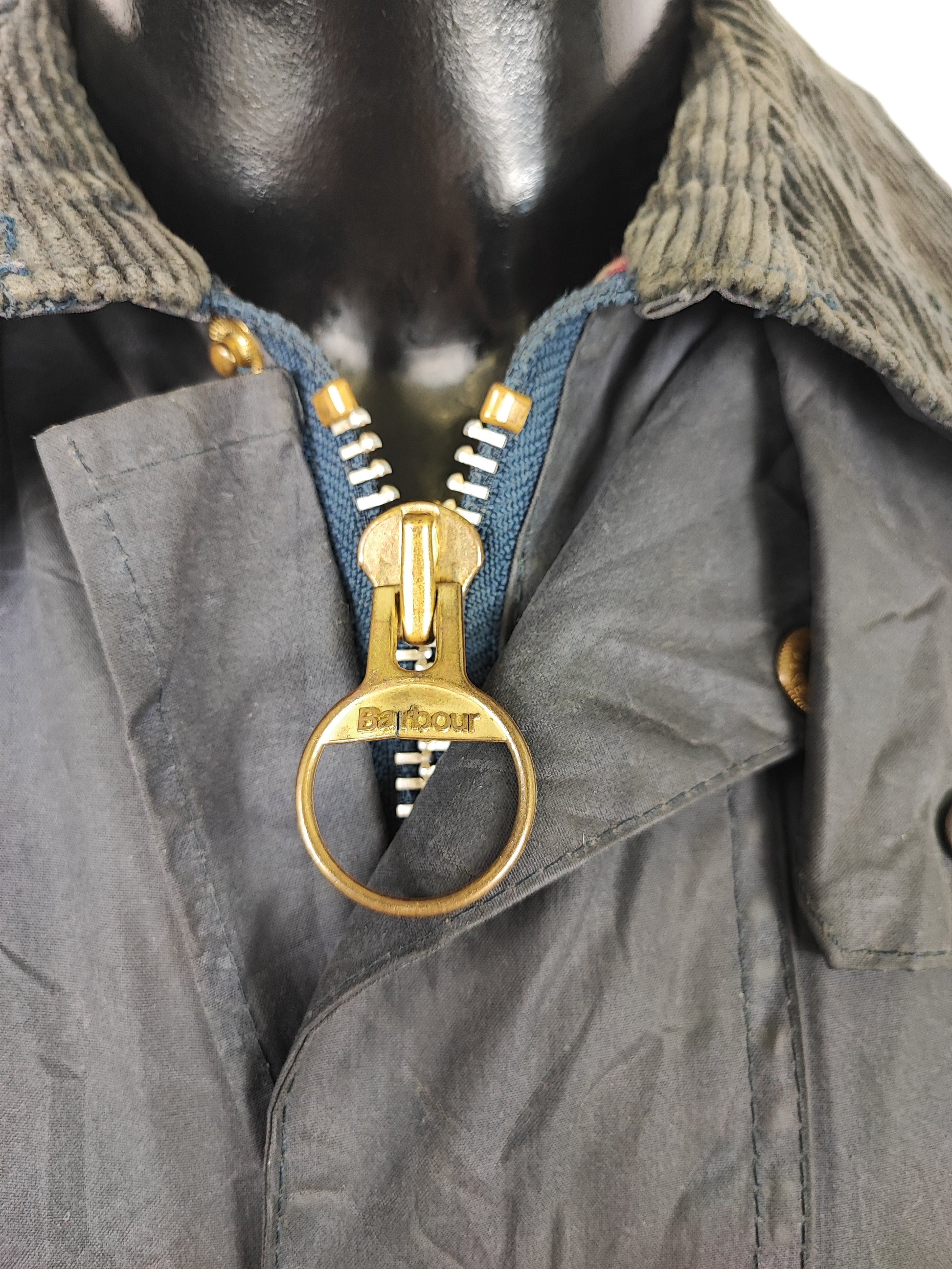 Giacca Barbour vintage modello Border degli anni 90 in cotone cerato di colore blu