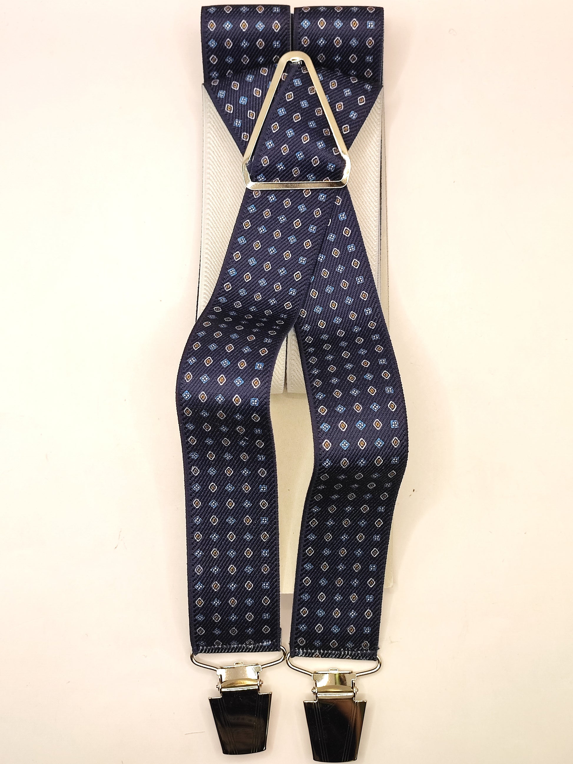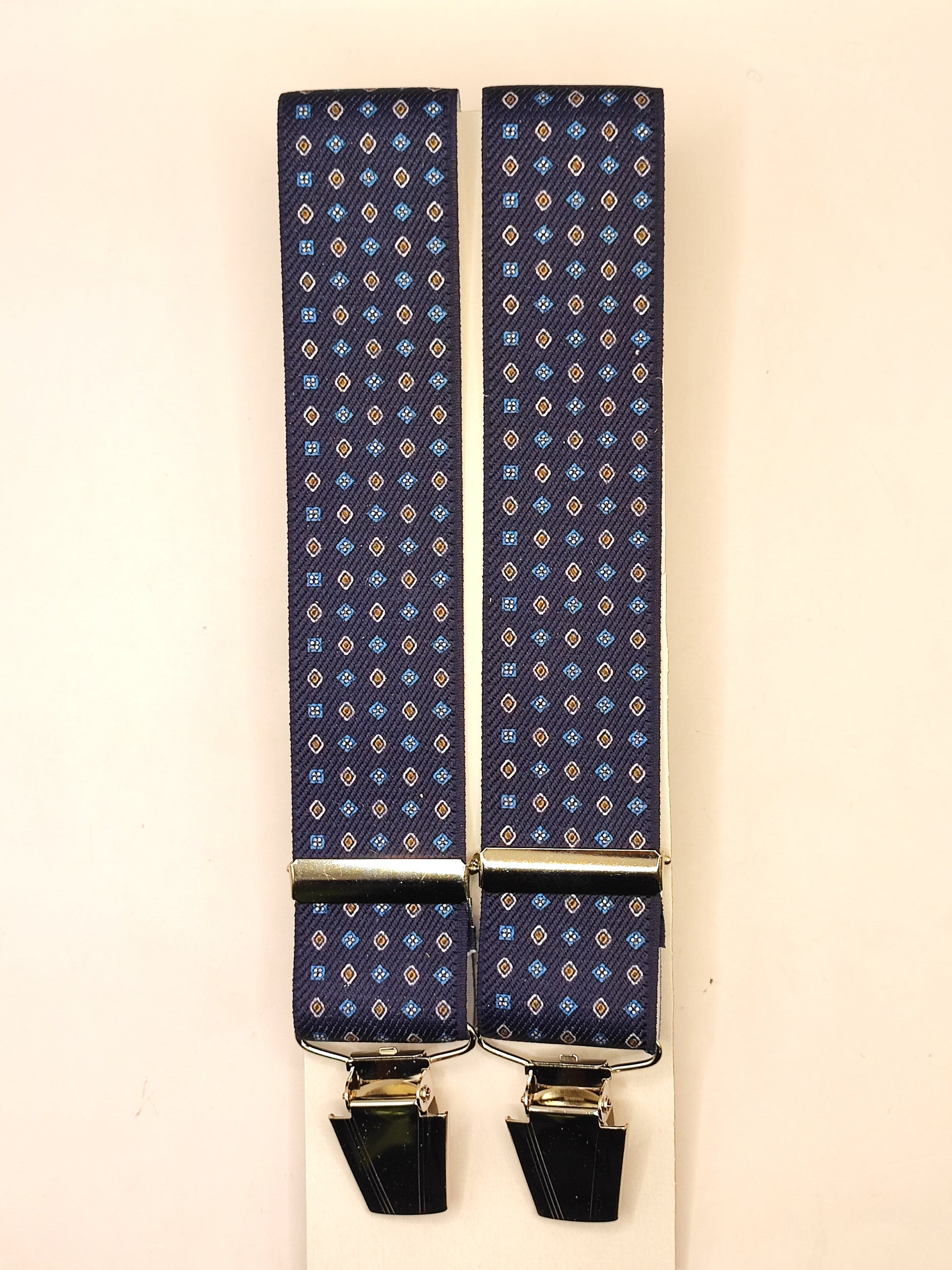 Bretelle da uomo a clip blu notte con fantasia