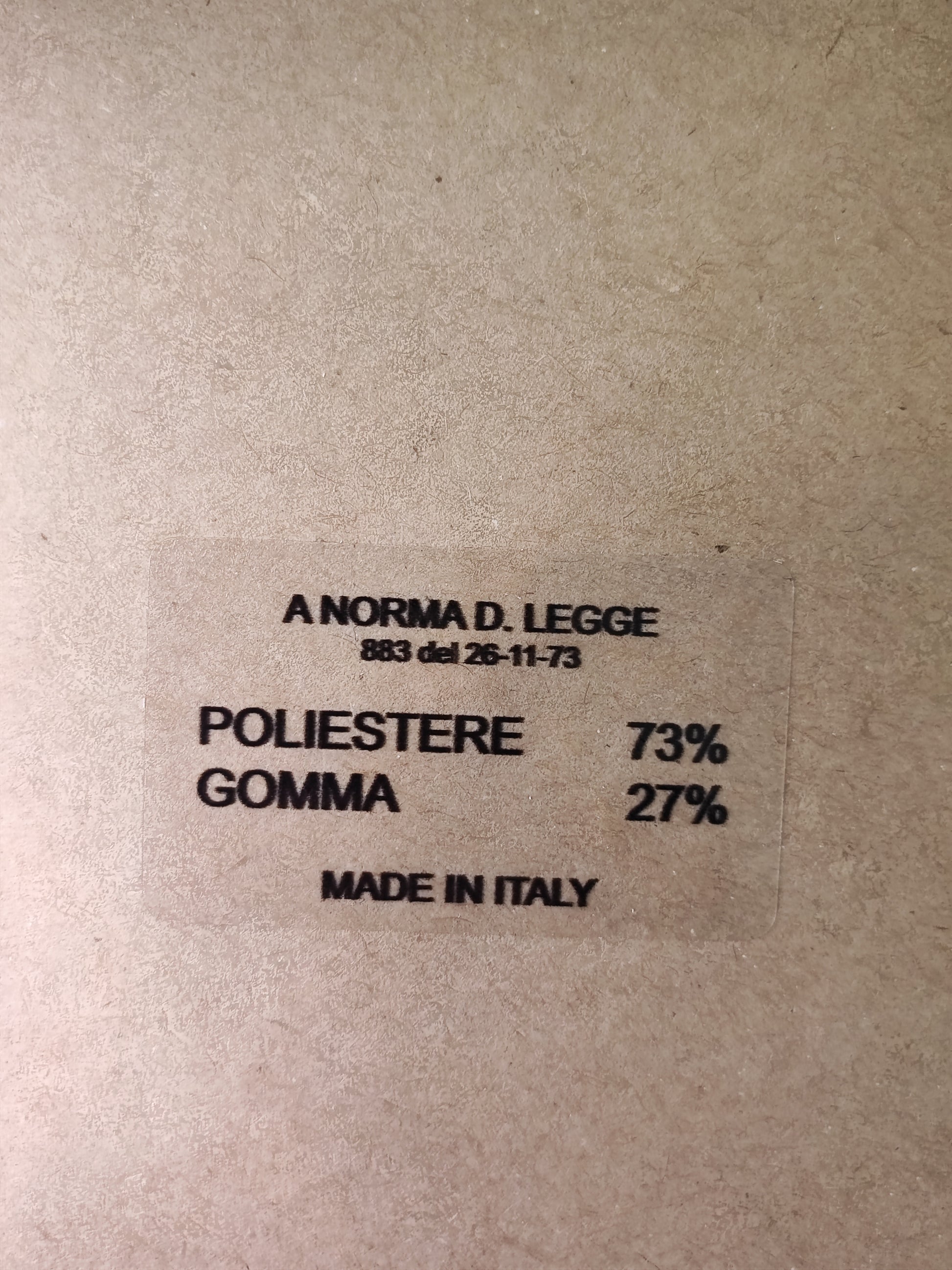 73% poliestere e gomma 27% gomma