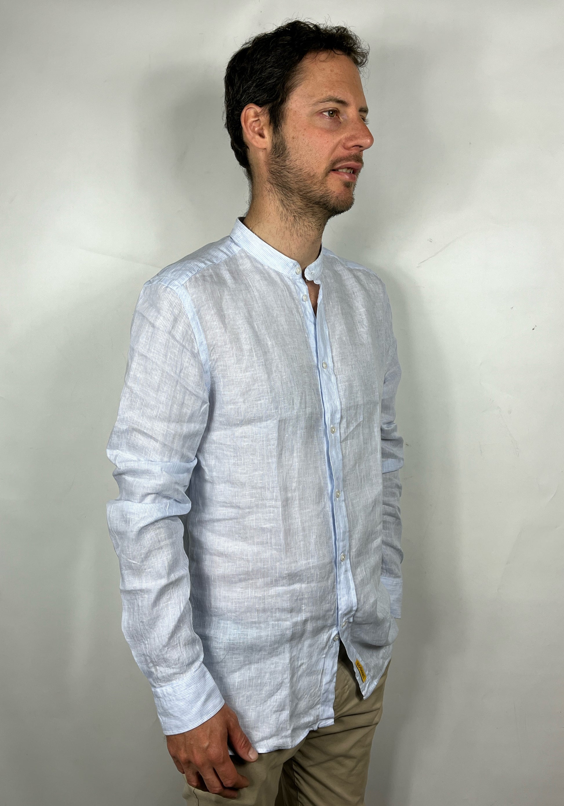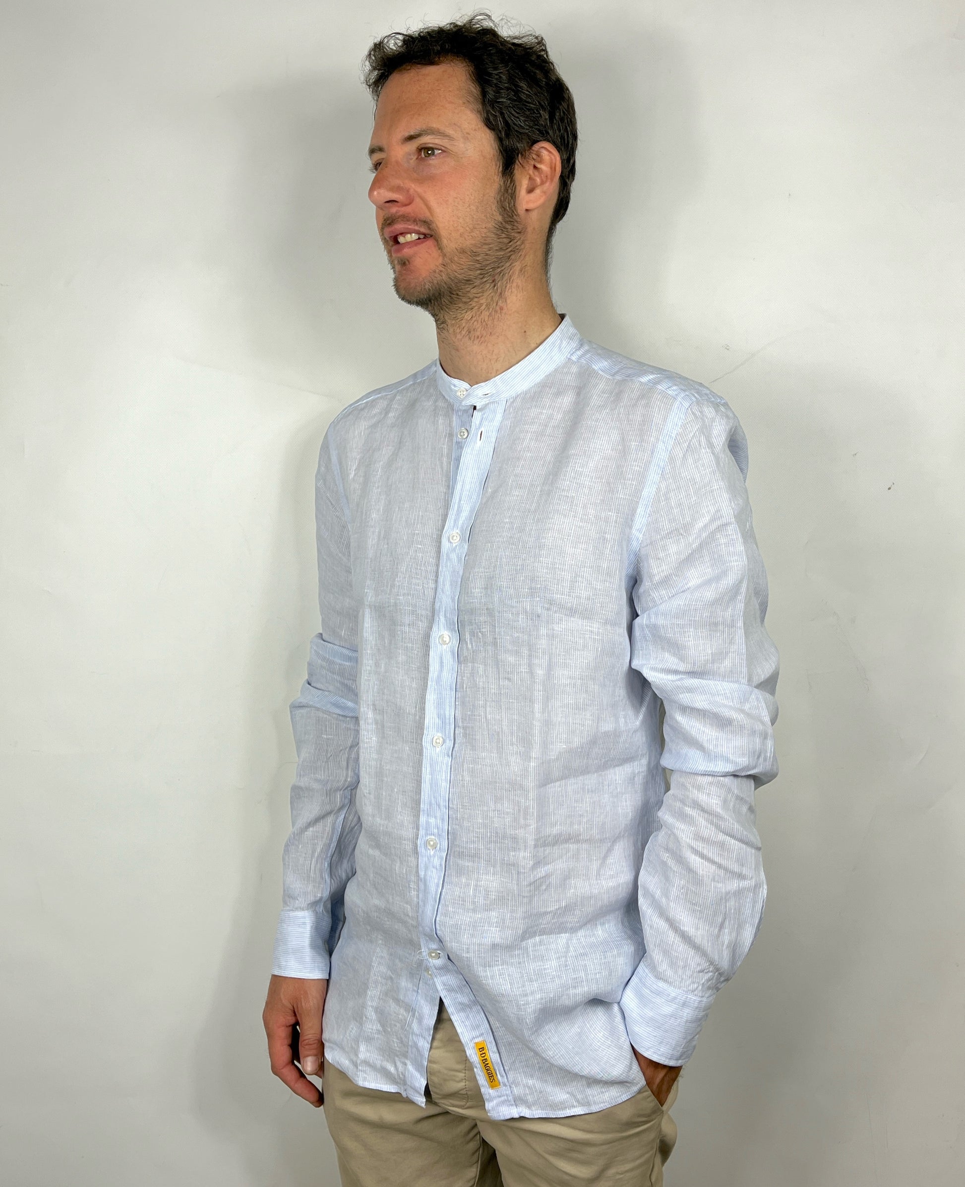 Camicia nuova della marca Bd Baggies slim modello Dexter in lino, collo alla coreana , leggera e fresca.