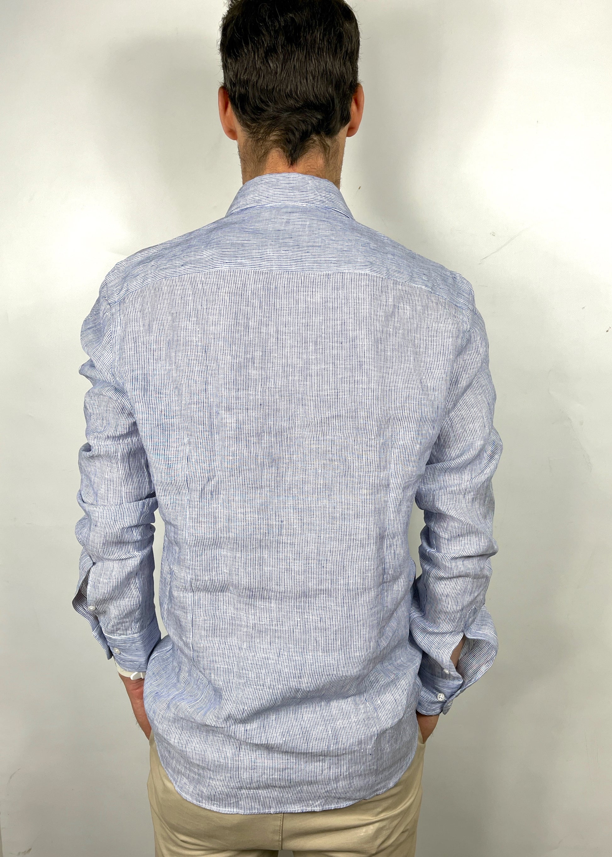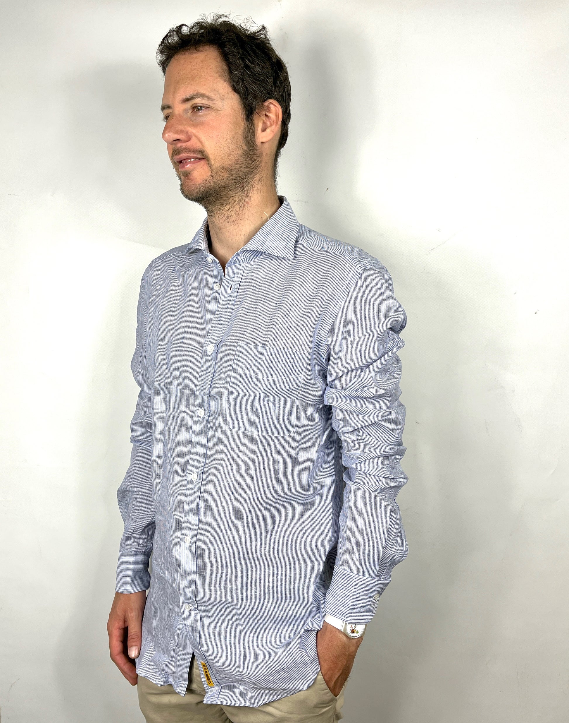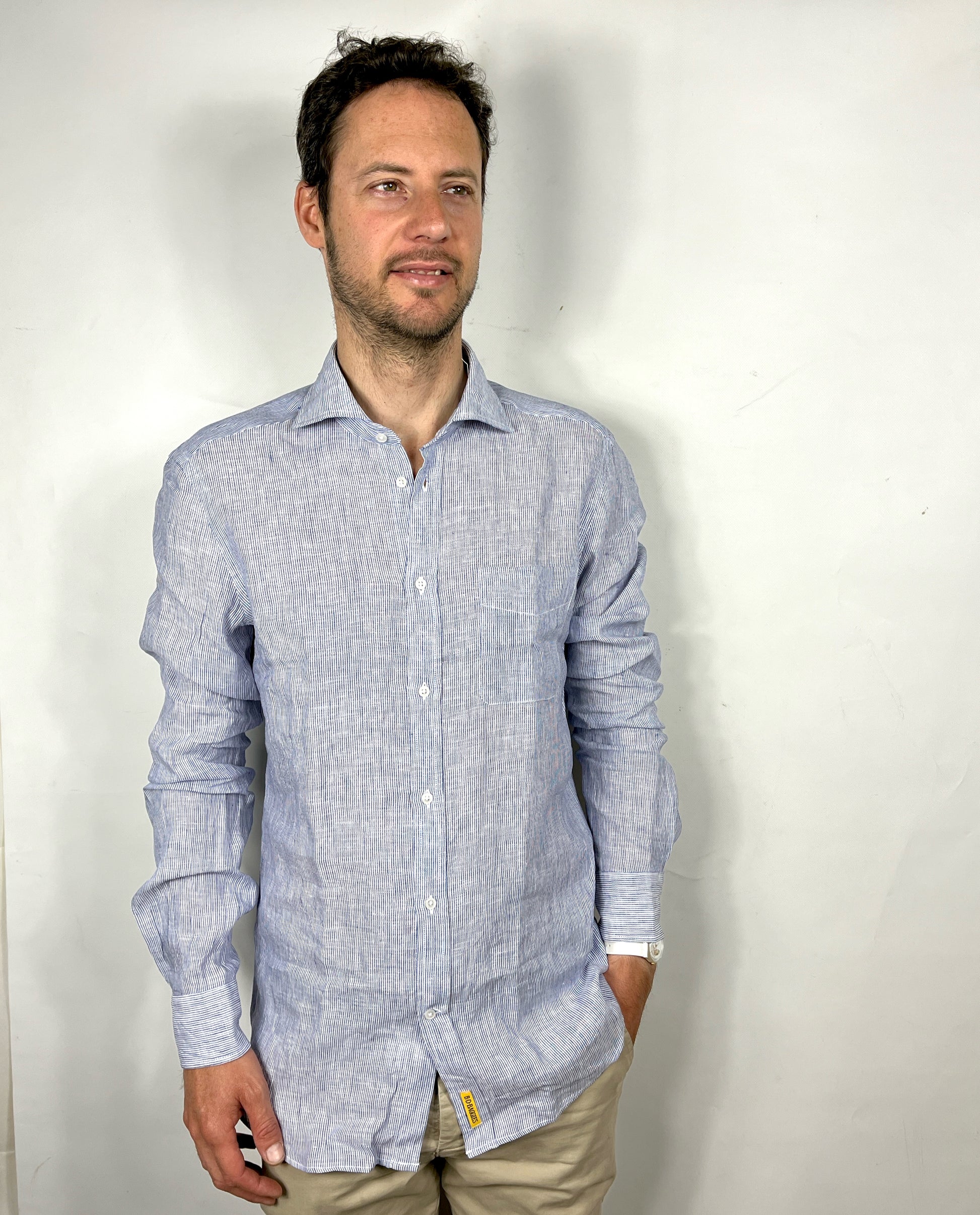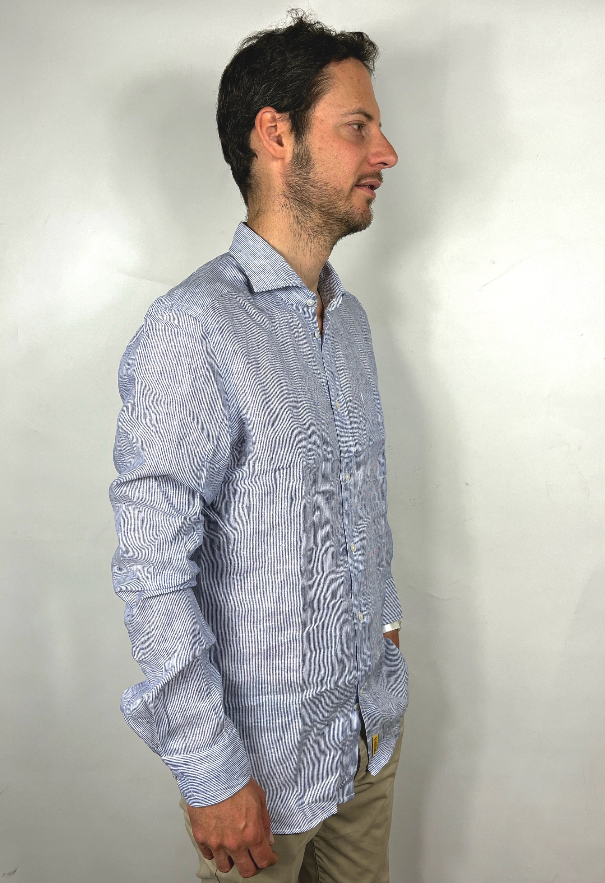 Camicia a righe blu e bianca in lino modello Dexter slim fit by B.D. BAGGIES