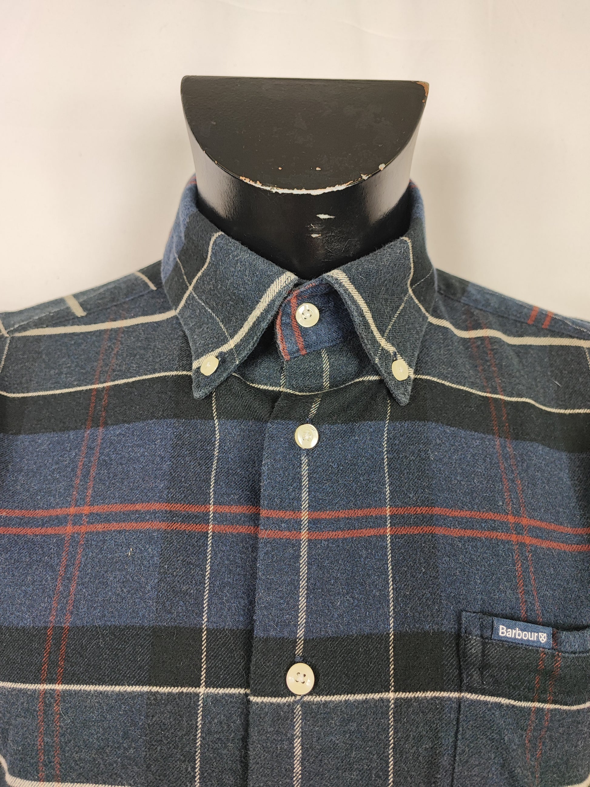 Camicia Barbour da uomo in caldo cotone blu fantasia tartan taglia Medium