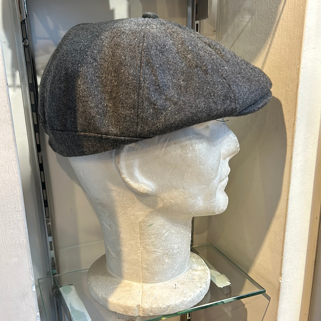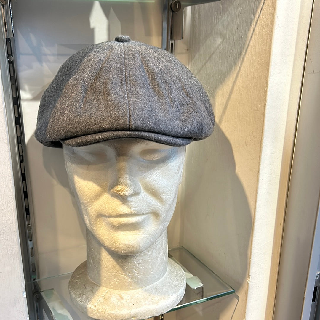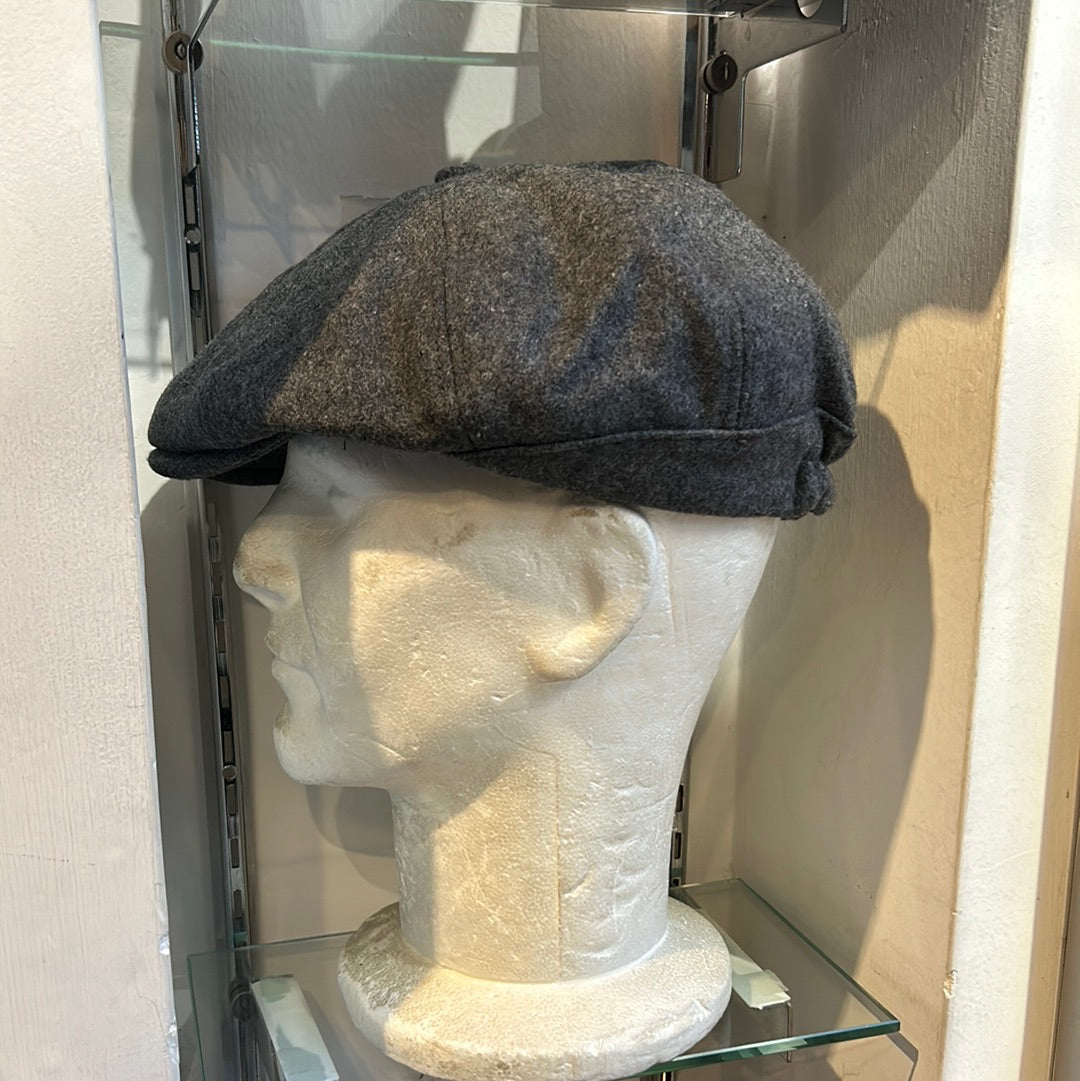 Coppola inglese nuova grigio chiaro in lana a otto spicchi bottone piccolo S/M e L/XL