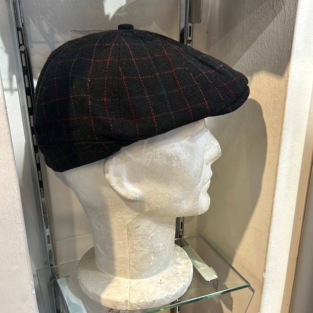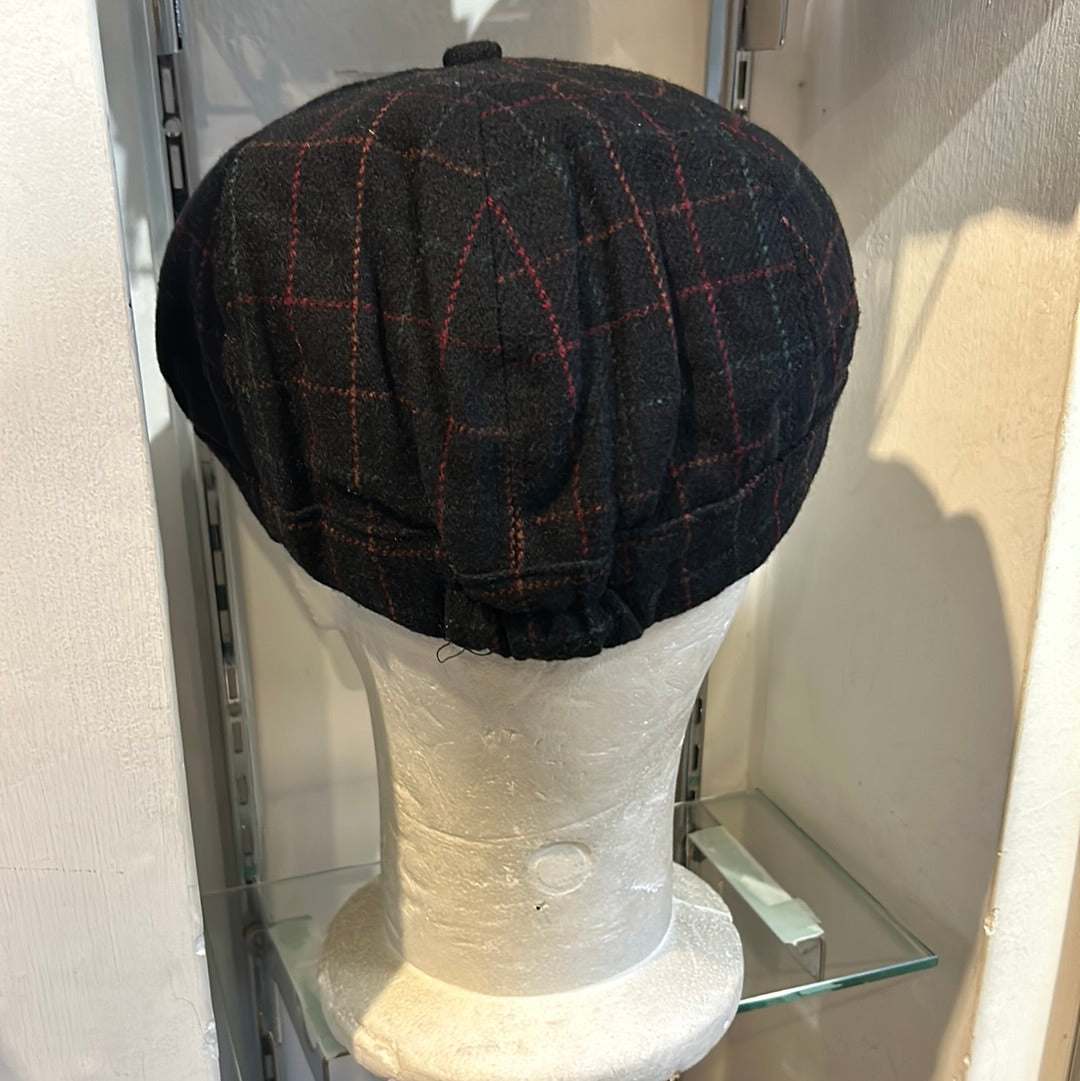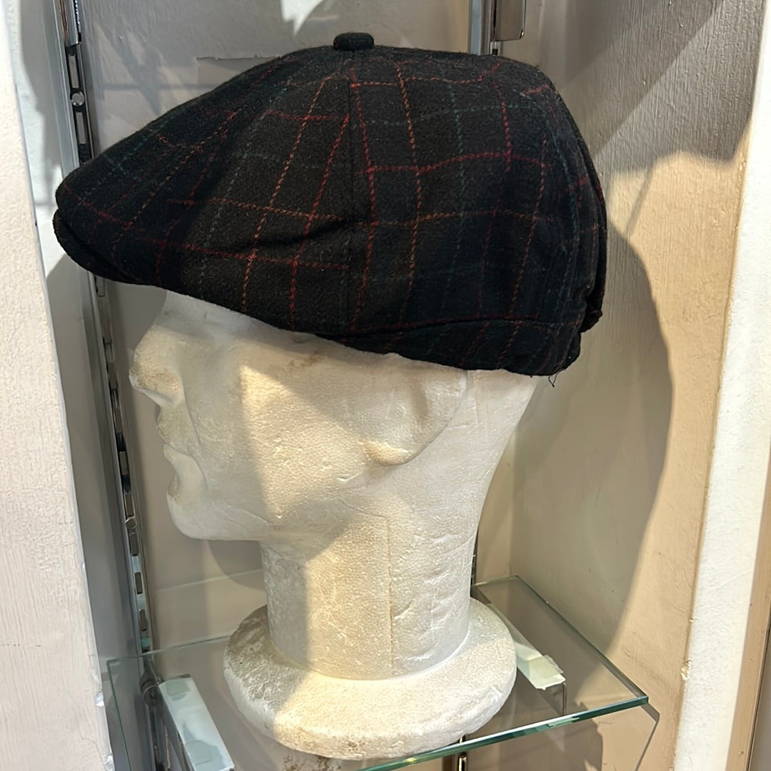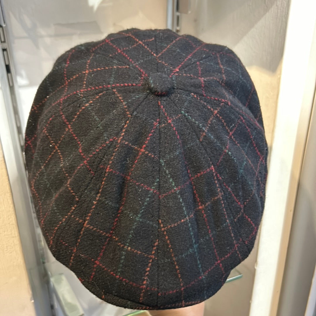 Coppola inglese otto spicchi nuova di colore nero in lana a fantasia S/M e L/XL