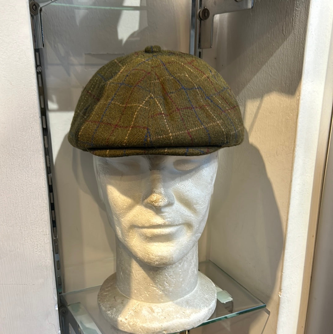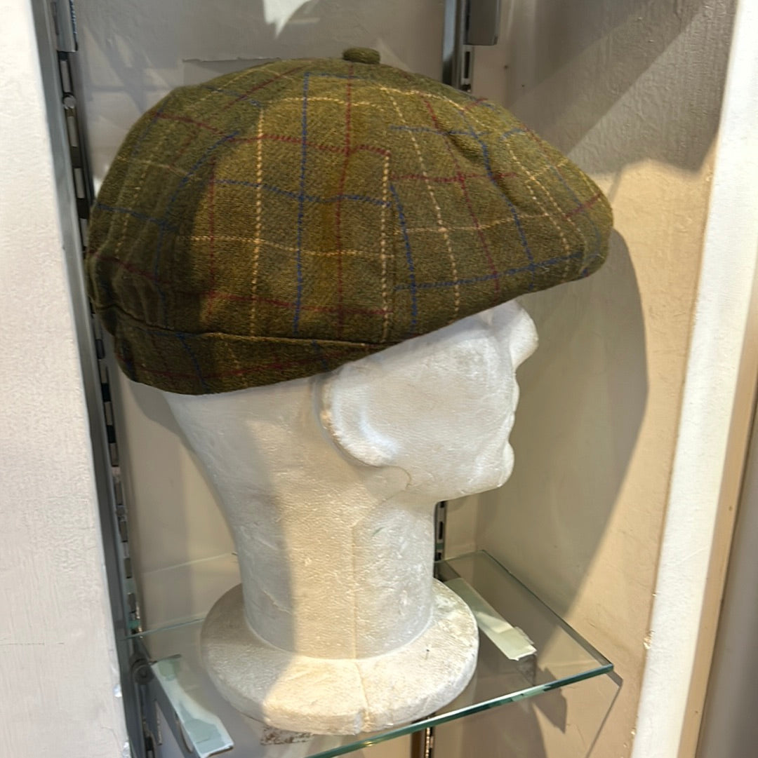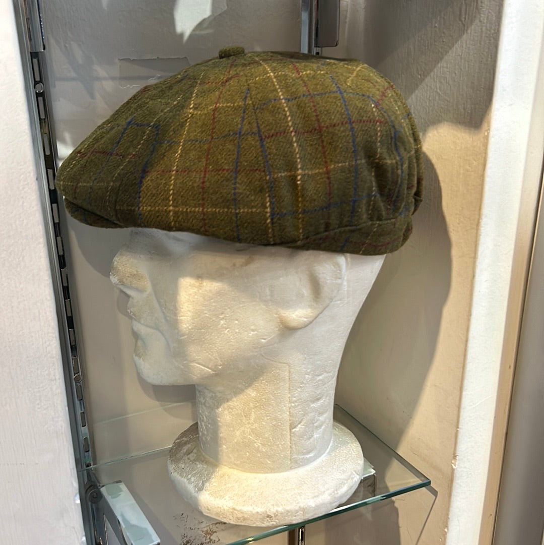 Coppola inglese nuova verde fantasia in lana a otto spicchi S/M e L/XL
