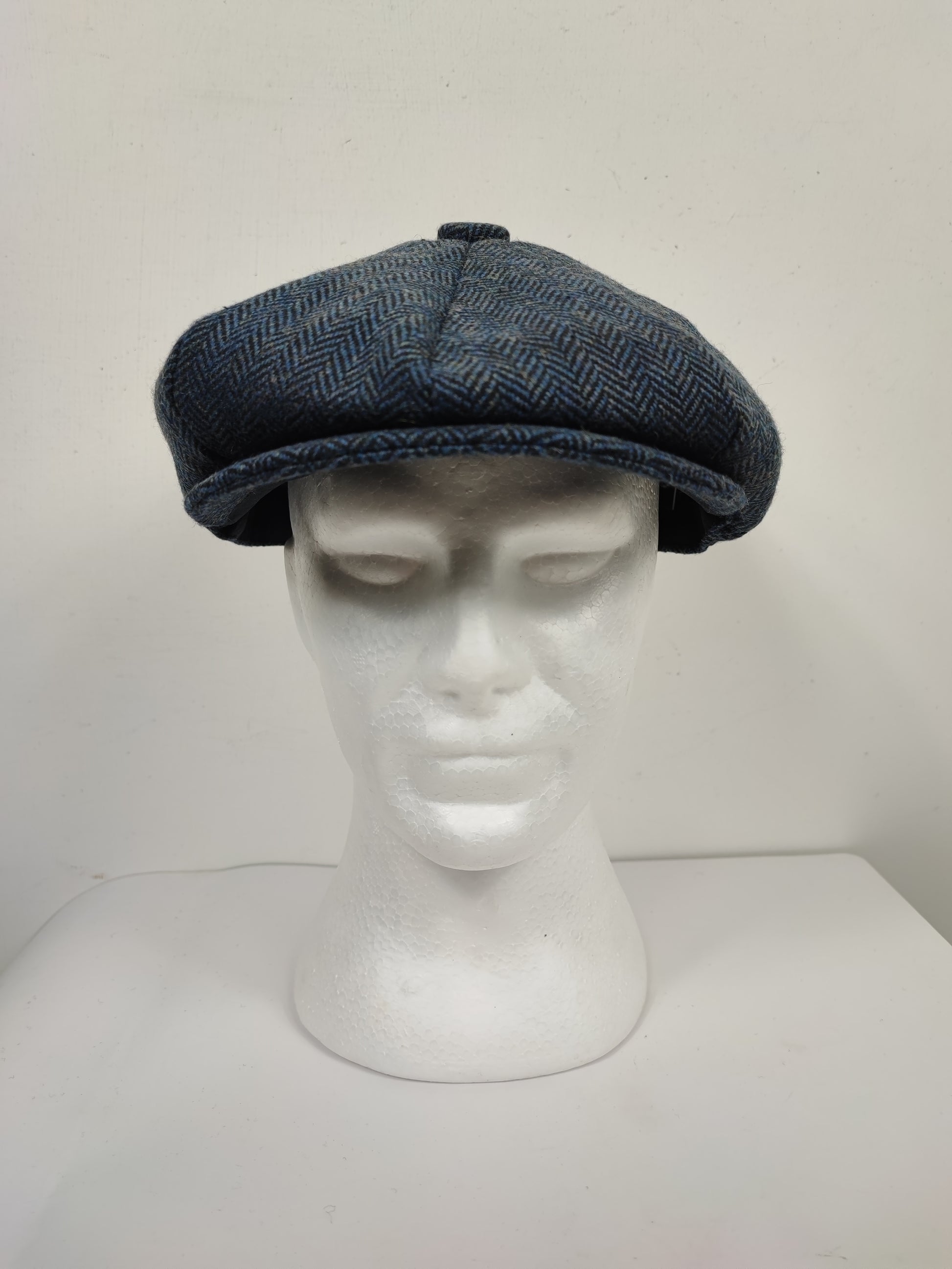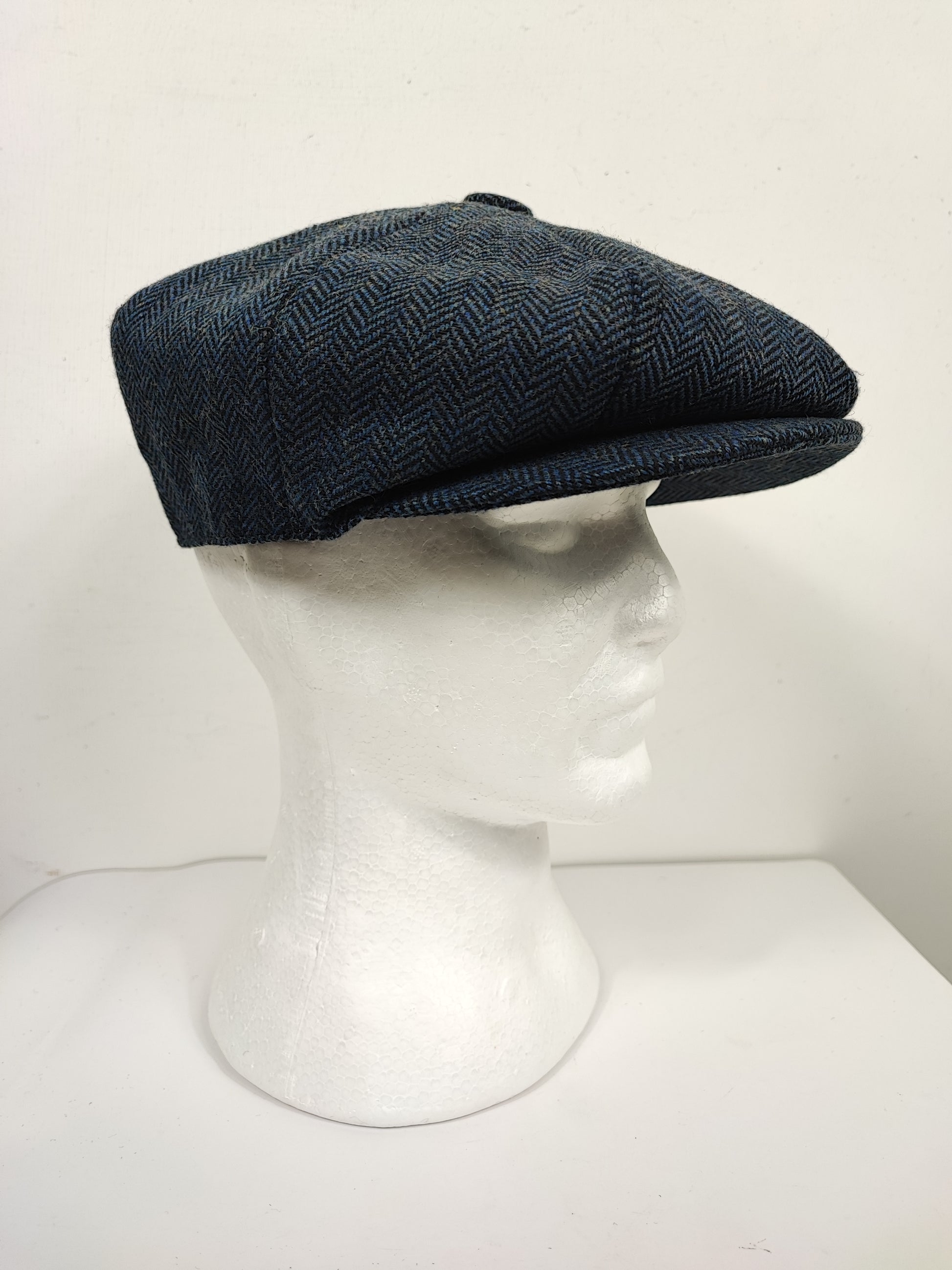Coppola nuova in lana blu a spina di pesce inglese a otto spicchi stile Peaky Blinders