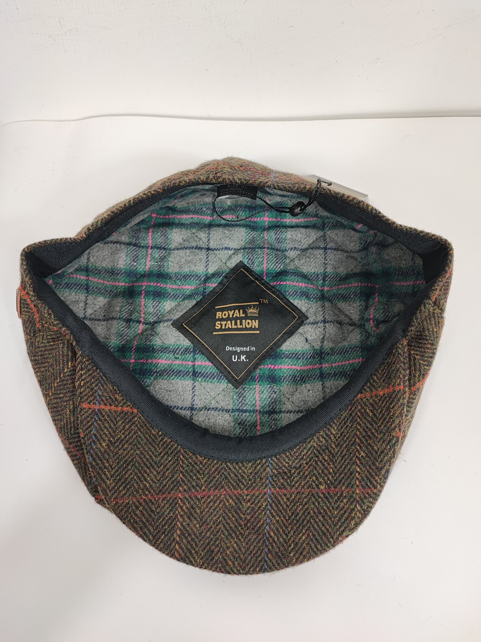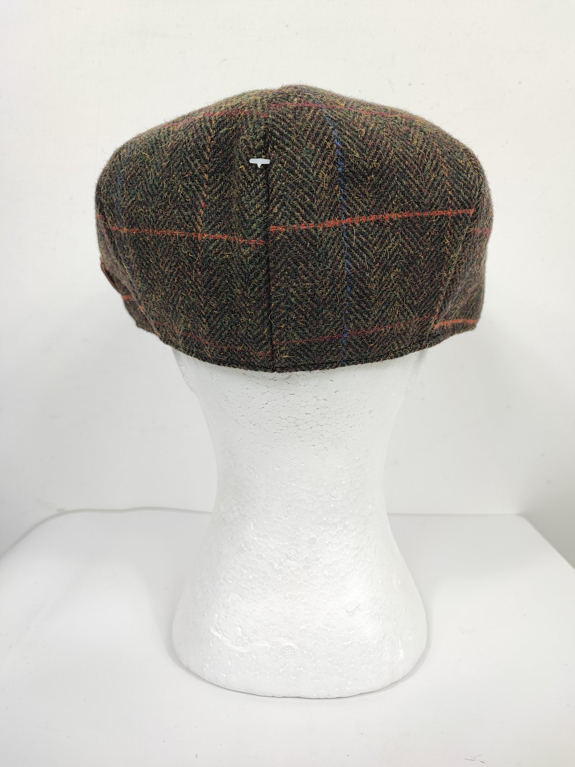 Coppola inglese Newsboy Cap nuova in lana a spina di pesce marrone scuro con dettagli colorati come da foto stile Peaky Blinders a otto spicchi