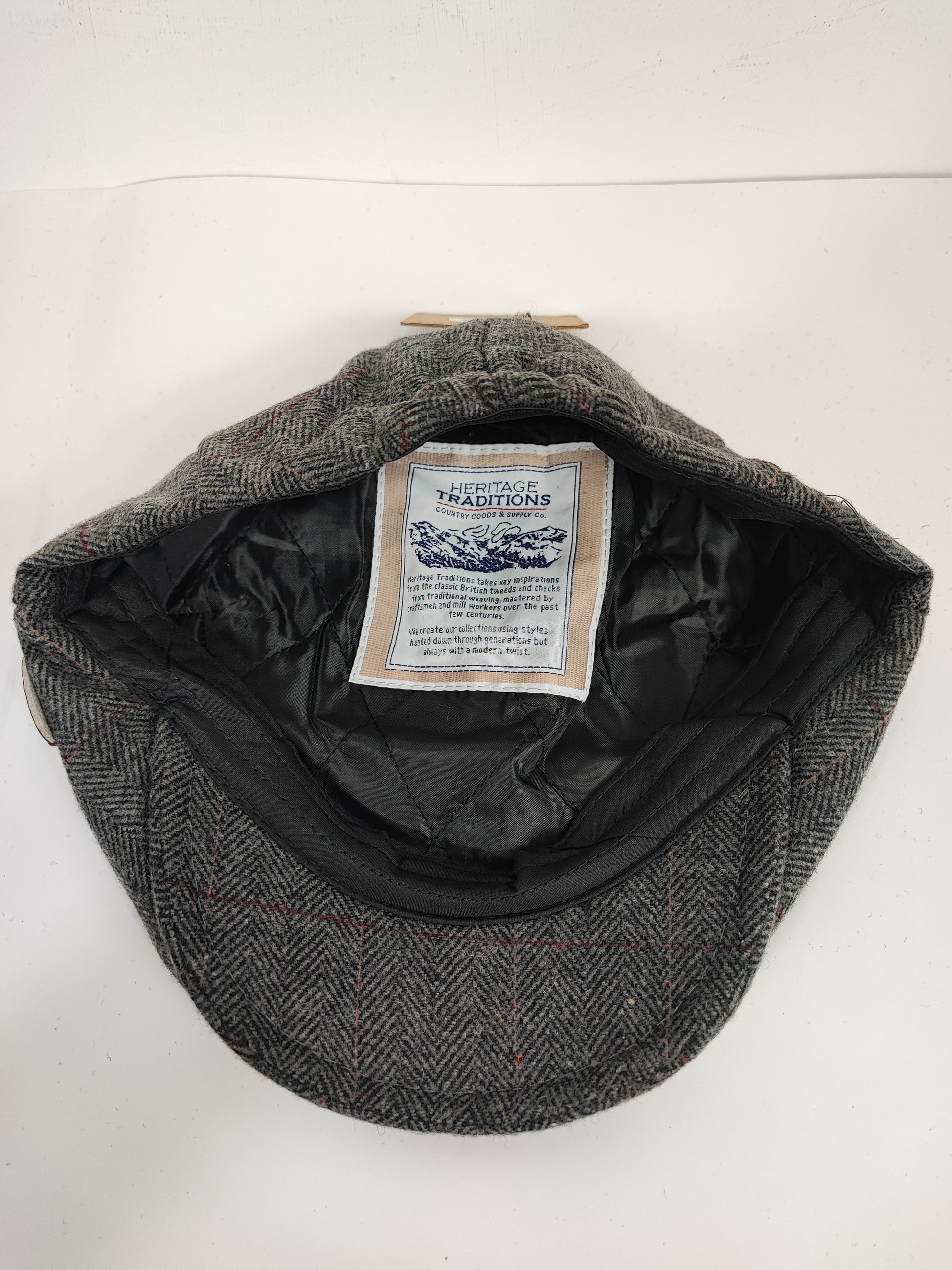 Coppola inglese nuova in lana in tweed grigio con trama spigata come da foto