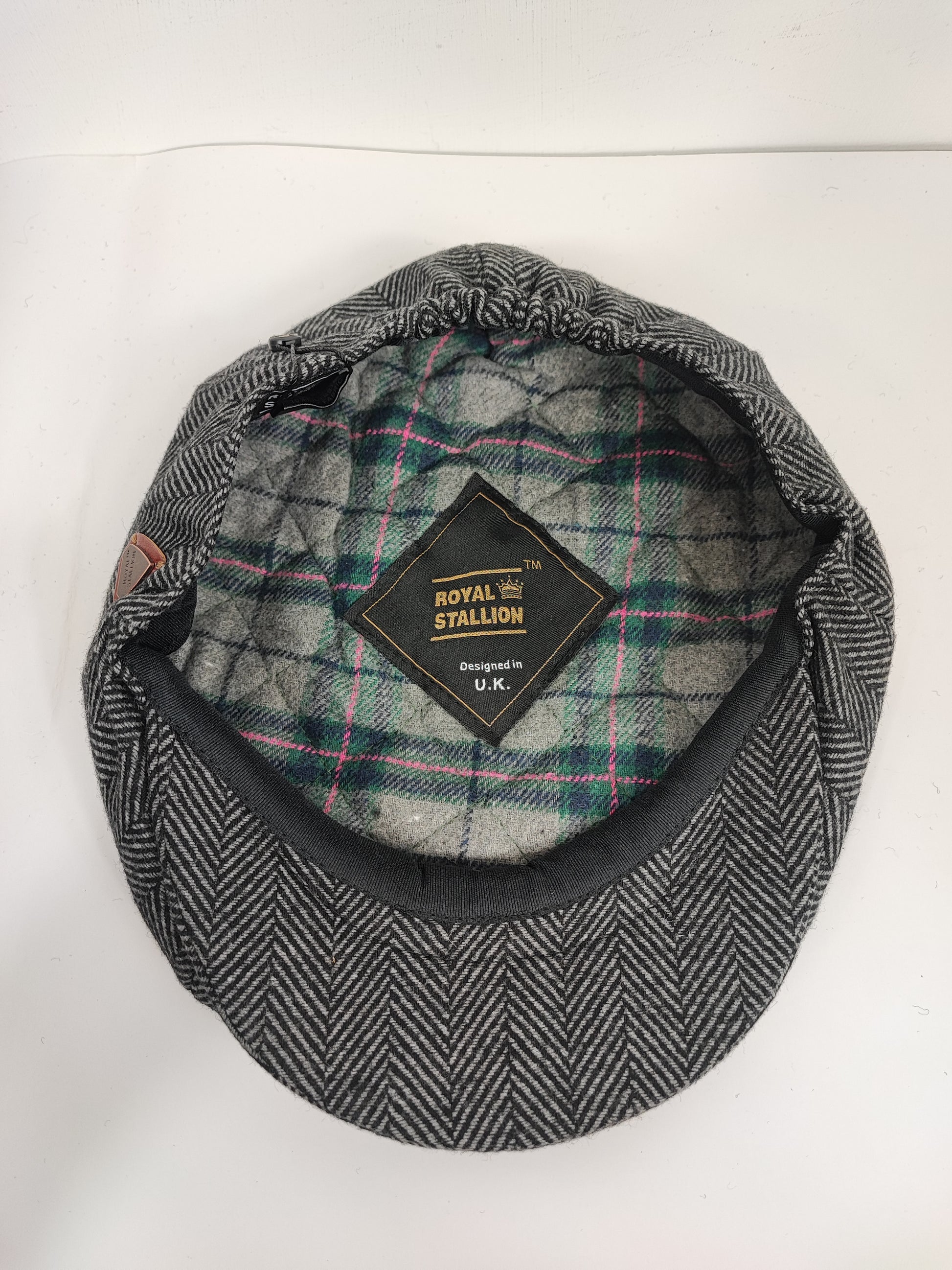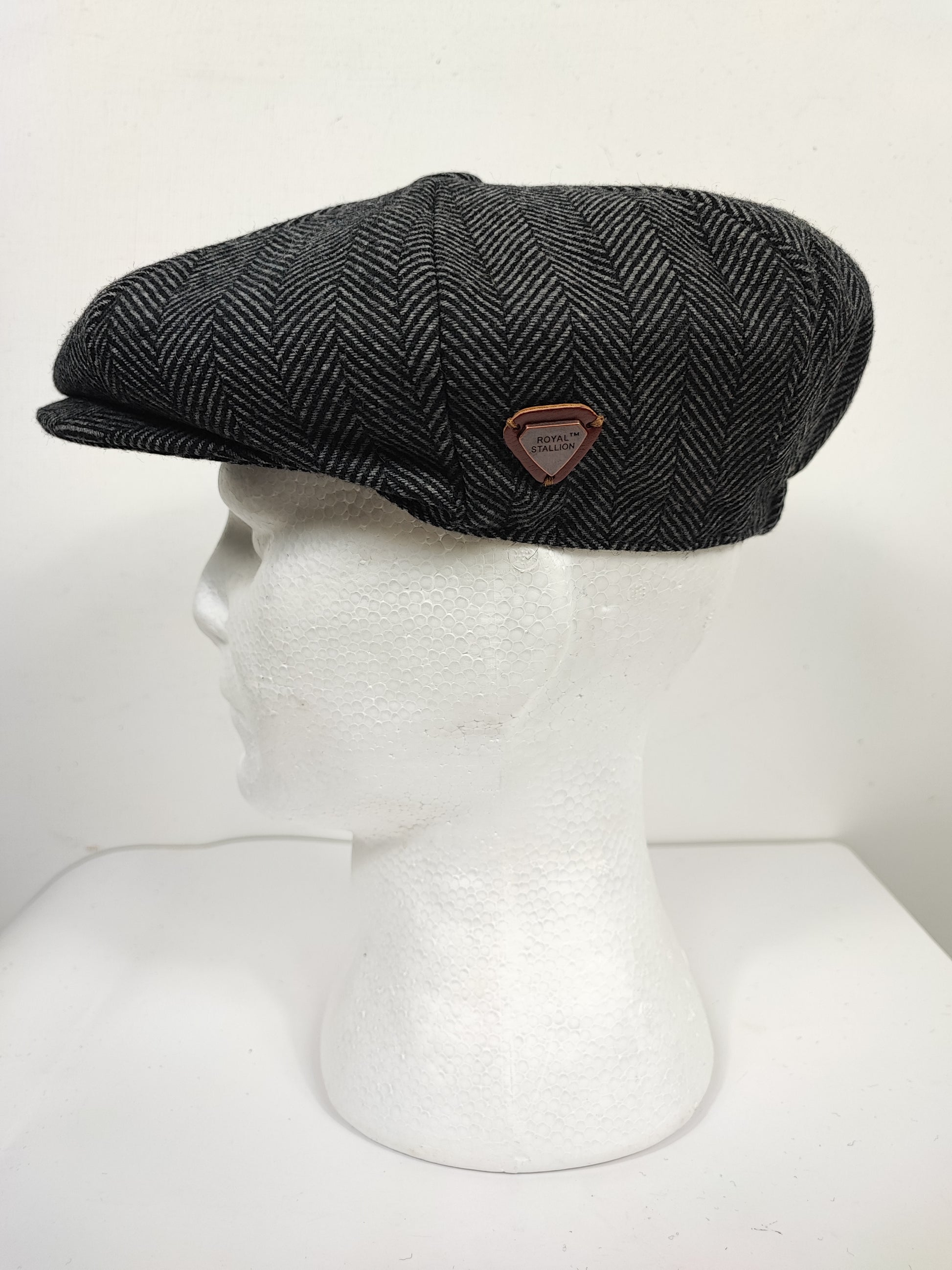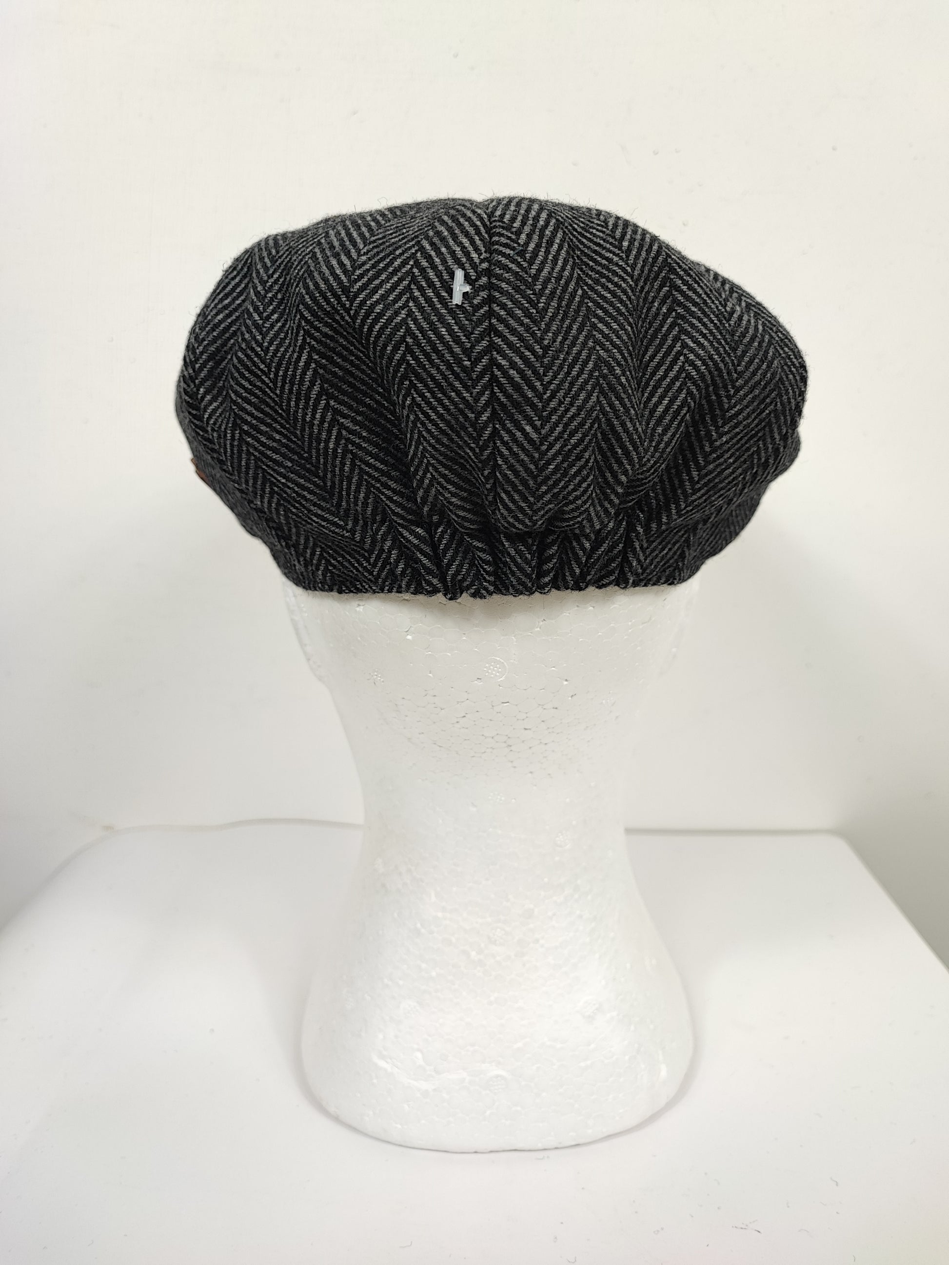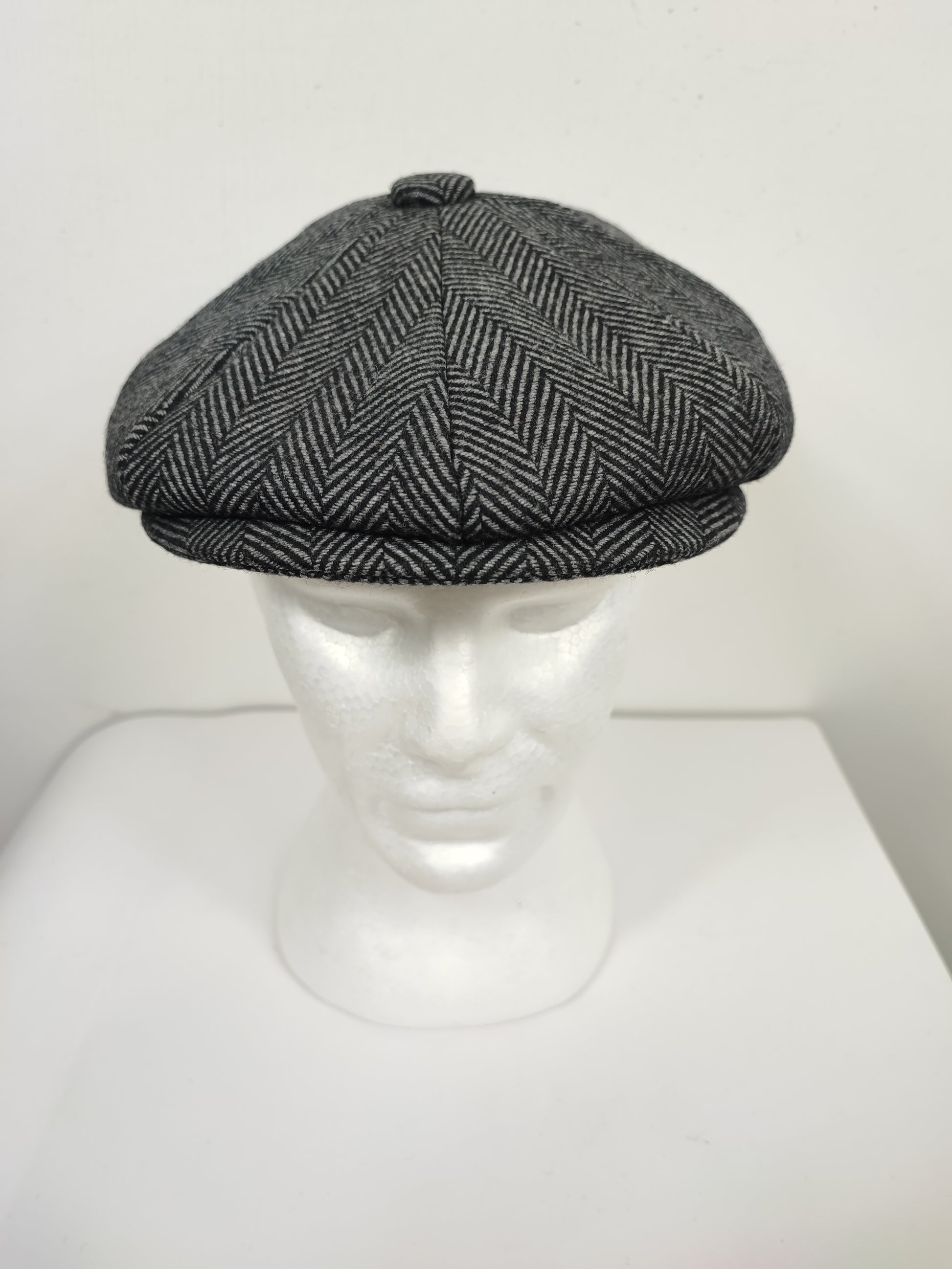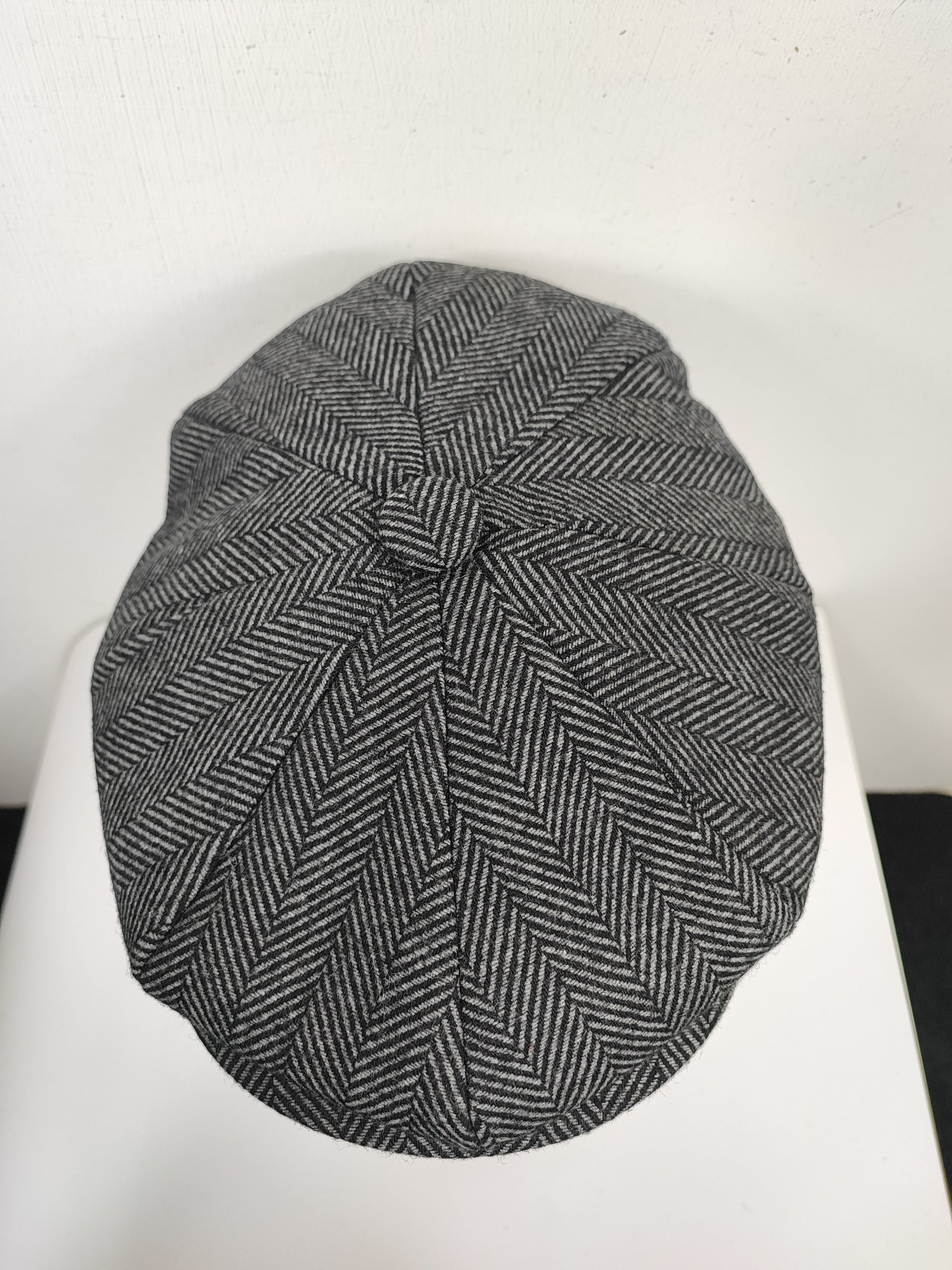 Coppola inglese Newsboy Cap nuova in lana a spina di pesce di colore grigio e nero come da foto stile Peaky Blinders a otto spicchi