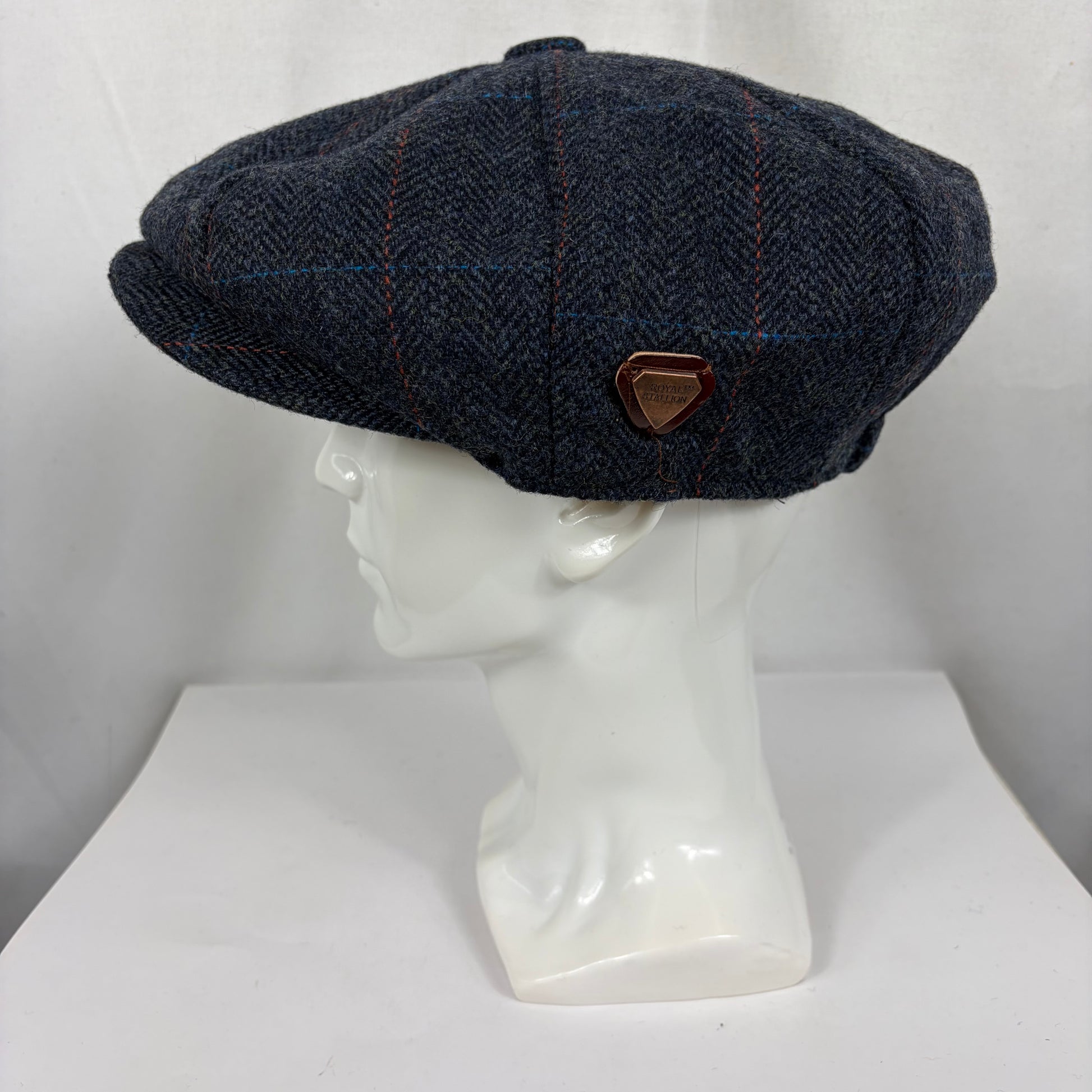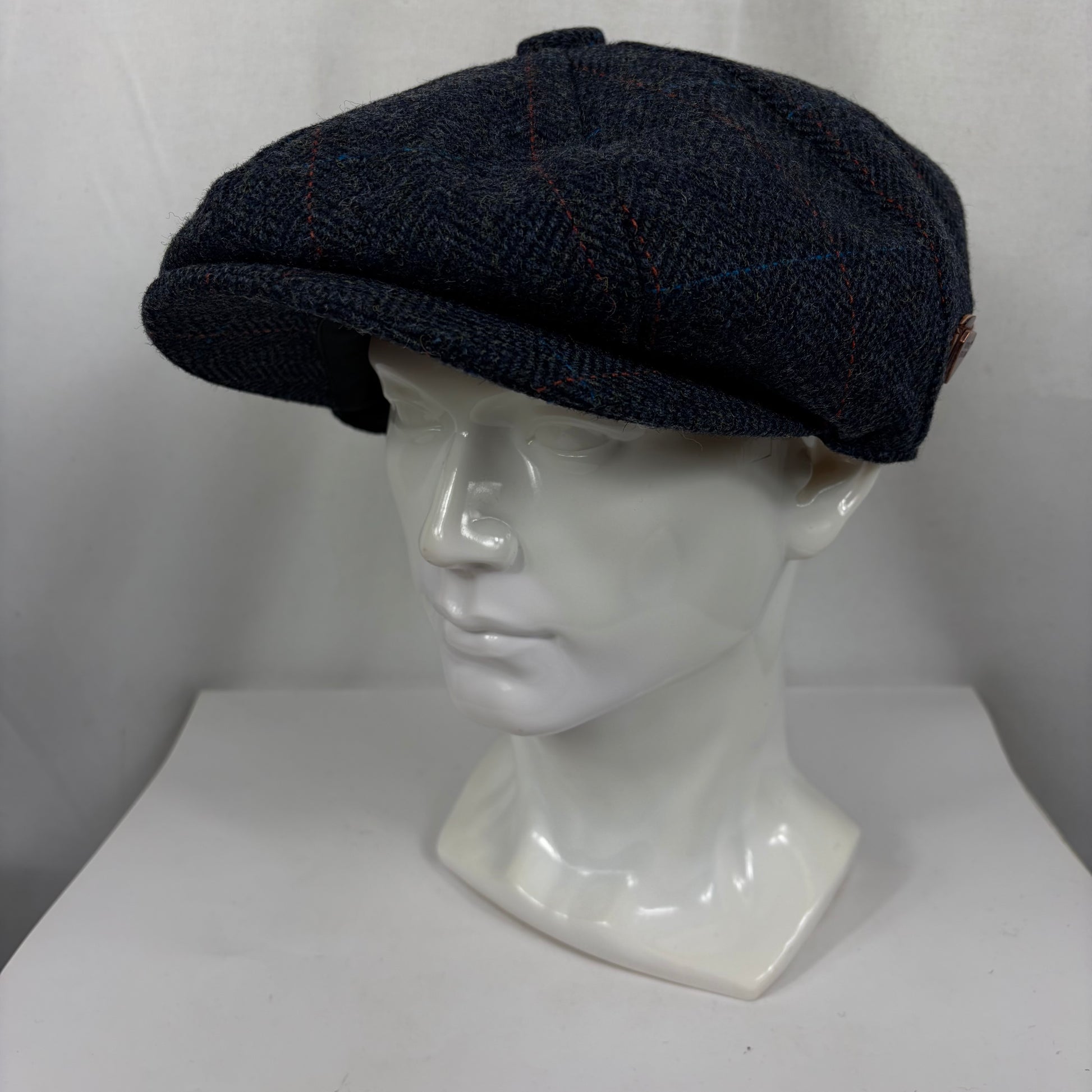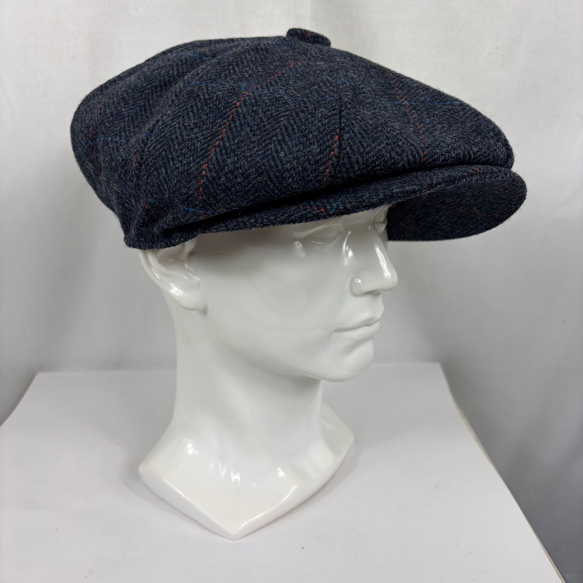 Coppola nuova inglese in lana blu in tweed a otto spicchi stile Peaky Blinders