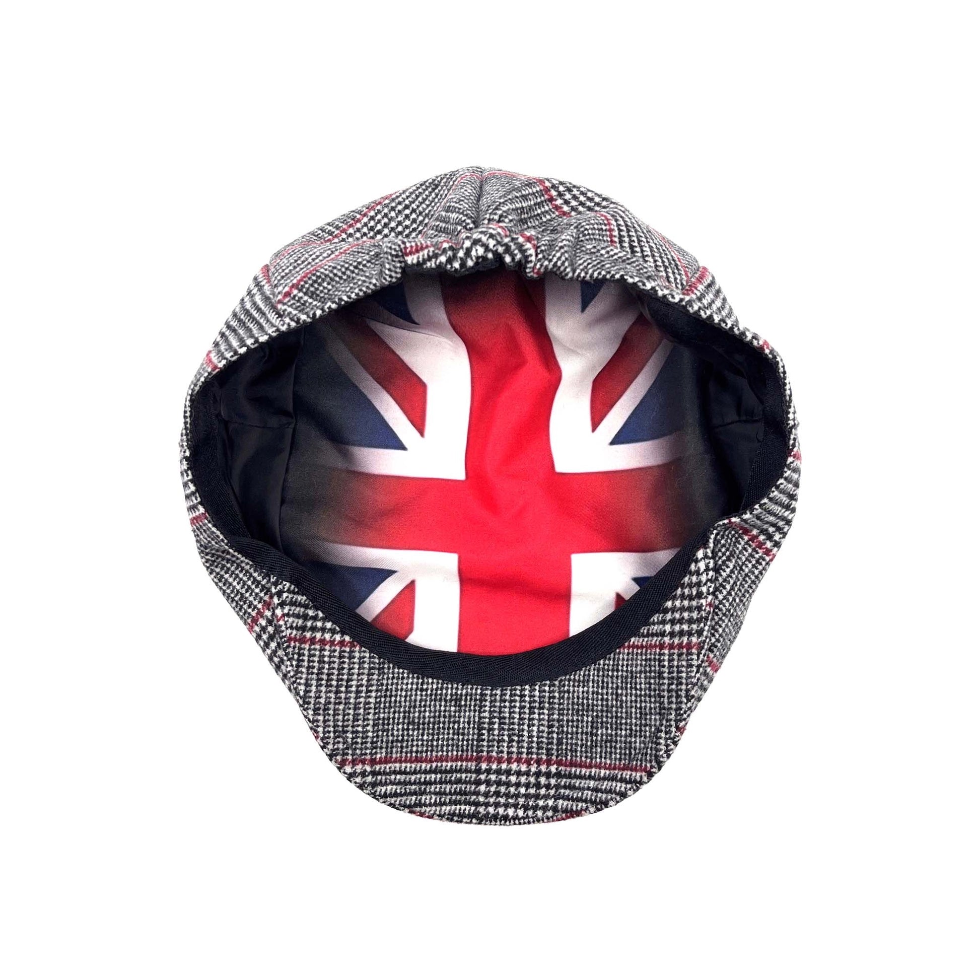 Coppola nuova inglese in lana grigia a fantasia con union jack - New English Grey Wool Flat cap One size