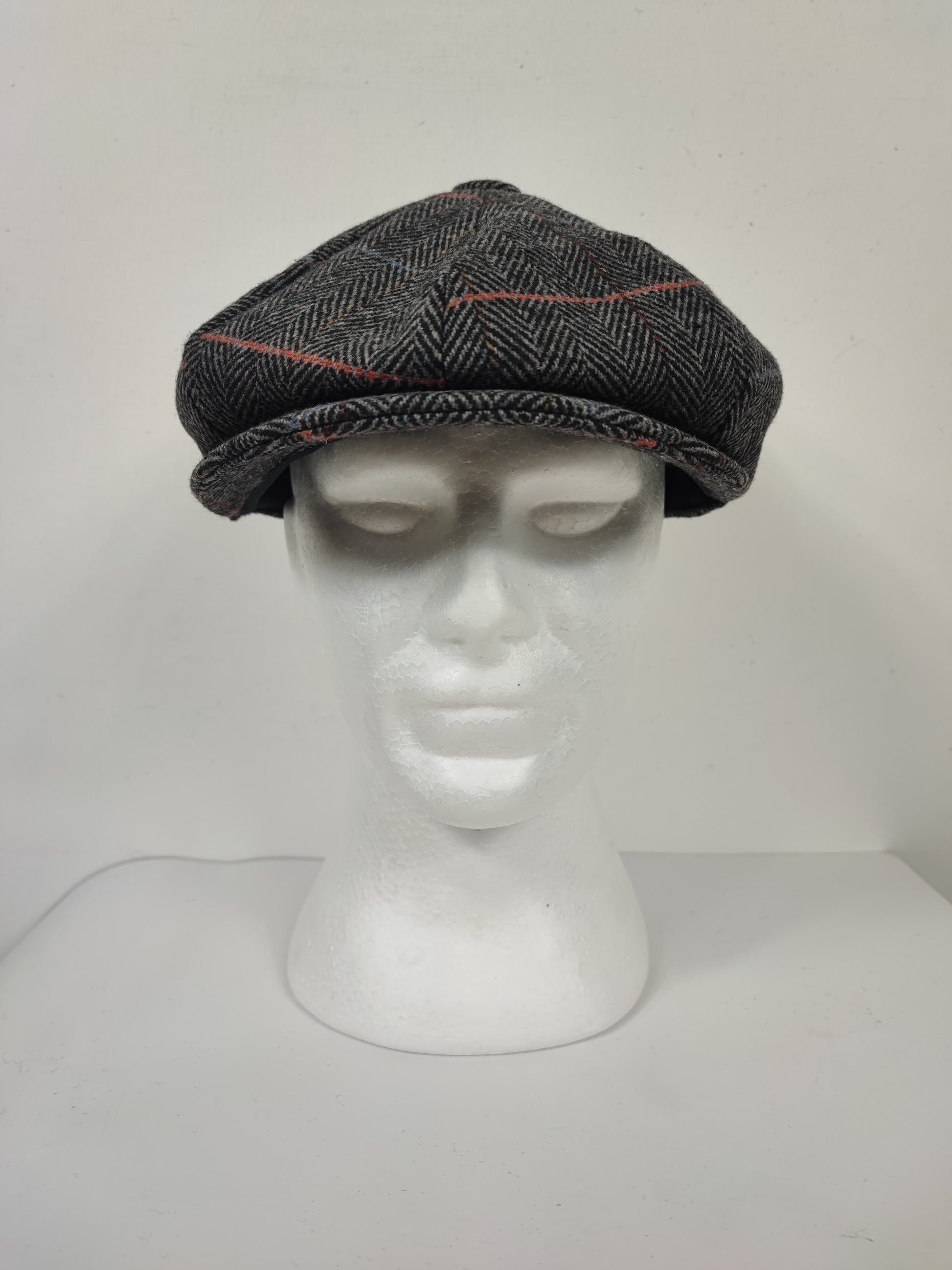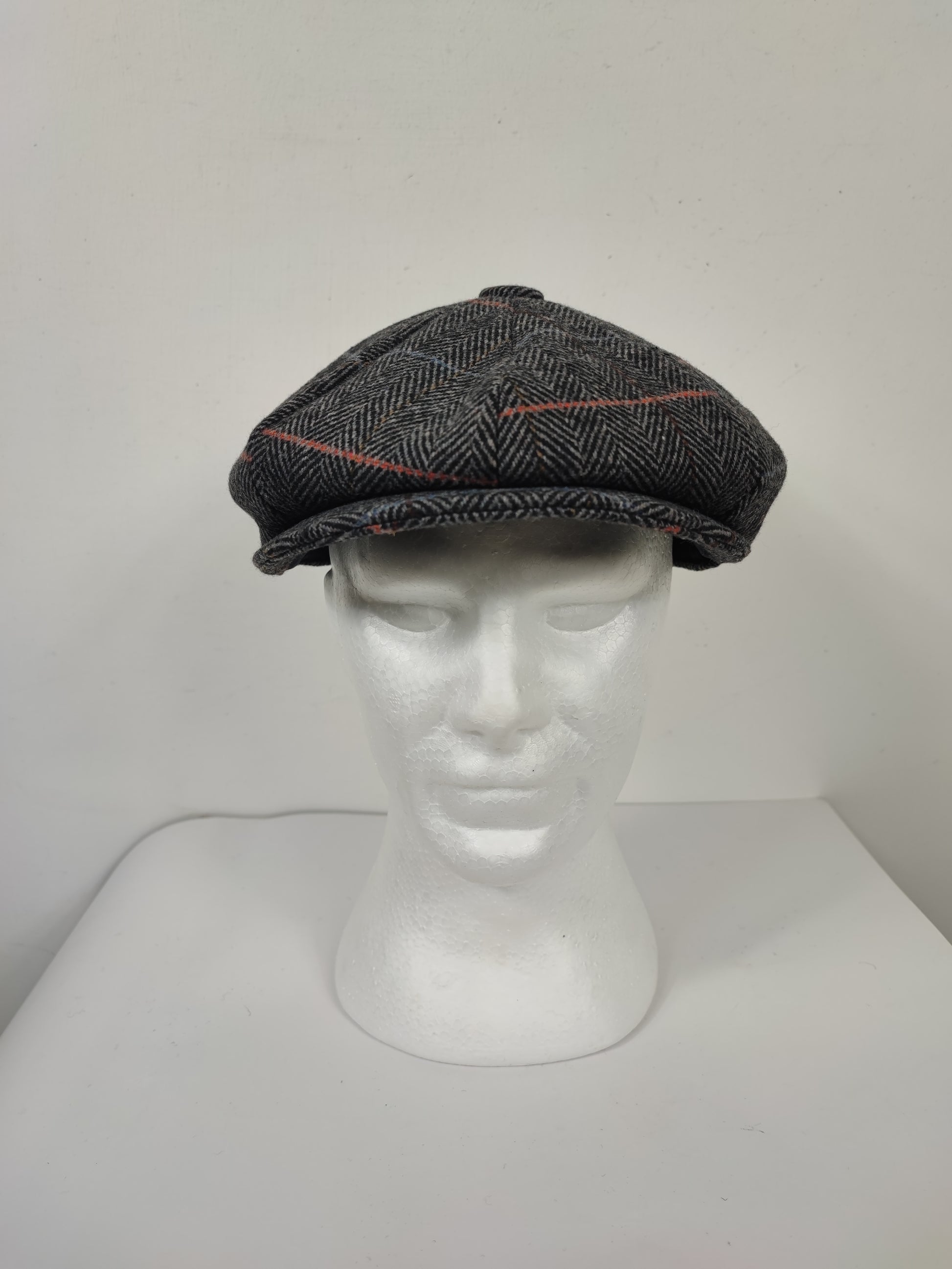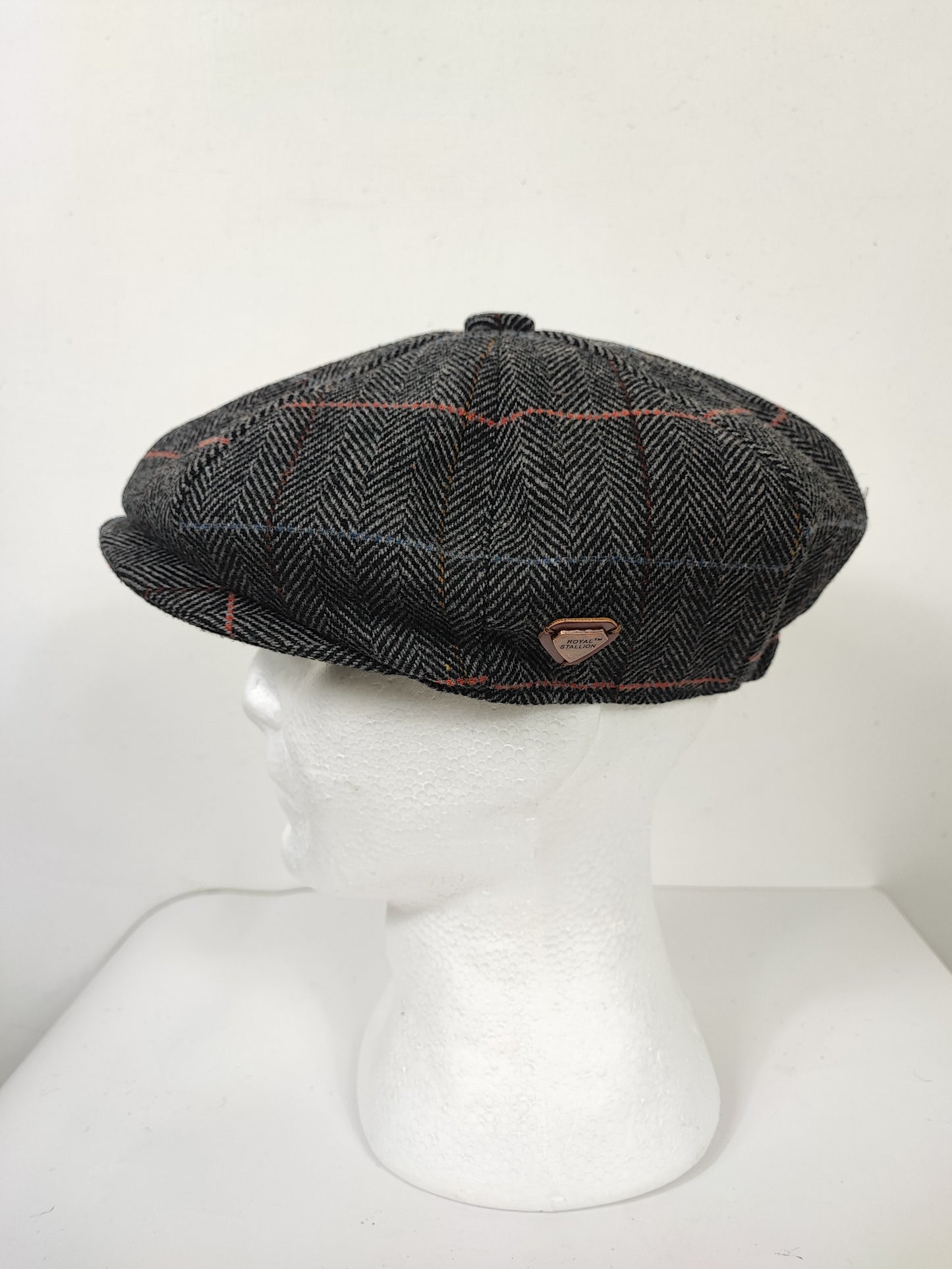 Coppola nuova inglese in lana in tweed grigia a otto spicchi stile Peaky Blinders
