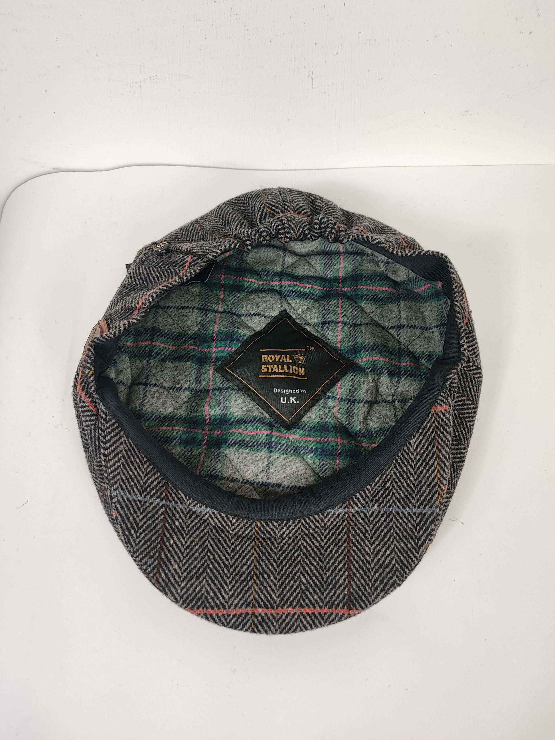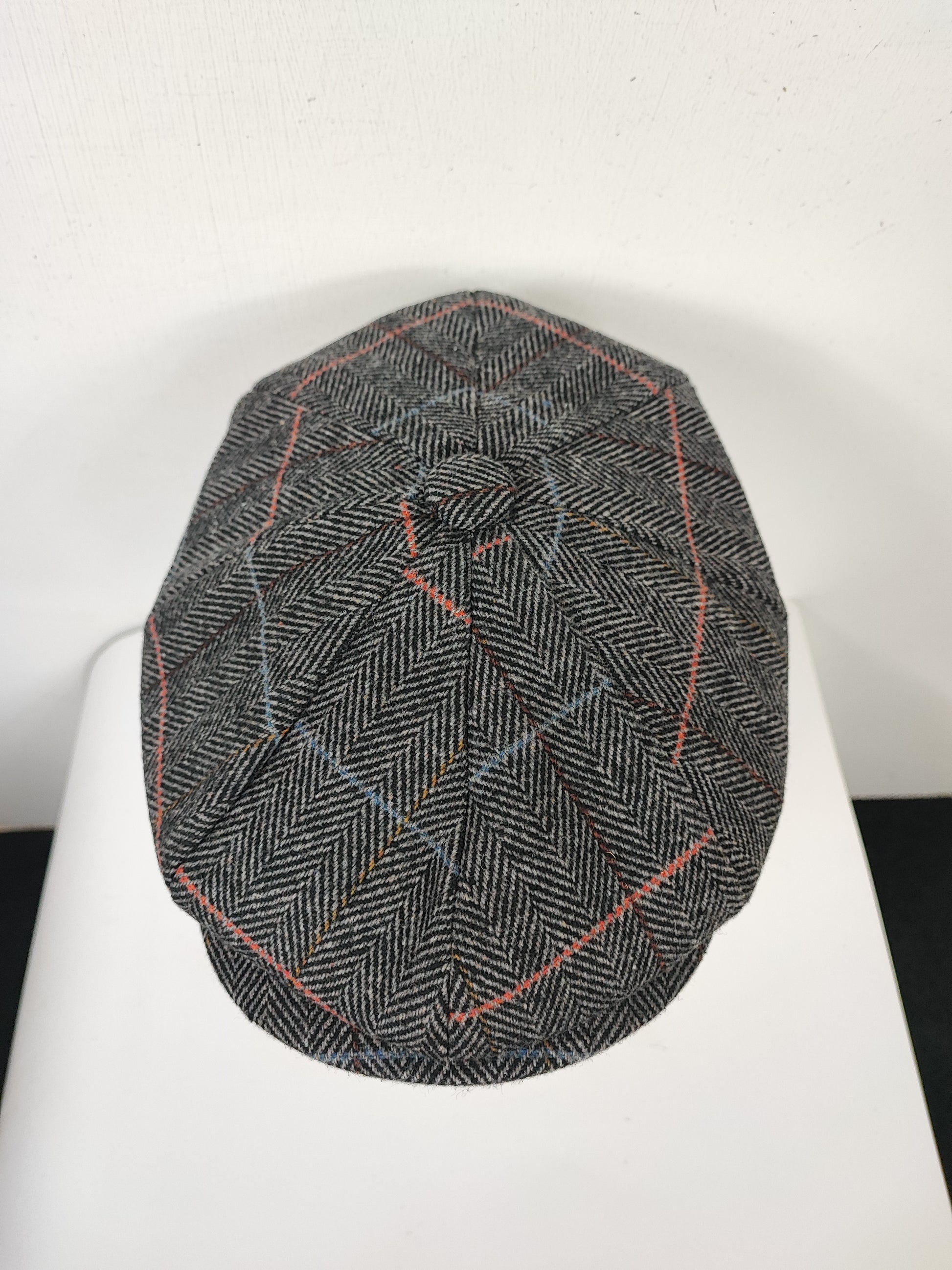 Coppola inglese Newsboy Cap nuova in lana in tweed di colore grigio con righe colorate come da foto stile Peaky Blinders a otto spicchi