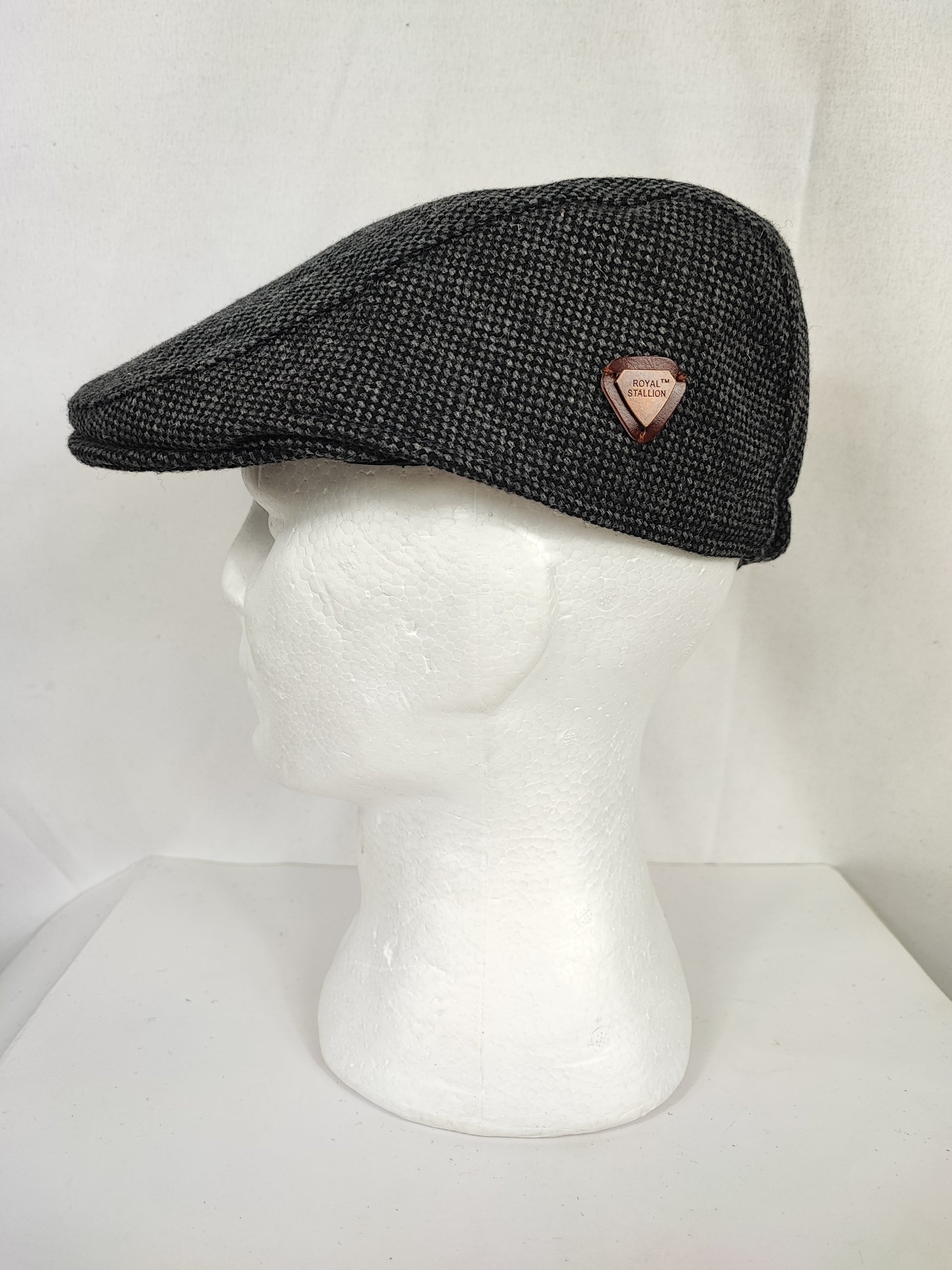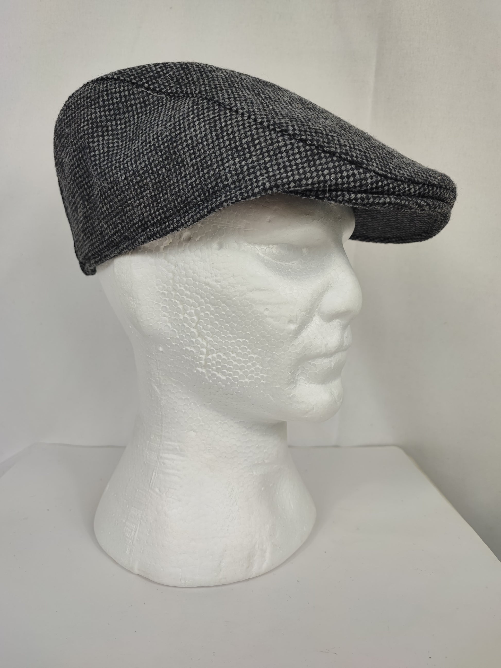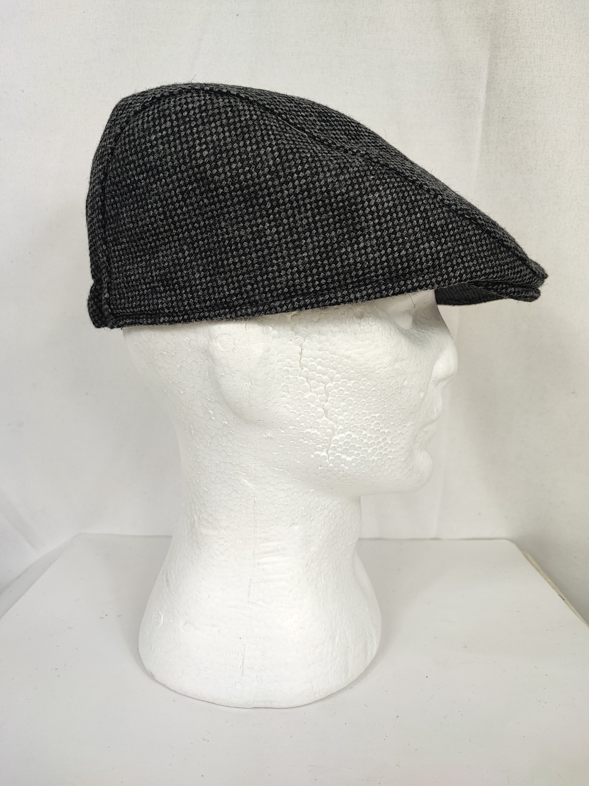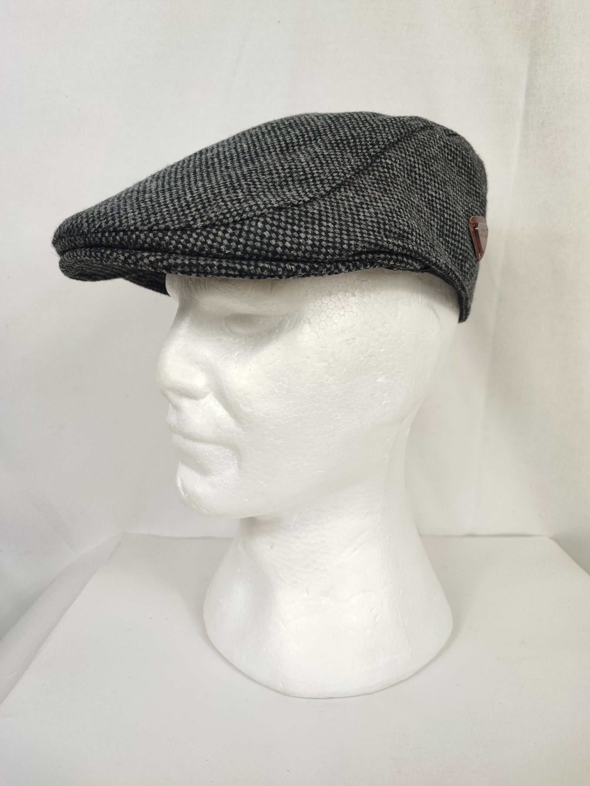 Coppola inglese liscia in lana a quadretti grigia e nera come da foto