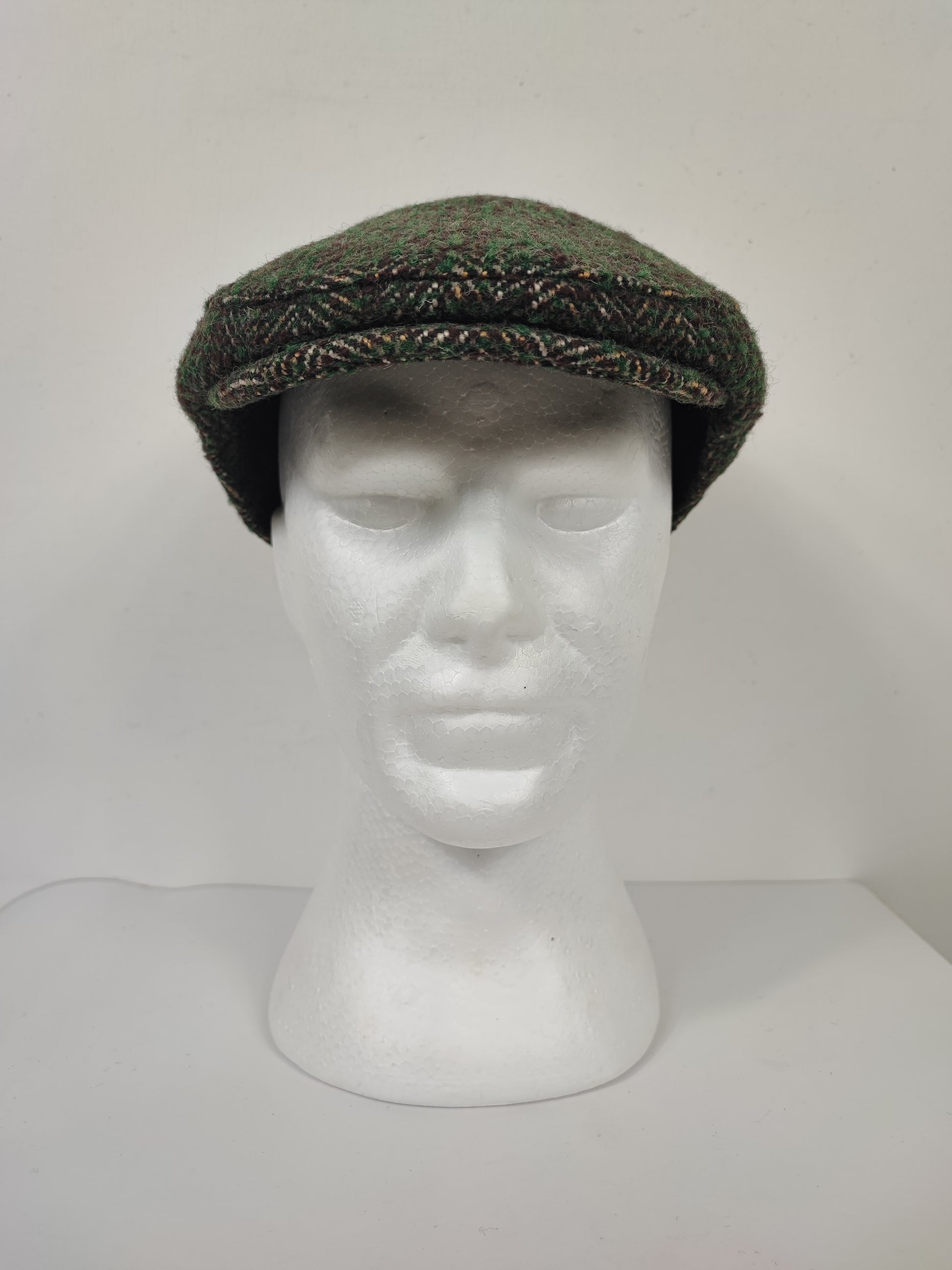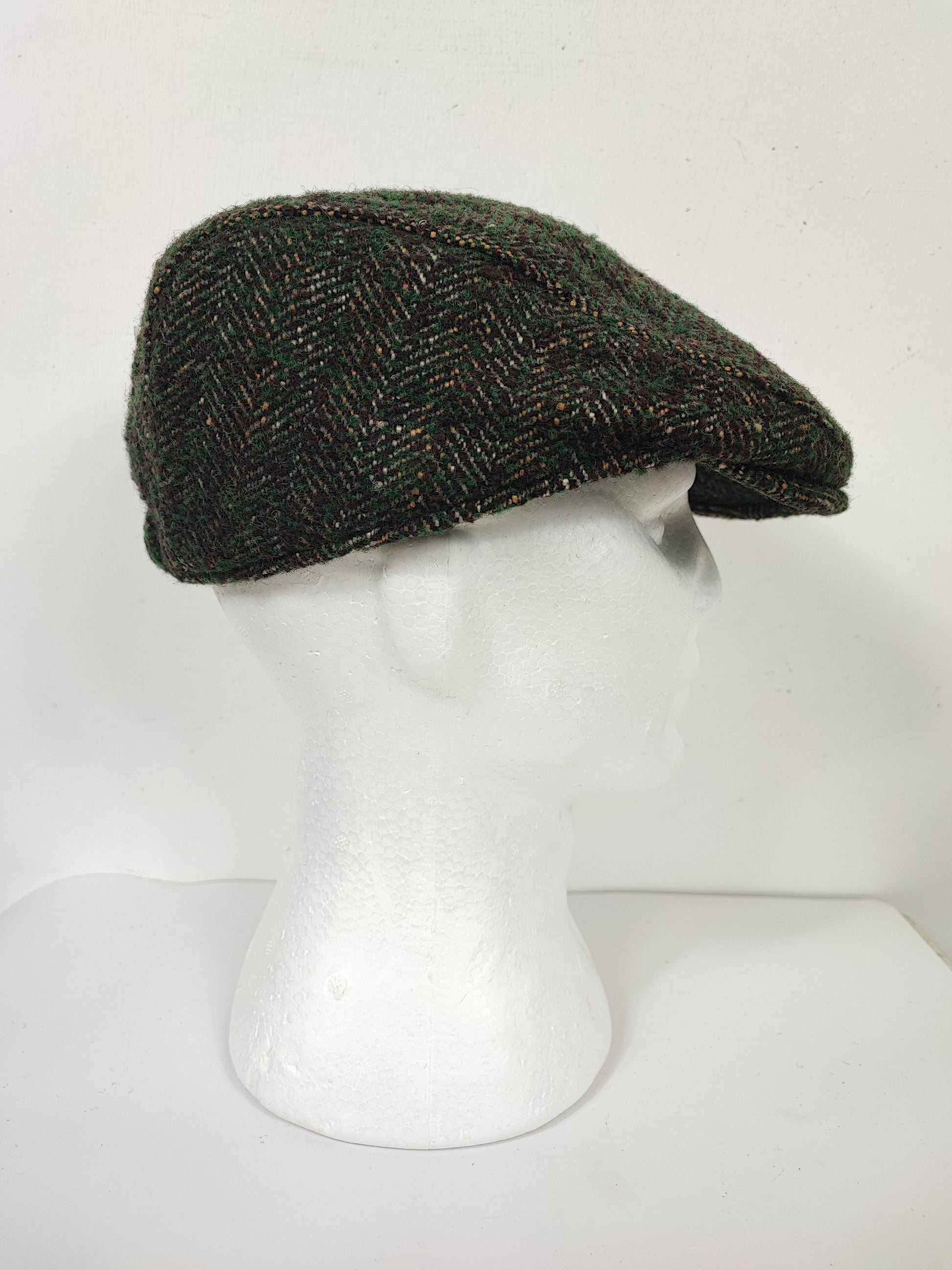Coppola inglese nuova in lana di colore verde scuro con trama a spina di pesce colorata come da foto