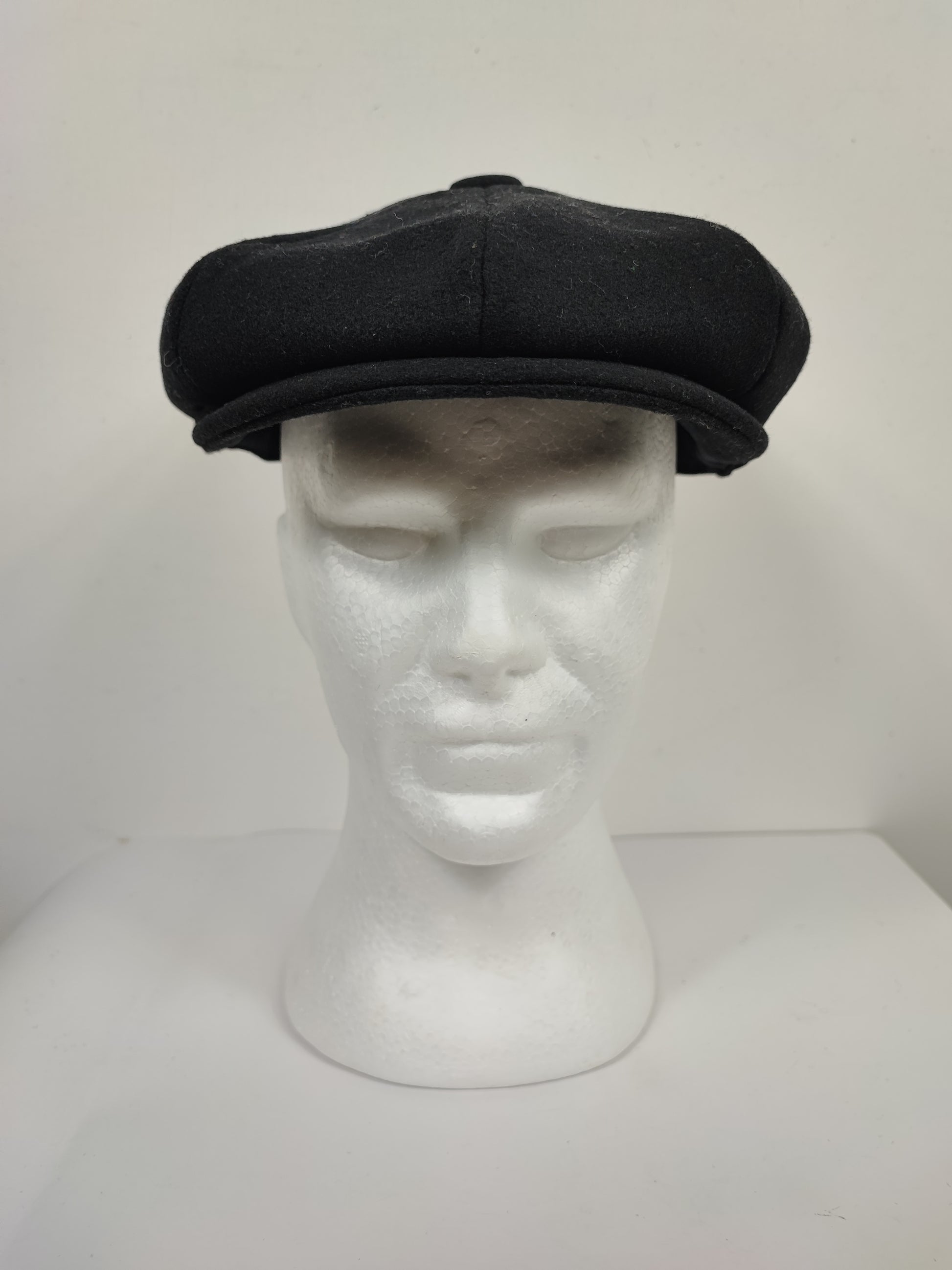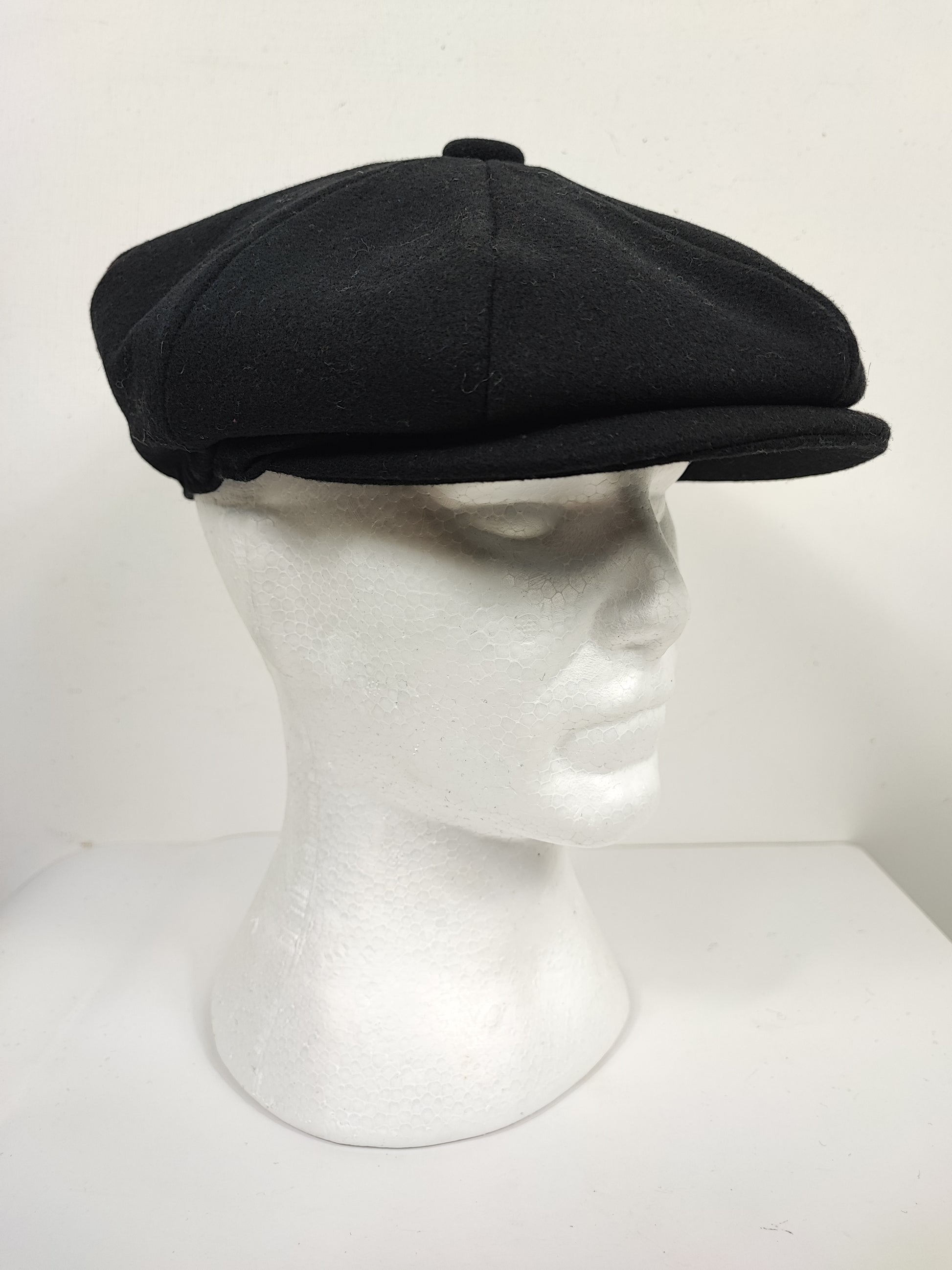 Coppola inglese Newsboy Cap nuova in lana nera stile Peaky Blinders a otto spicchi