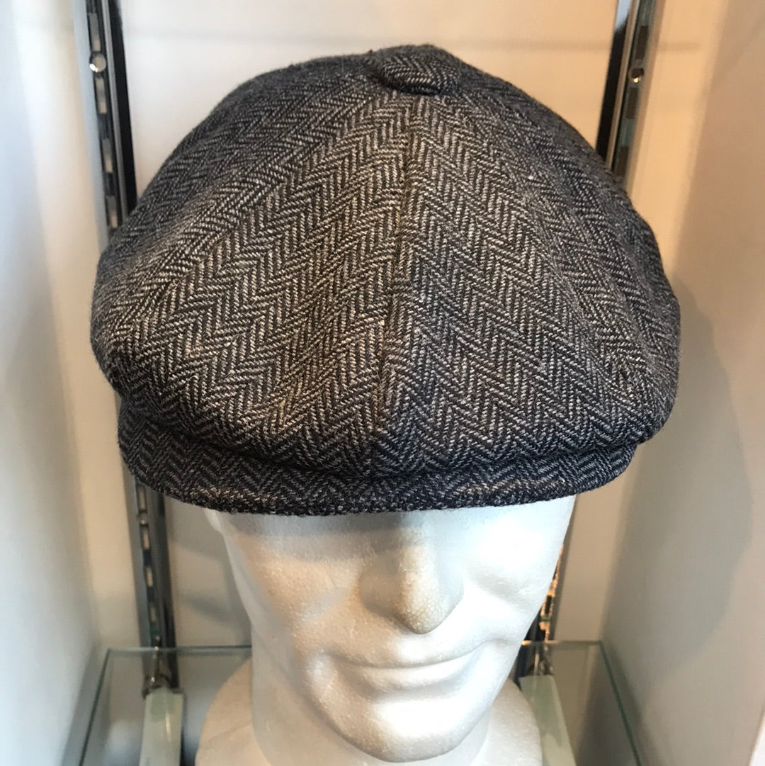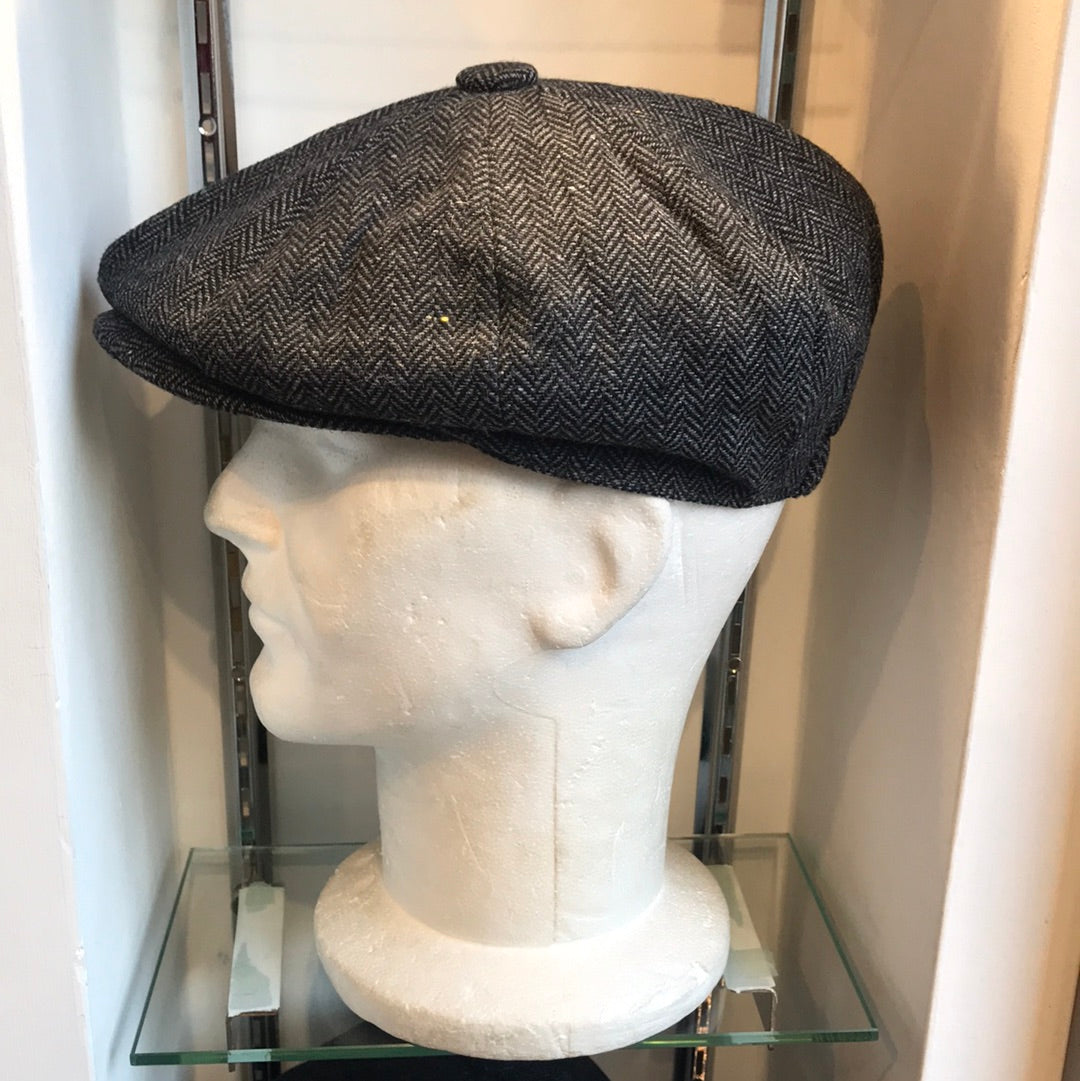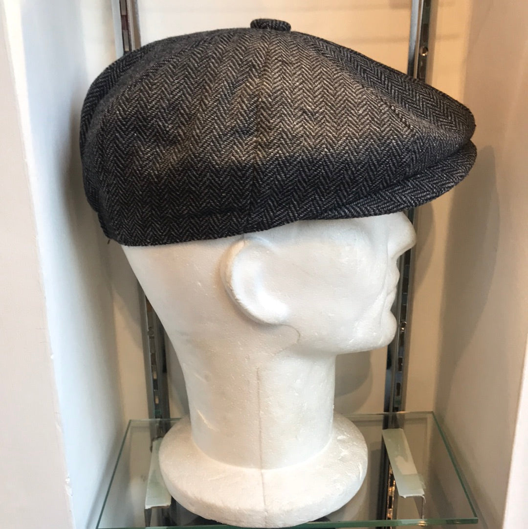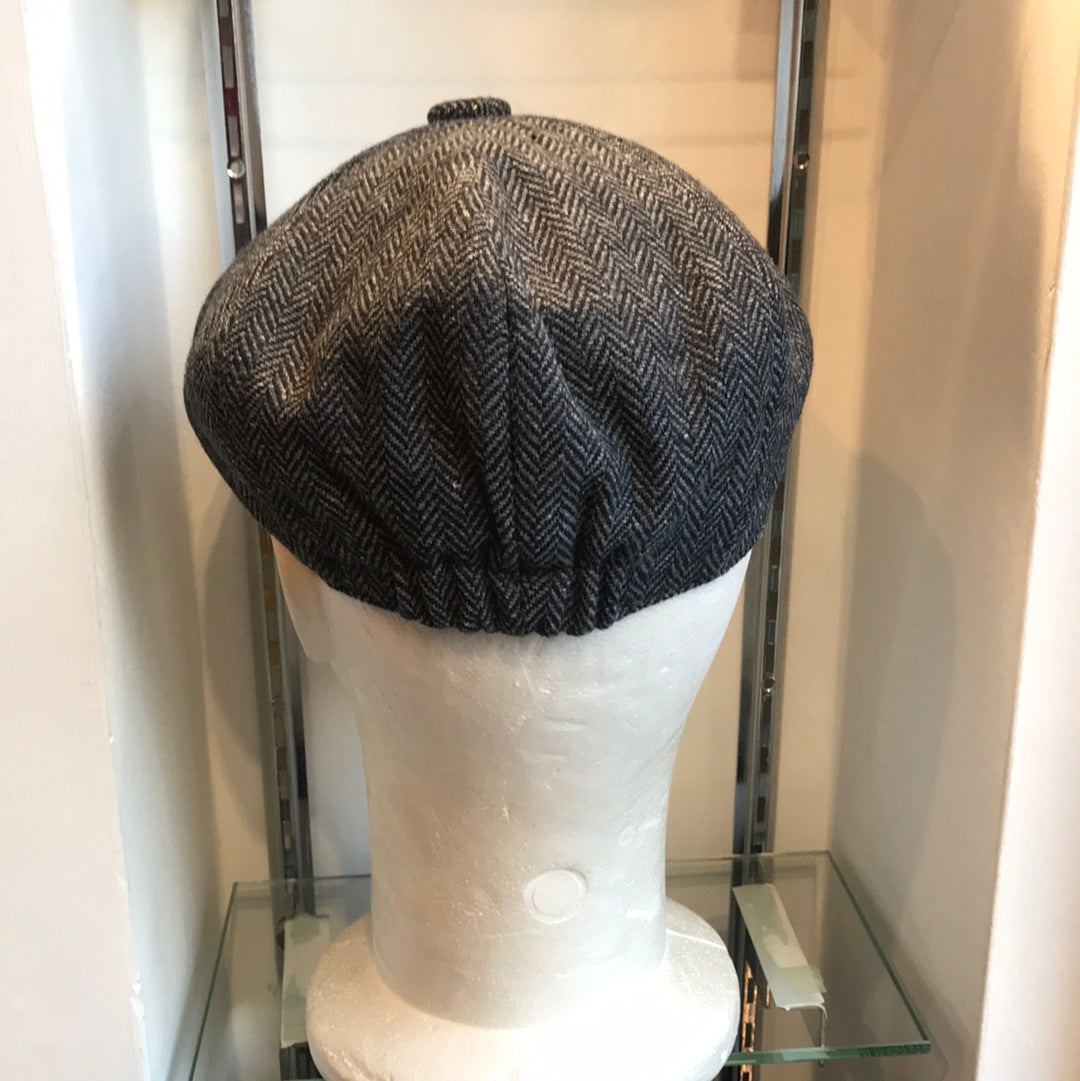 Coppola nuova Peaky Blinders in lana spigata grigio e nera