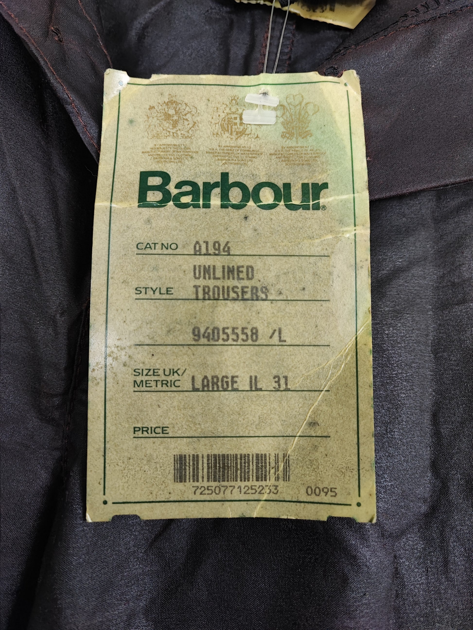 Cosciali vintage Barbour cerati marroni LARGE - Wax Man Brown Unlined trousers Size Large