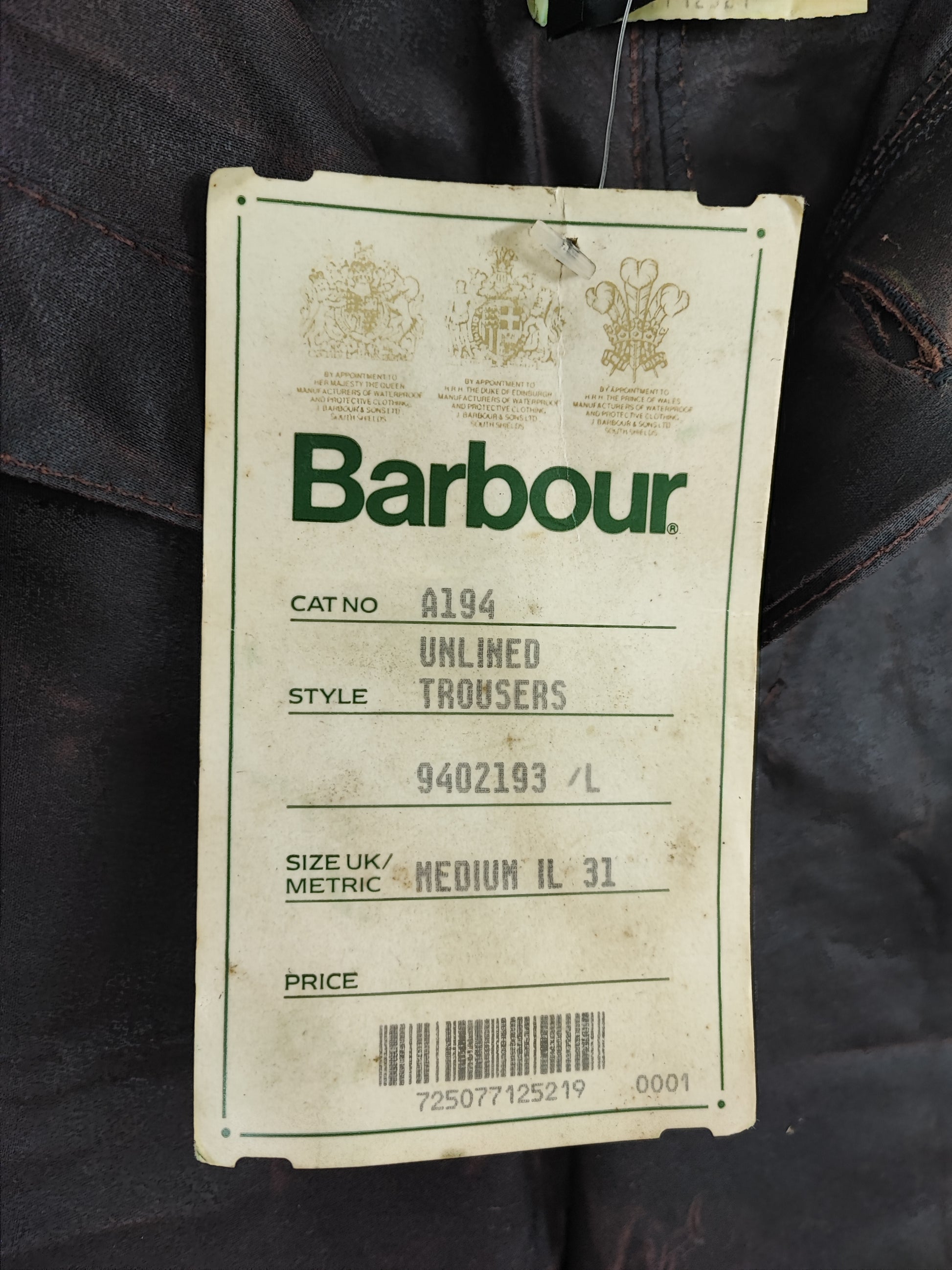 Cosciali vintage Barbour cerati marroni Medium- Wax Man Brown Unlined trousers Size Medium