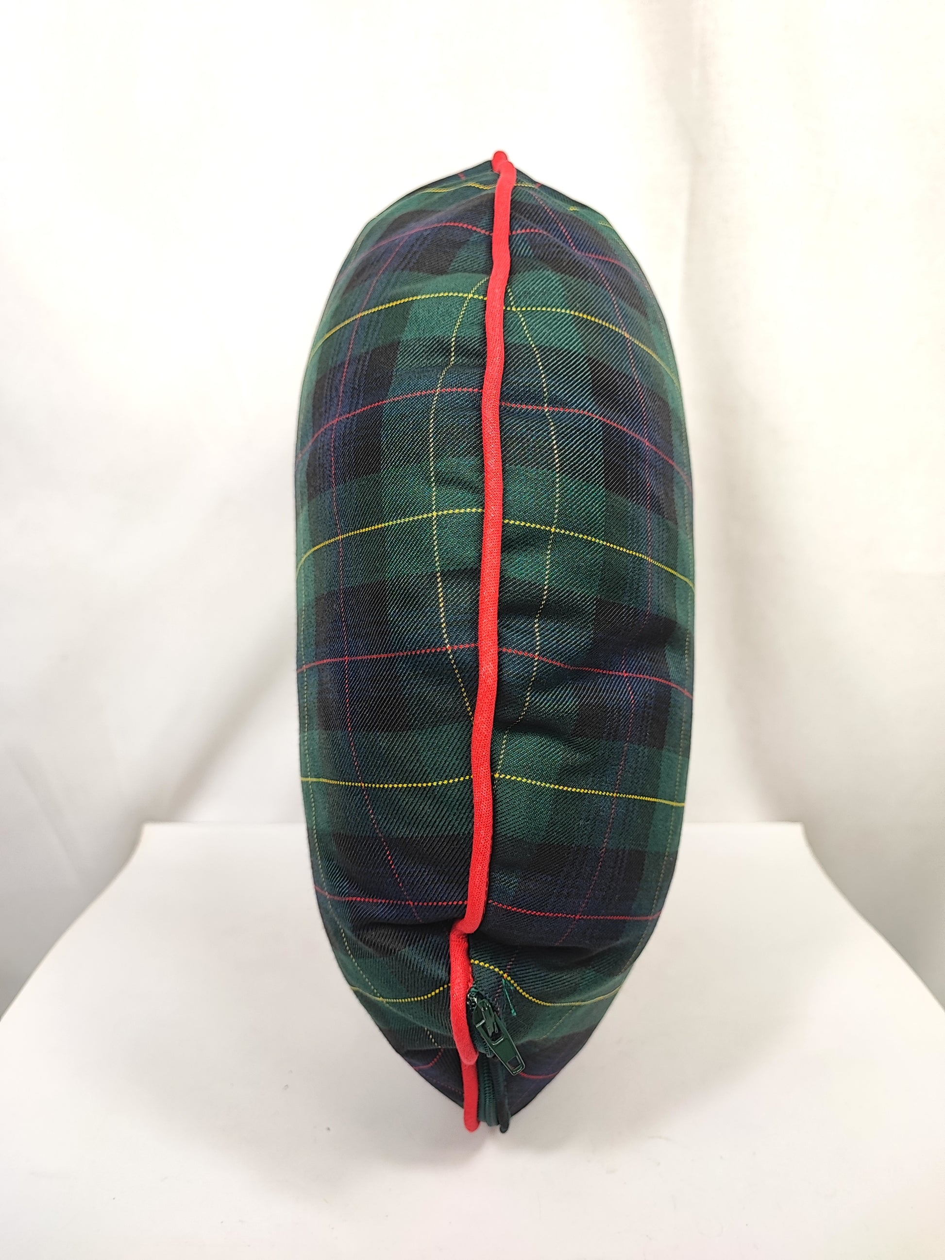 Cuscino tondo in Tartan Black Watch con bordino rosso