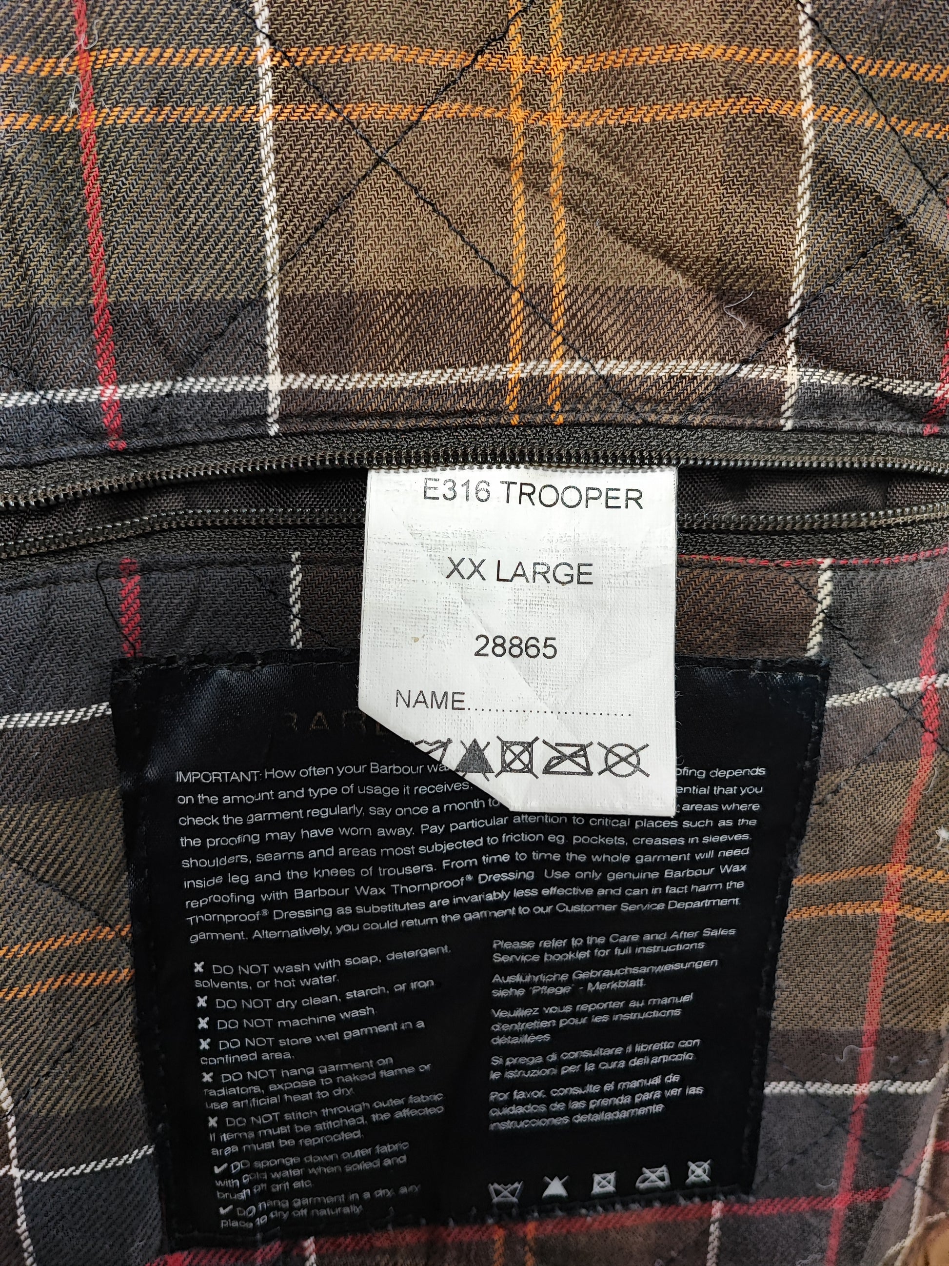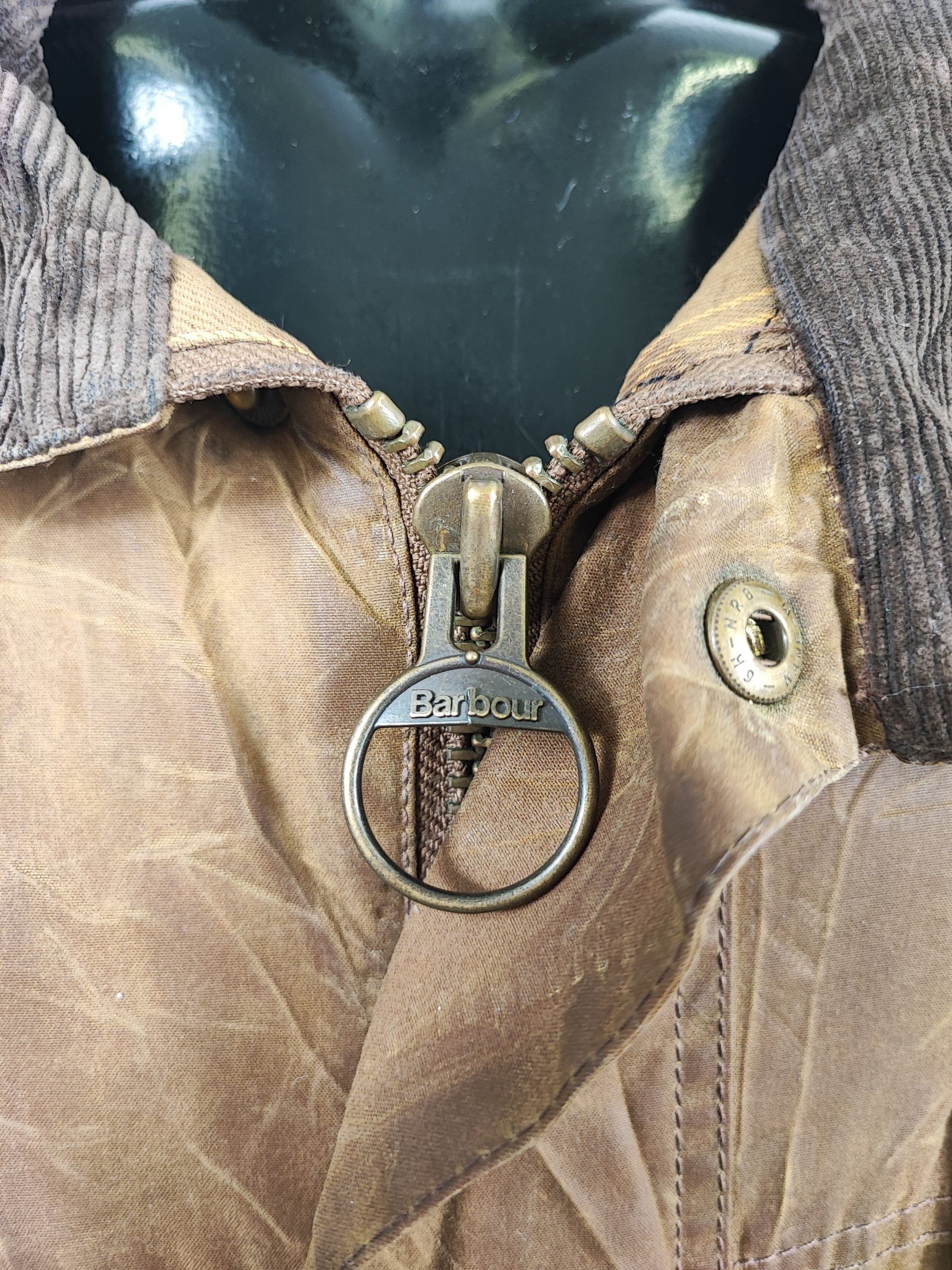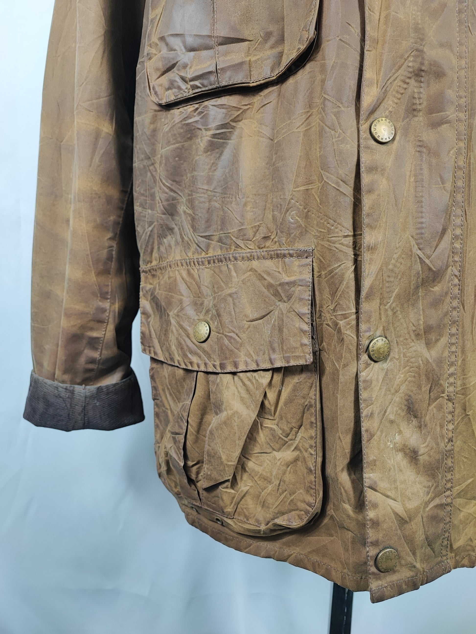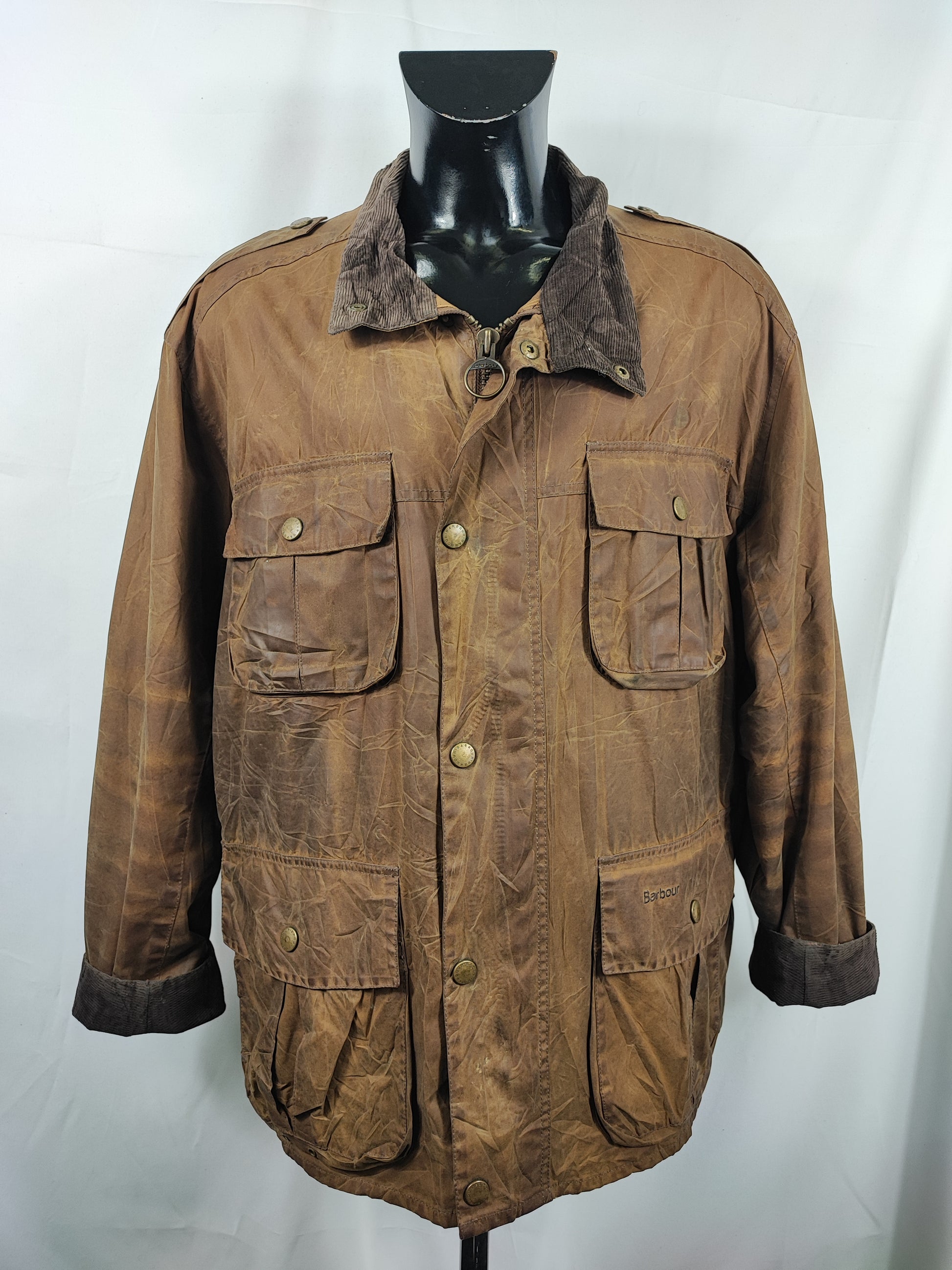 Buone condizioni. Leggera usura sulla parte frontale e logo Barbour della cerniera leggermente storto ma la cerniera è funzionante. IL capo è di SECONDA MANO.