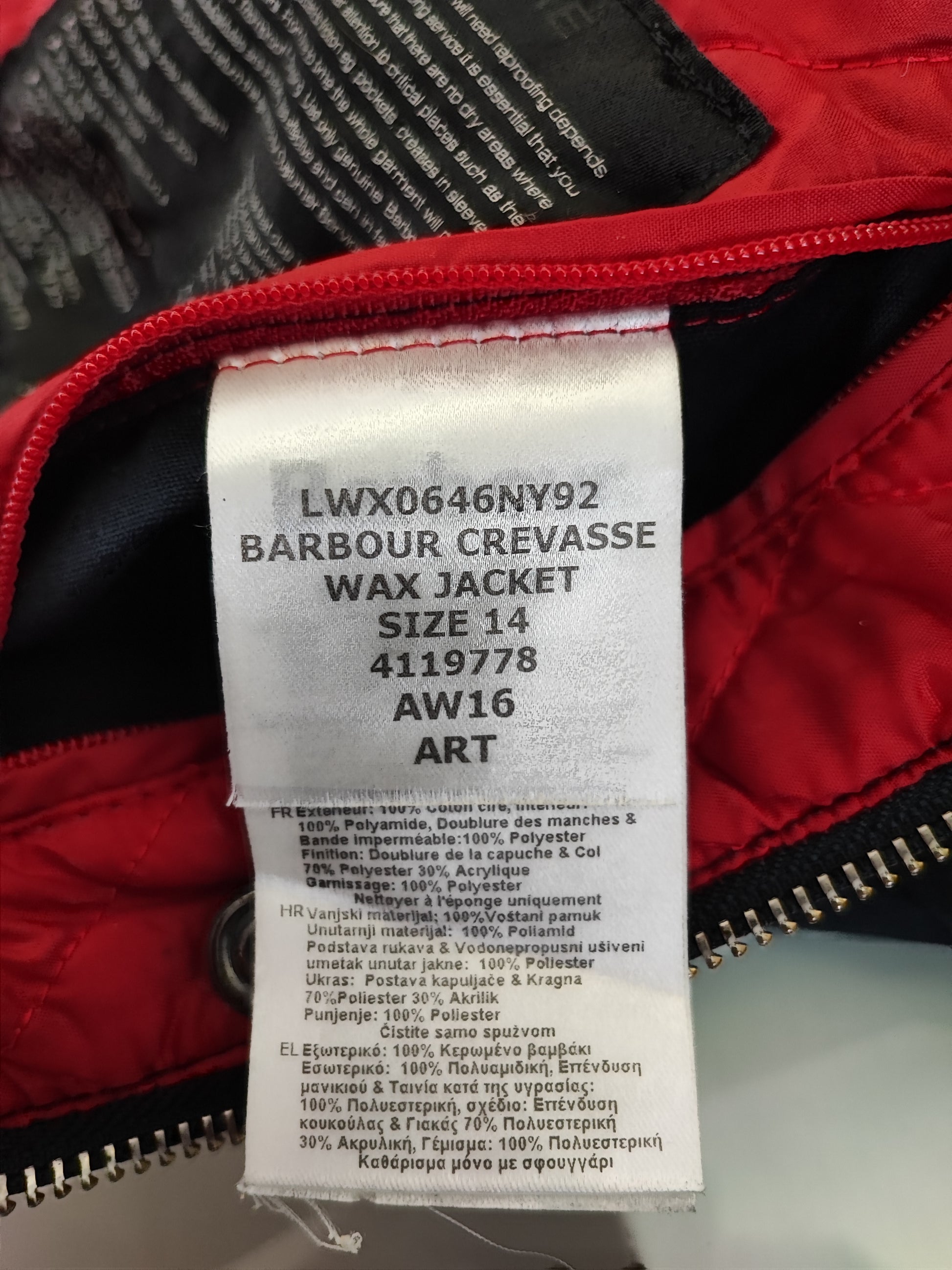 Giacca Barbour blu Donna Medium UK14 -Lady Crevasse Wax Jacket UK14 Size M