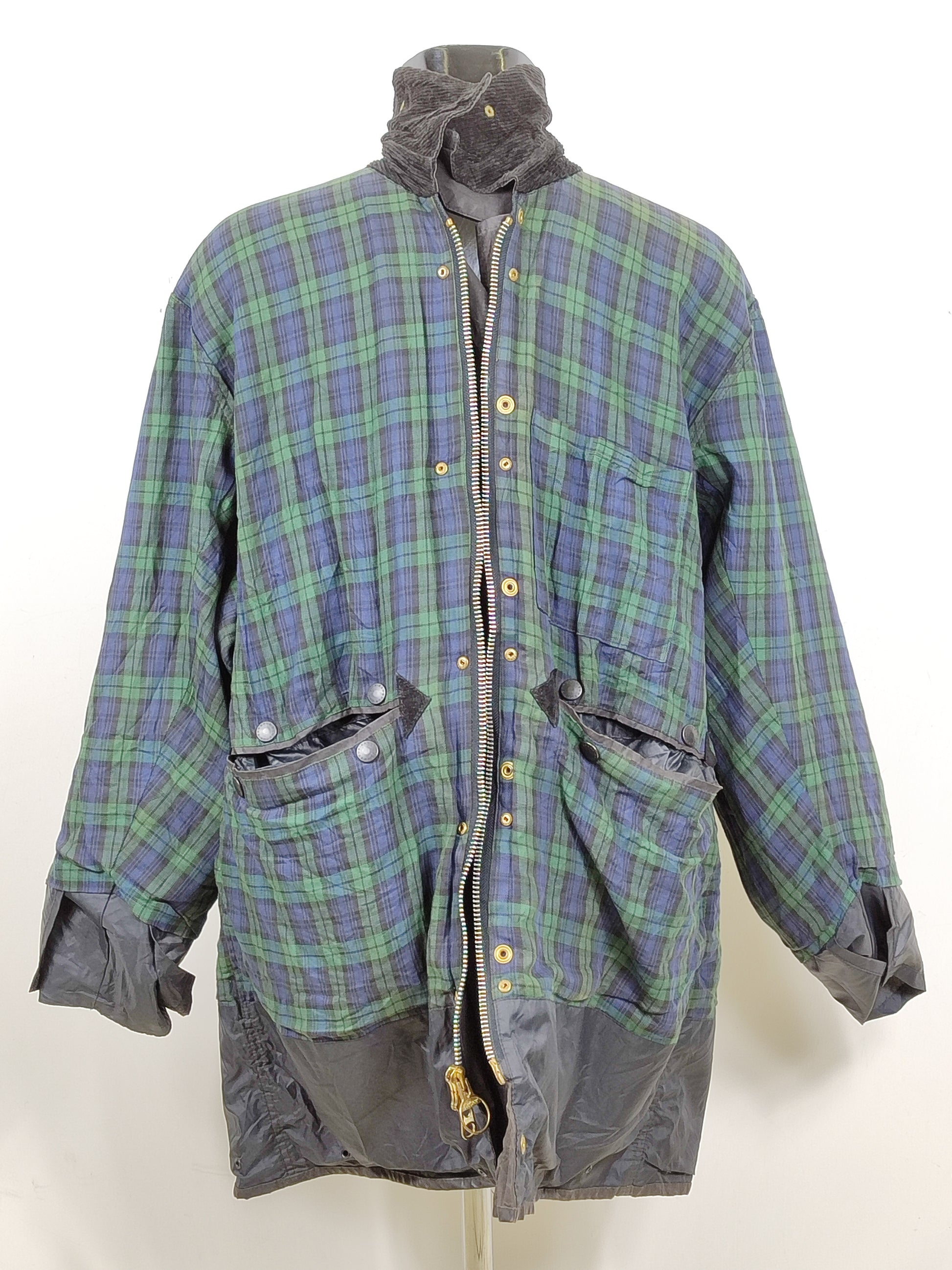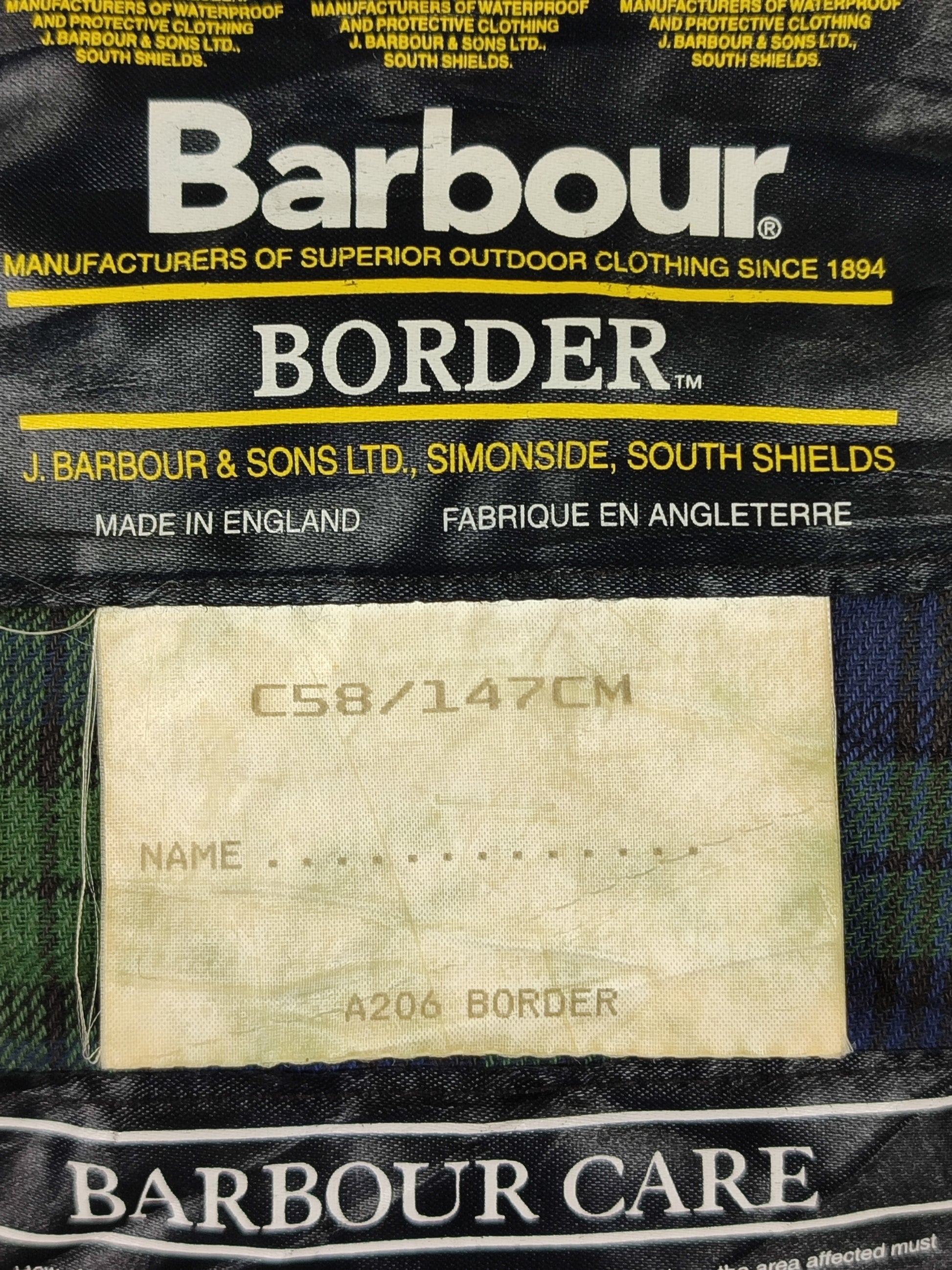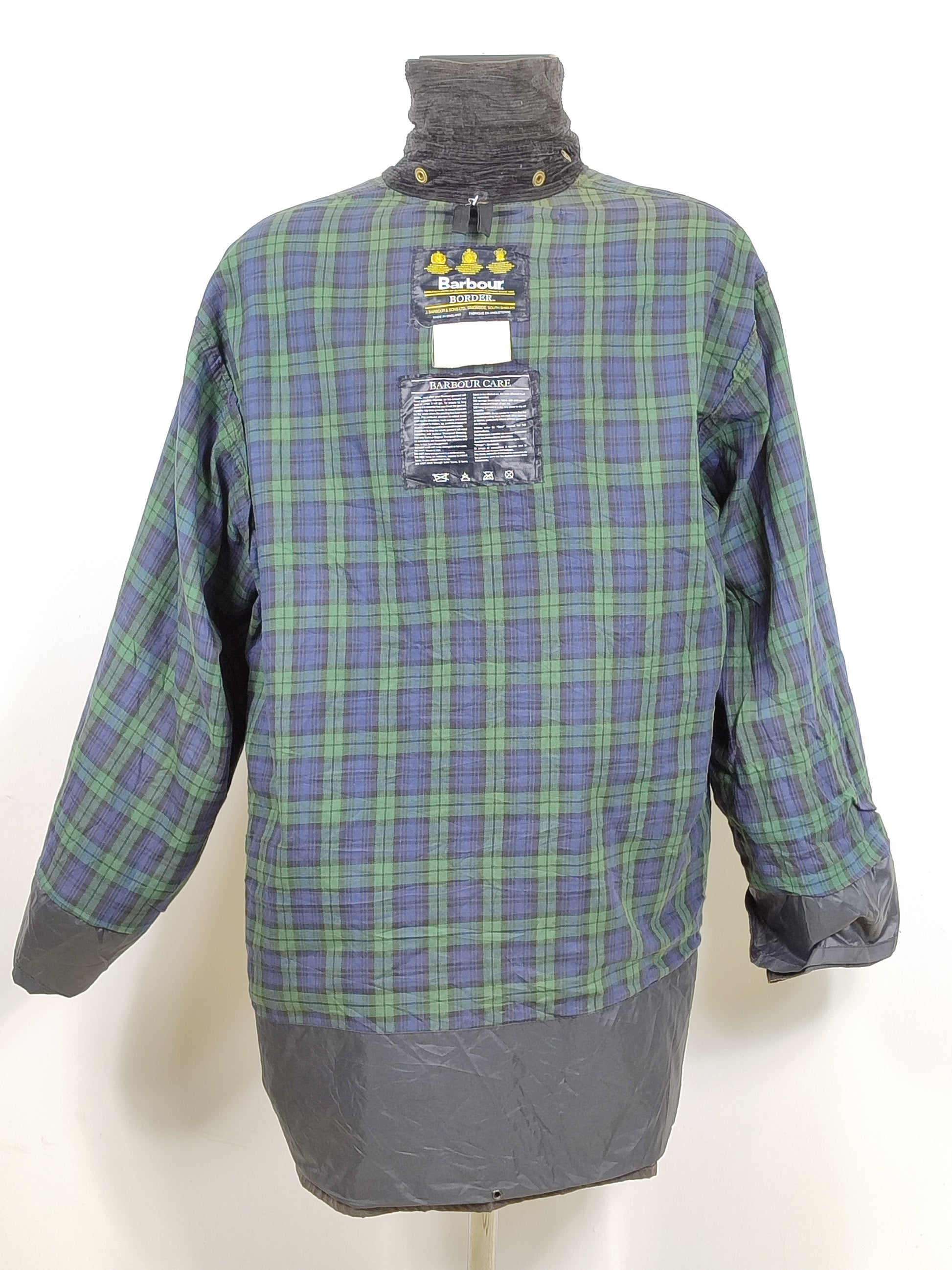 Giacca Barbour modello Border di colore nero con tartan Black watch . Risale agli anni 90 . Probabilmente è stato prodotto come campione / Sample con le misure personalizzate .