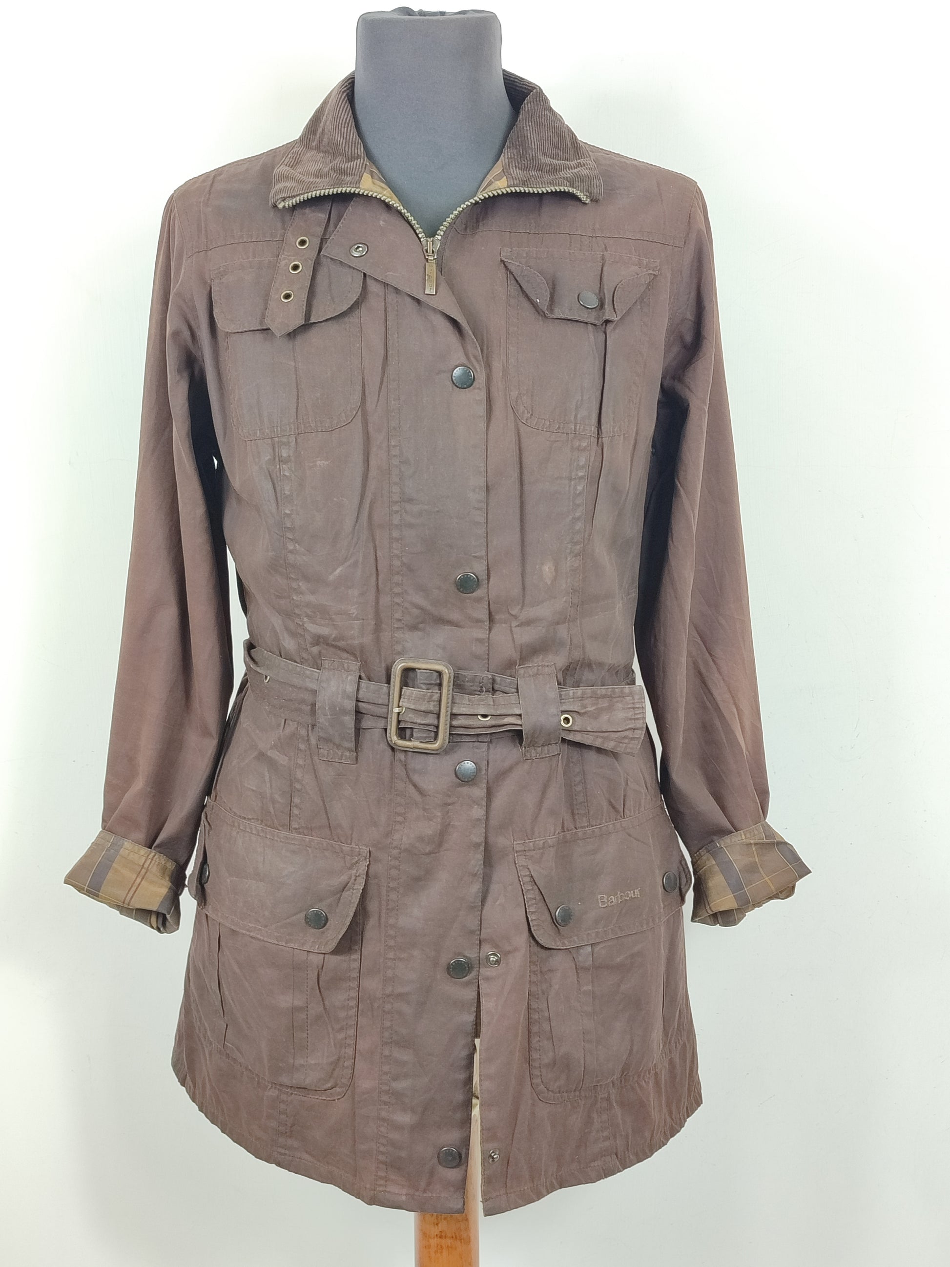 Giacca Barbour da donna marrone UK10 Small Brown Lady Wax Utility Mac jacket Small tg.40