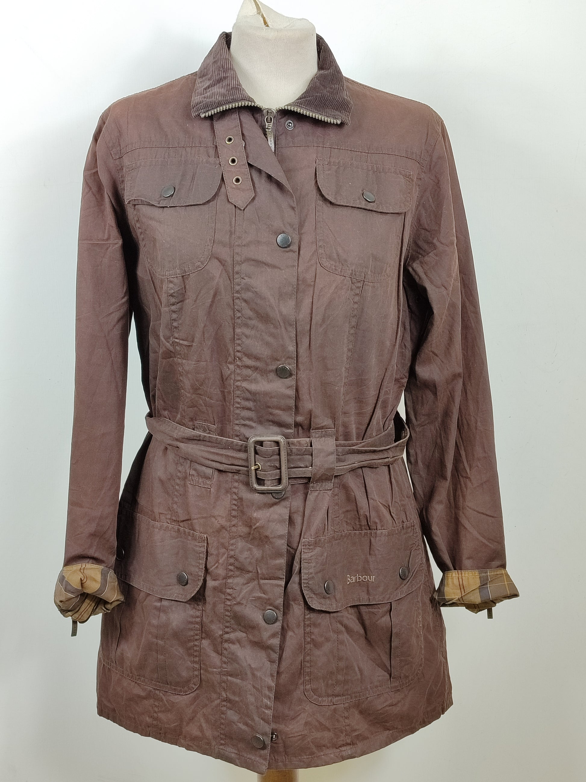 Giacca Barbour Donna con cintura marrone utility mac UK12 -Lady Brown jacket size Medium
