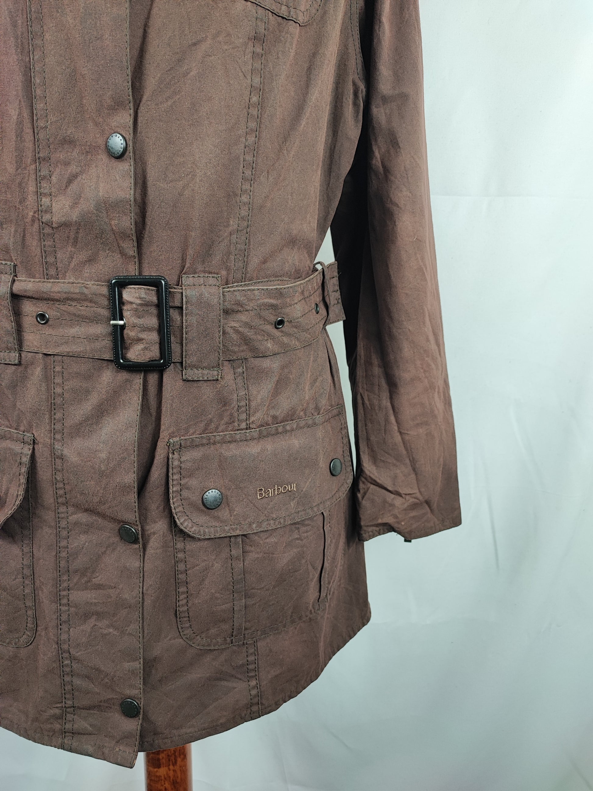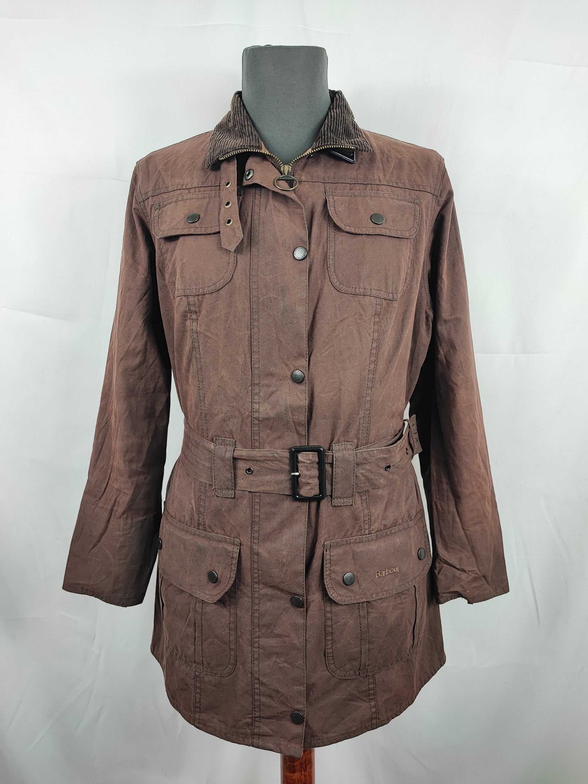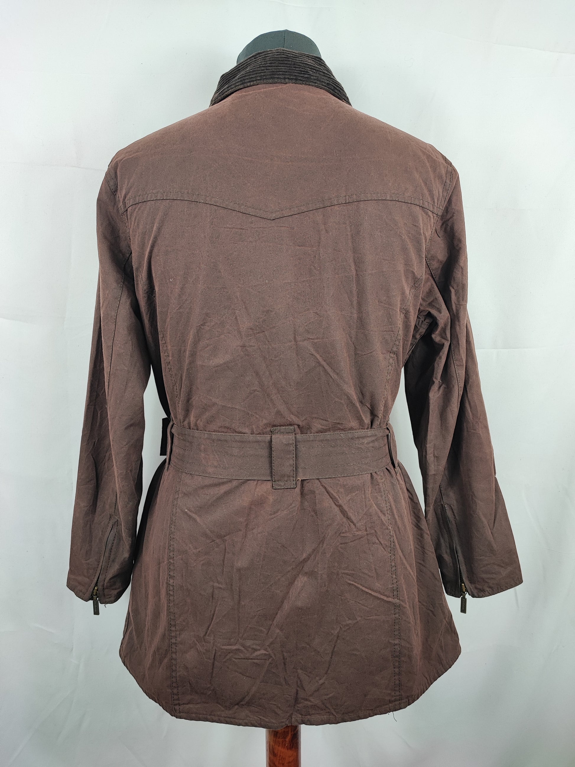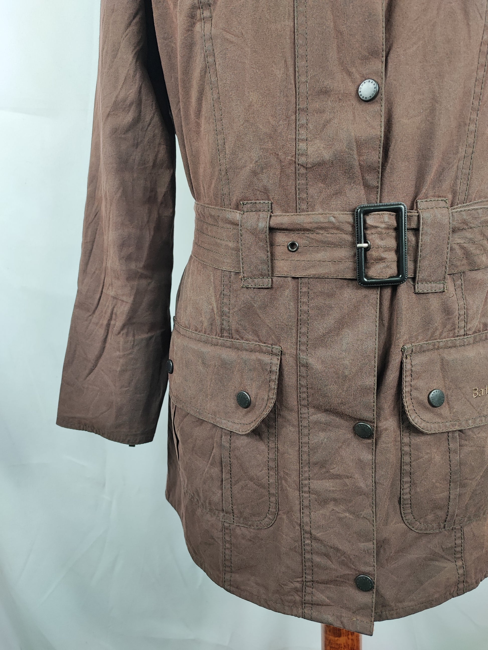 Giacca Barbour Donna con cintura marrone utility mac UK12 tg.42 - Brown Waxed Utility Mac Jacket UK12