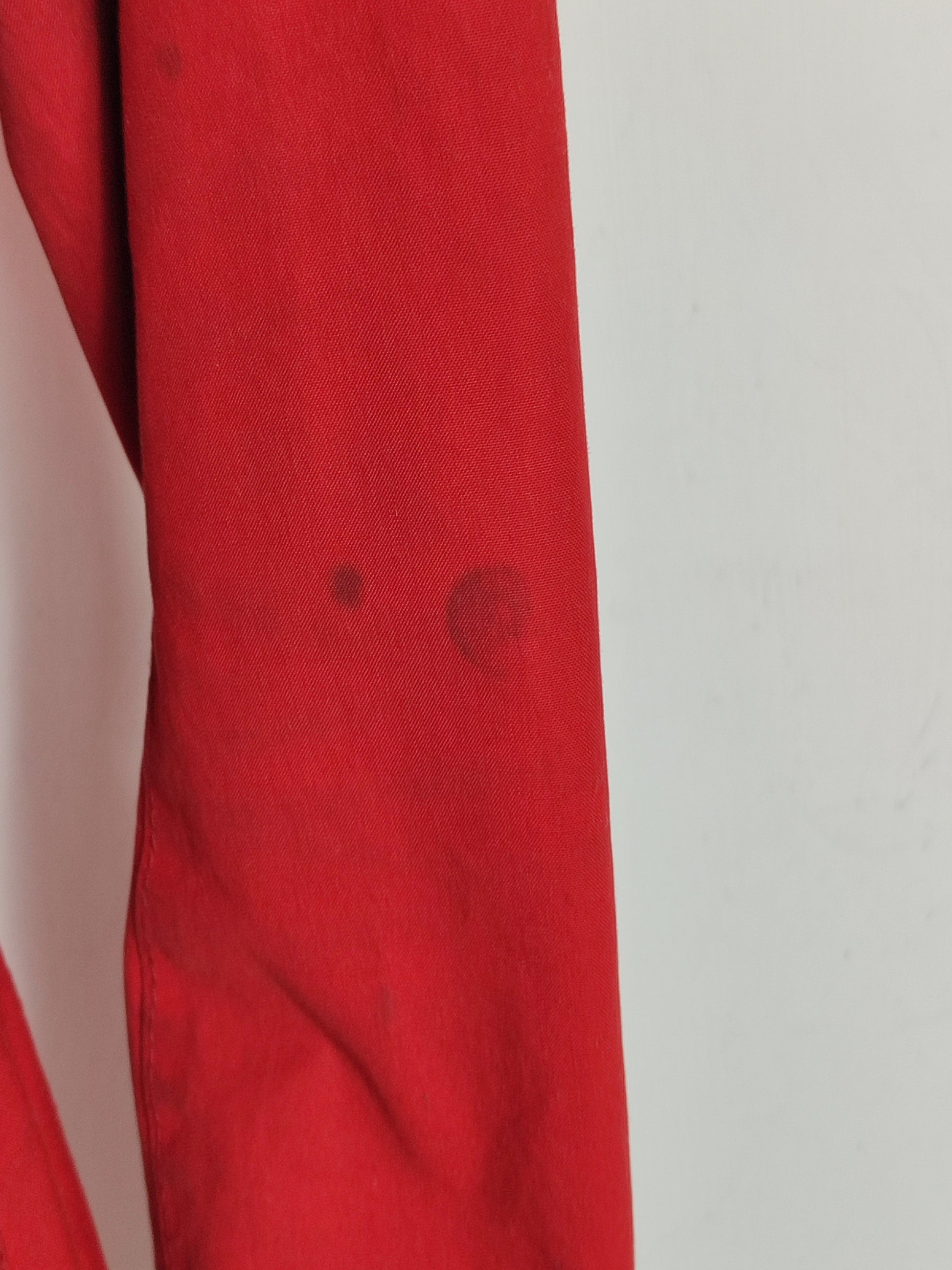 Buone condizioni. Qualche segno di usura. Leggermente sporco si può portare in tintoria.Il capo è di SECONDA MANO .