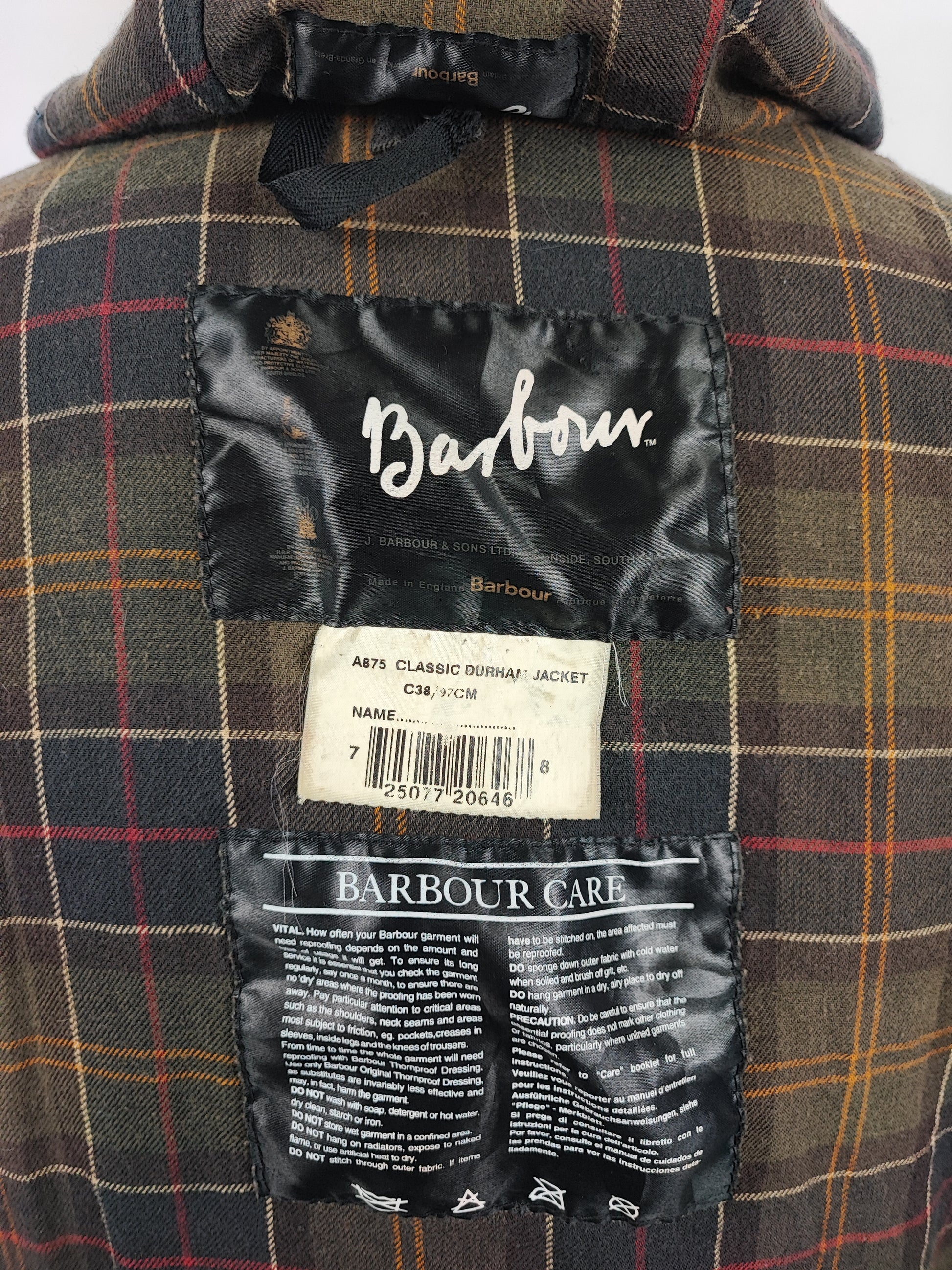 Giacca Barbour Durham con cappuccio di colore verde oliva taglia c38/97 cm corrisponde ad una taglia 48 italiana circa